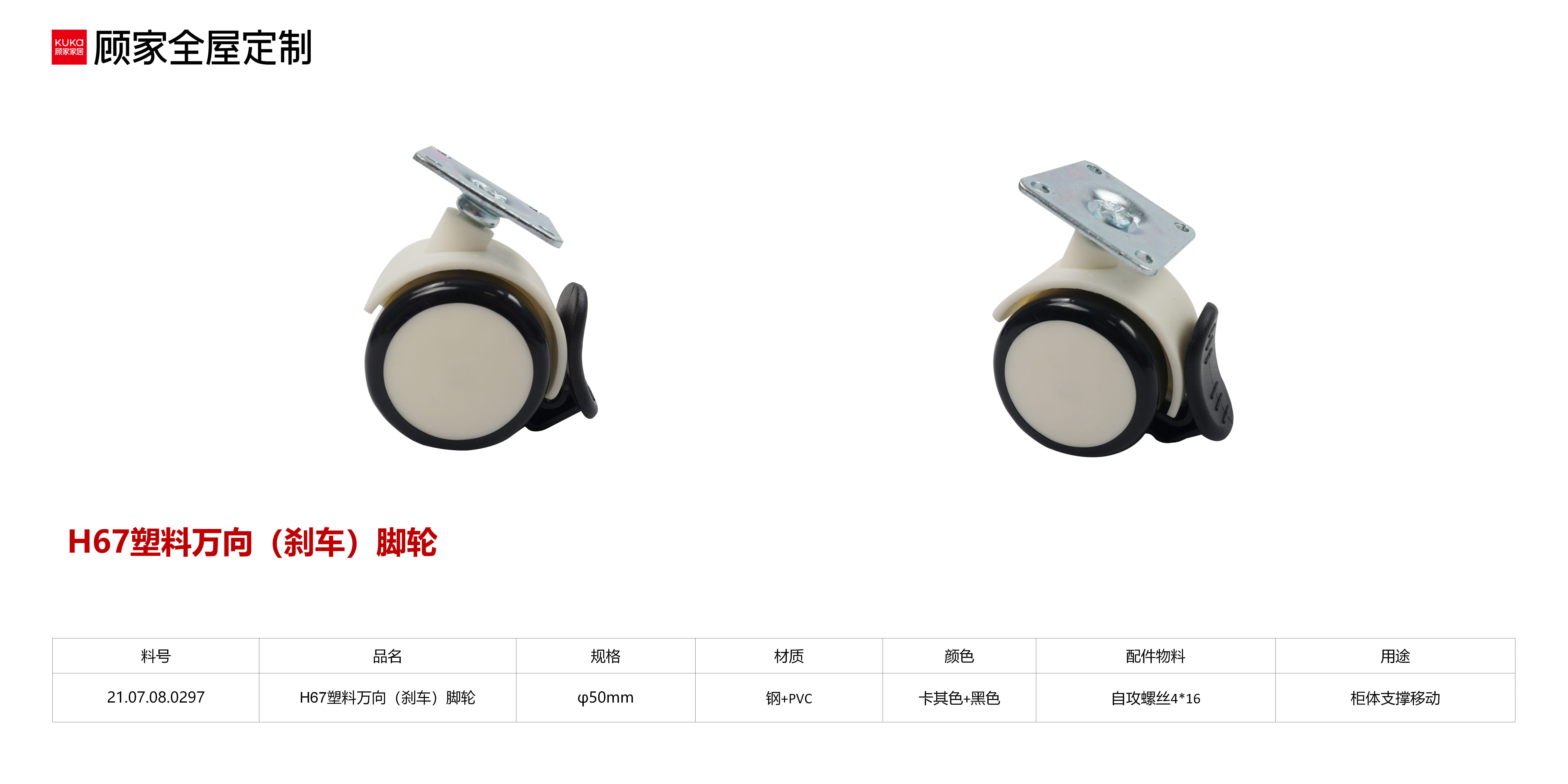 1-衣柜基础五金-4支撑类-9-H67塑料万向(刹车)脚轮