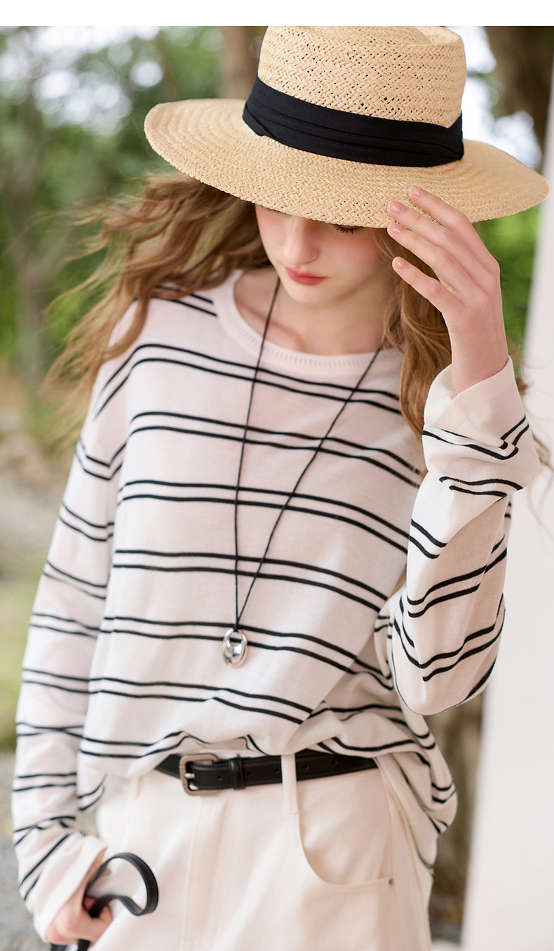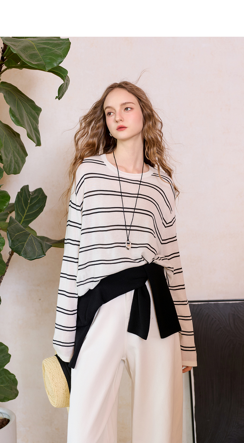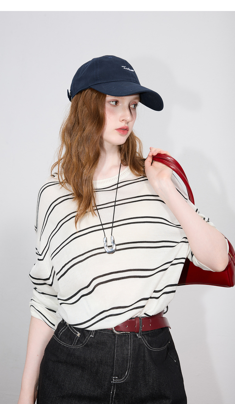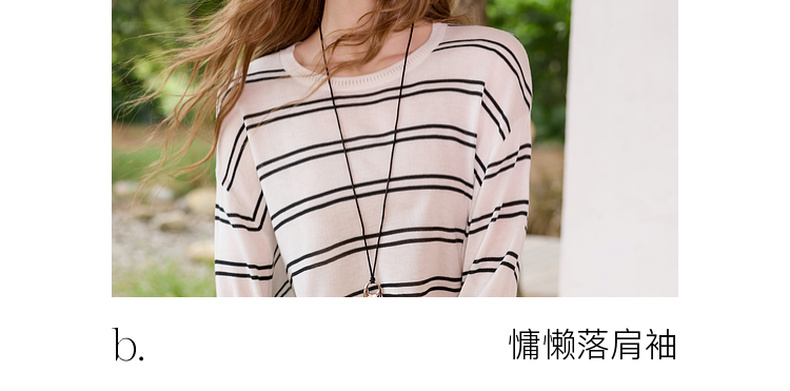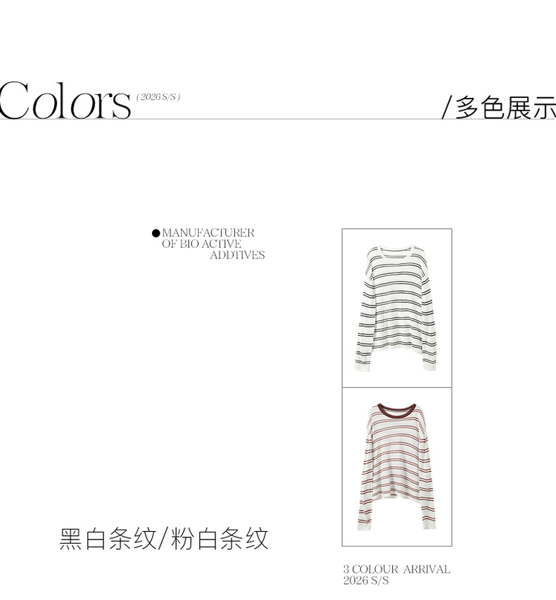 三彩2026春季新款圆领针织衫落肩袖毛衫宽松条纹套头衫休闲M