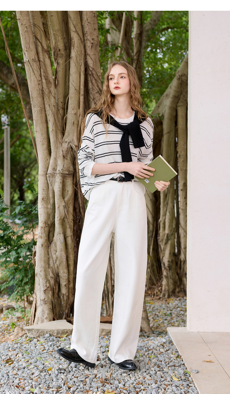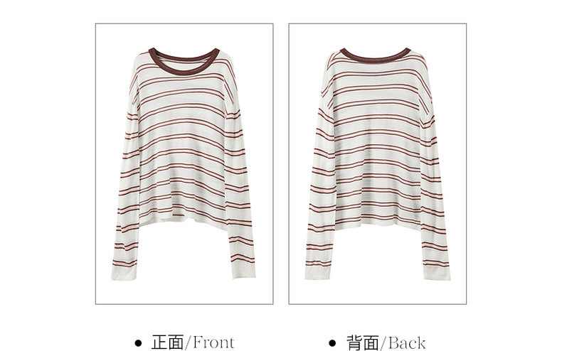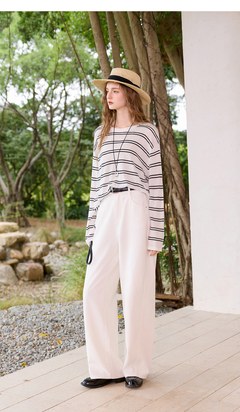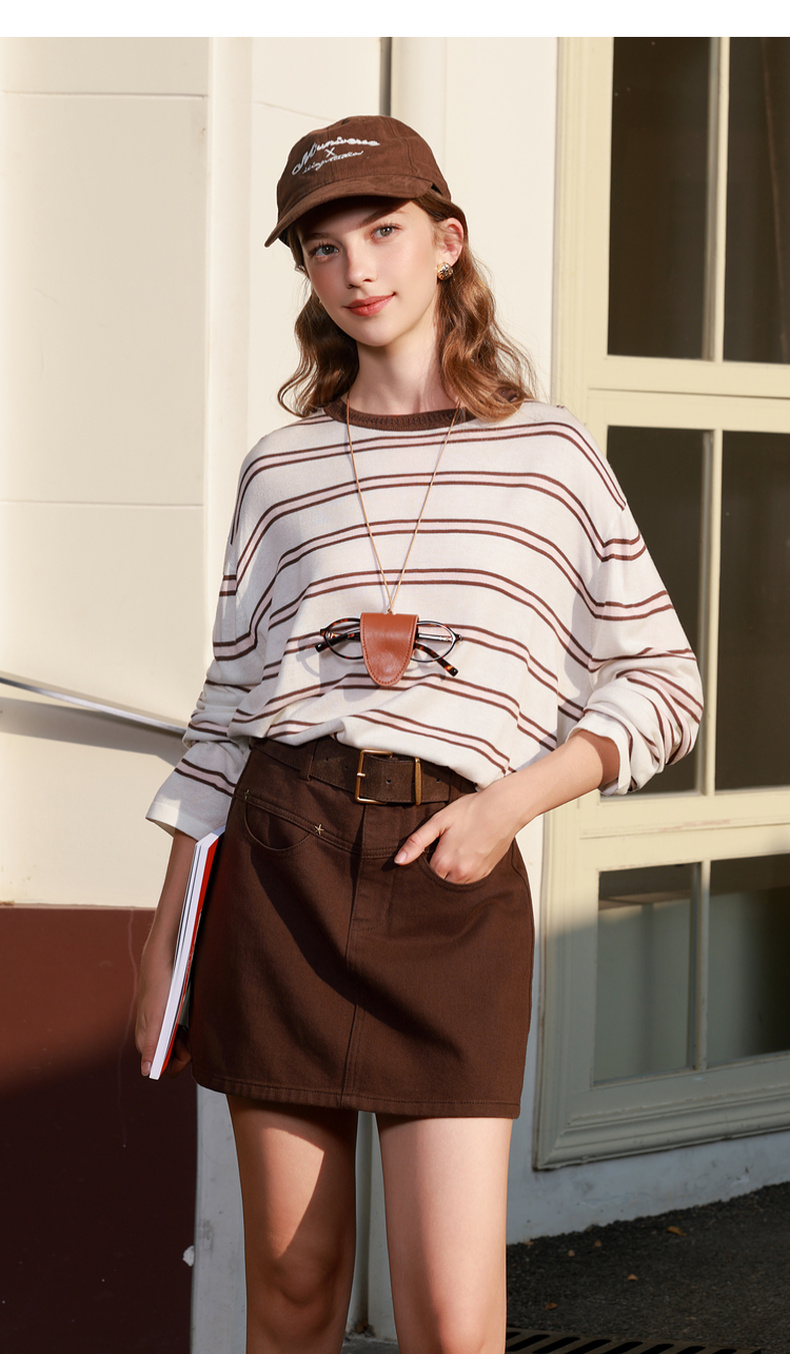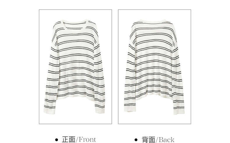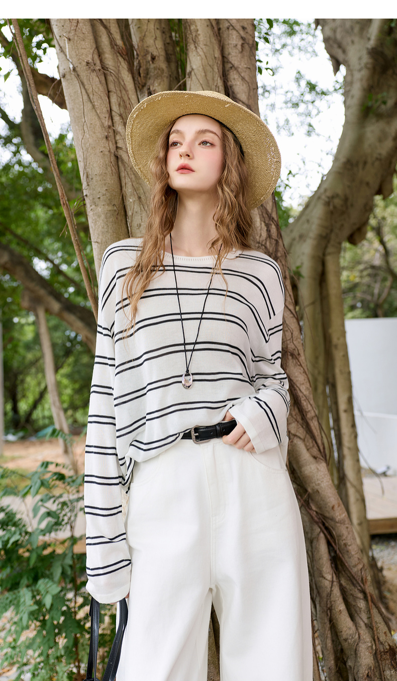 三彩2026春季新款圆领针织衫落肩袖毛衫宽松条纹套头衫休闲M