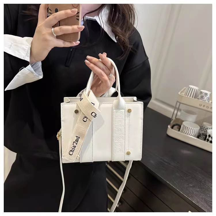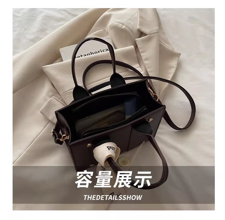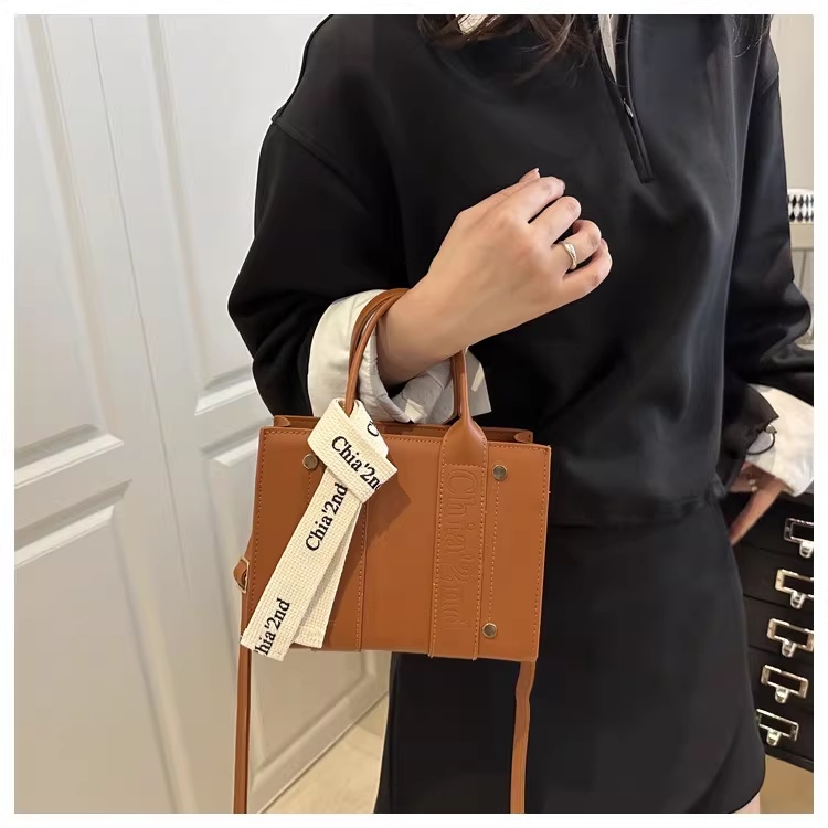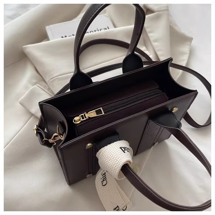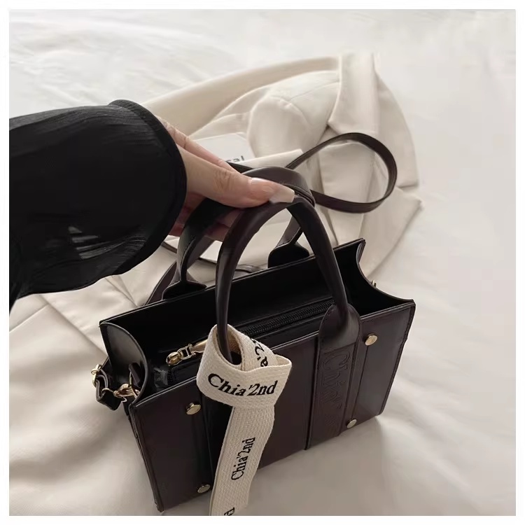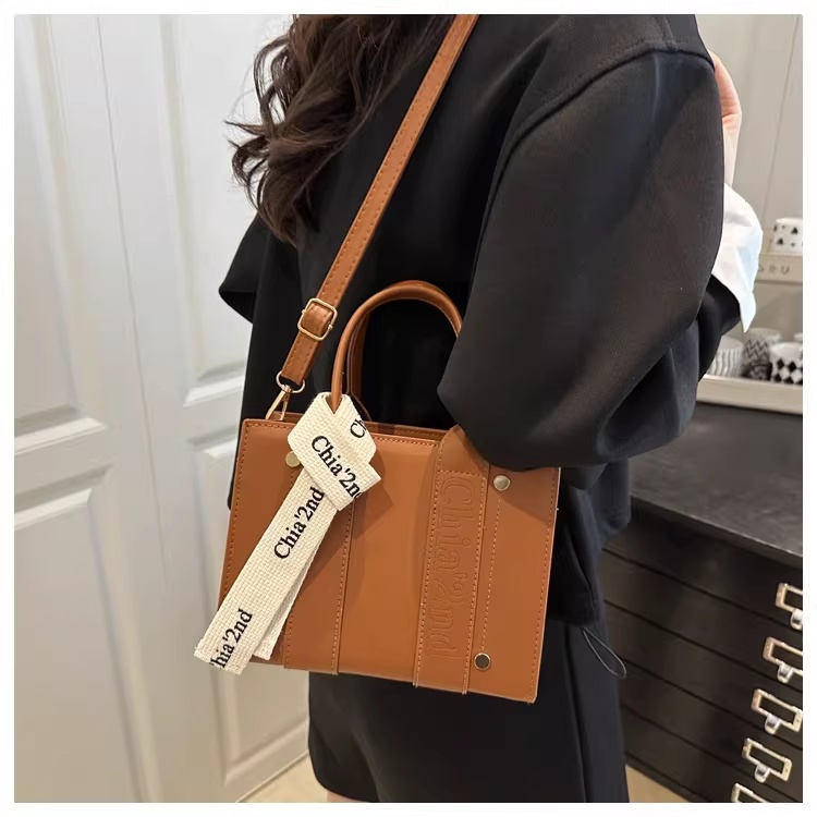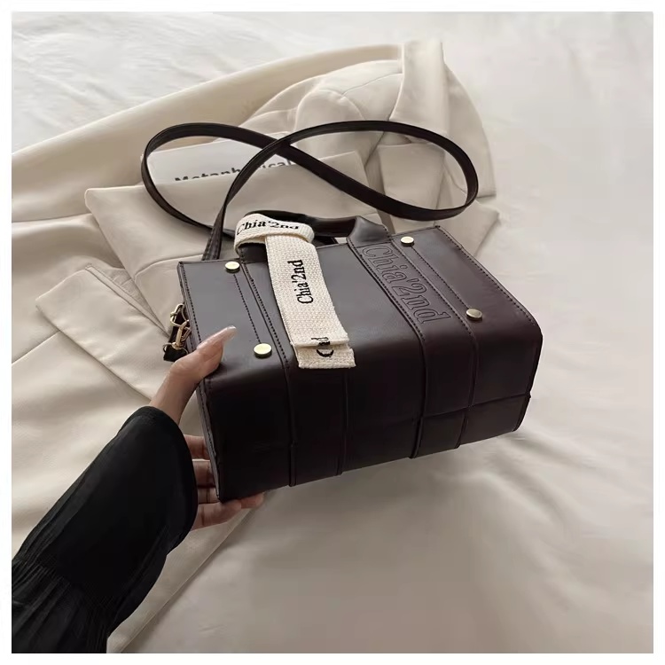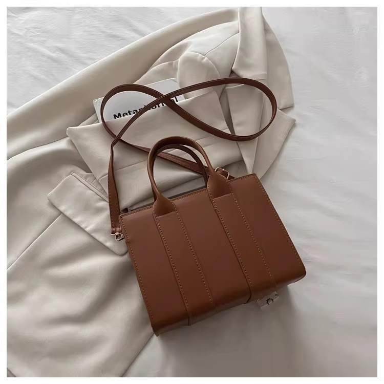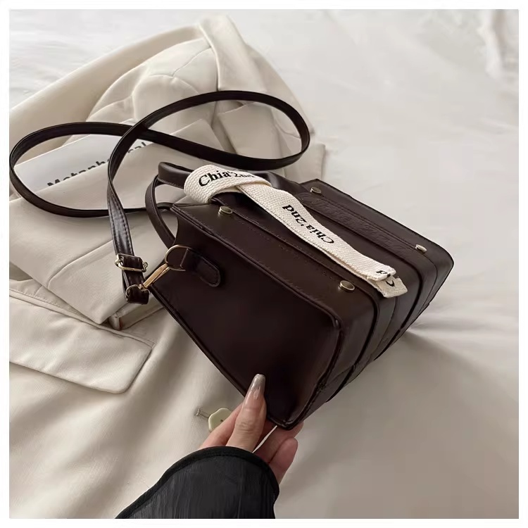 韩版复古手提小方包女包2025秋新款轻奢拼接单肩包通勤斜挎包
