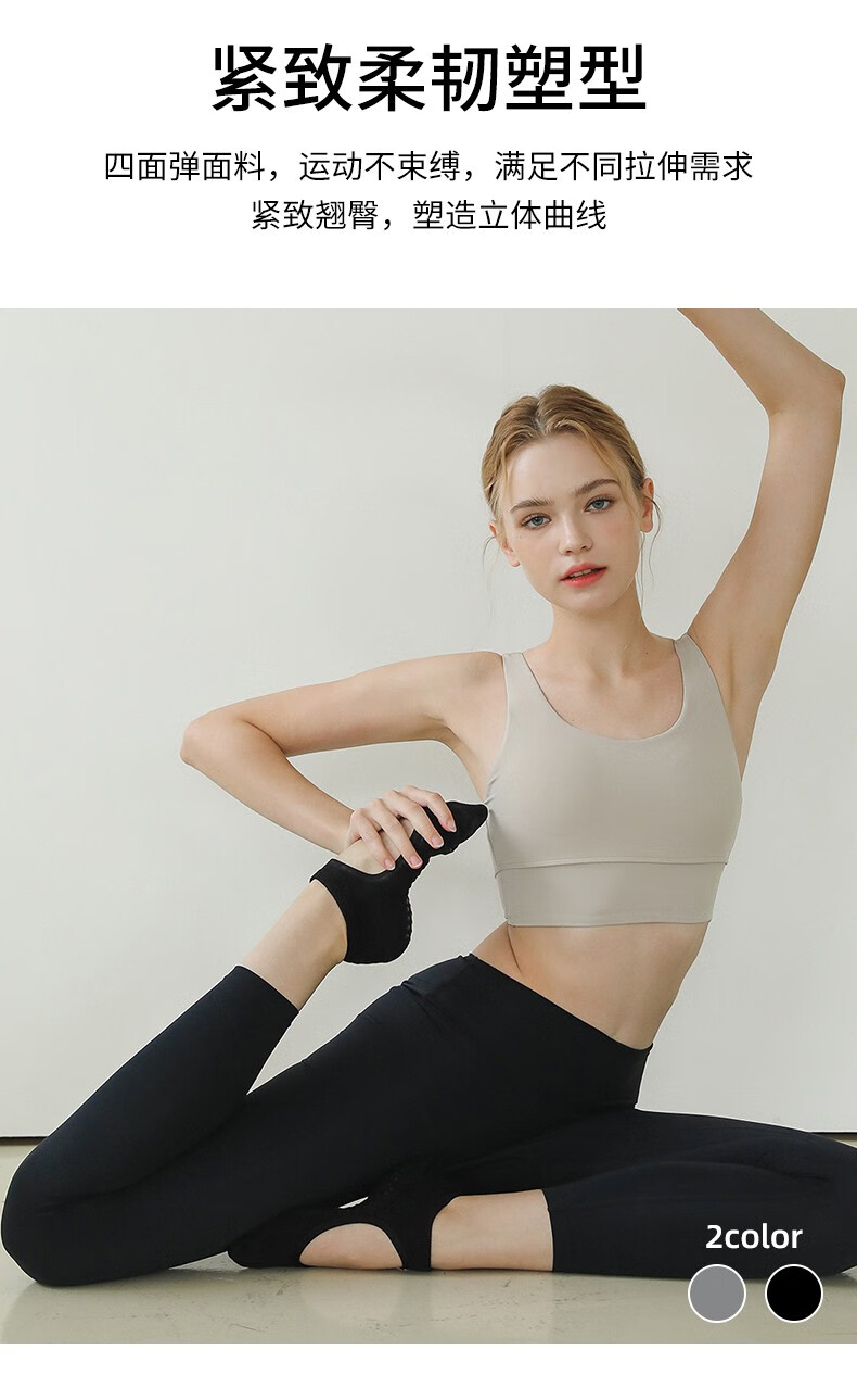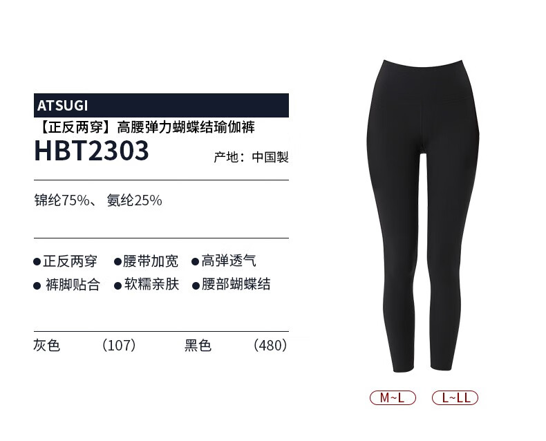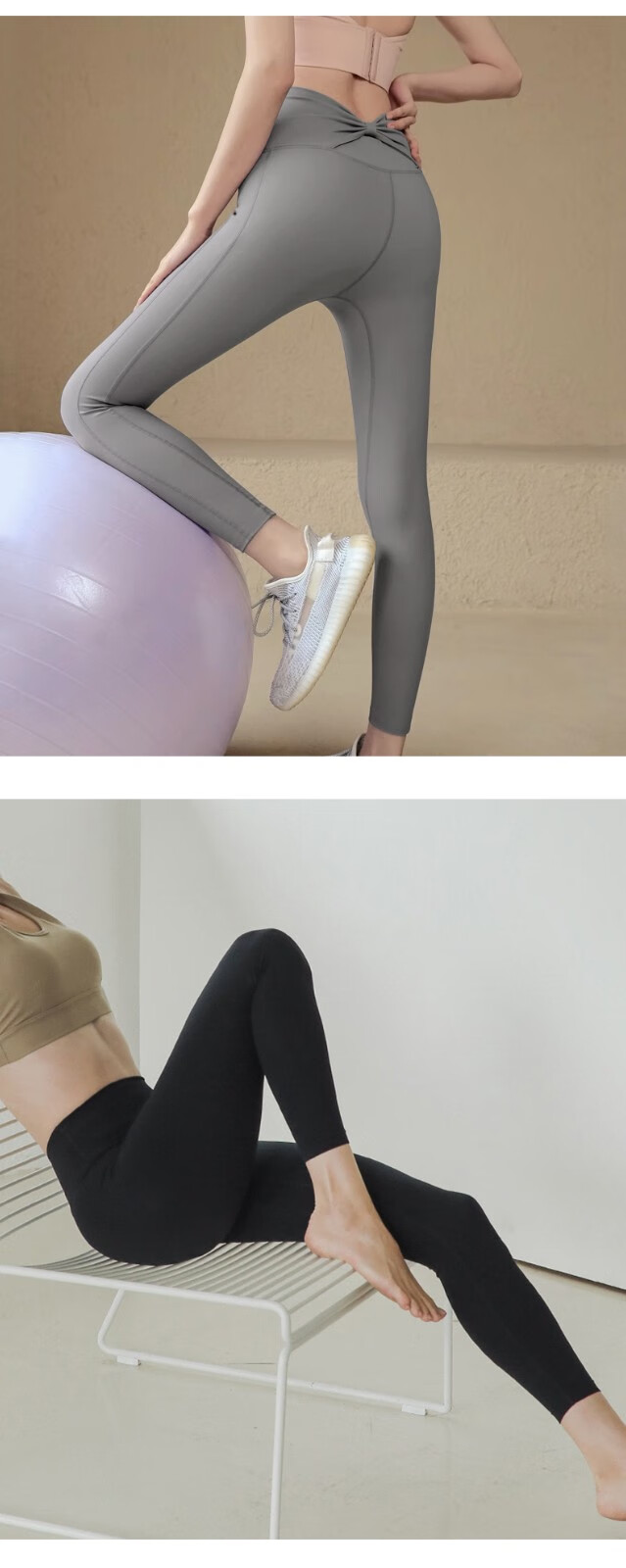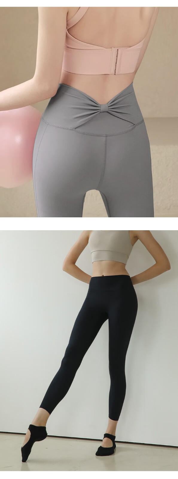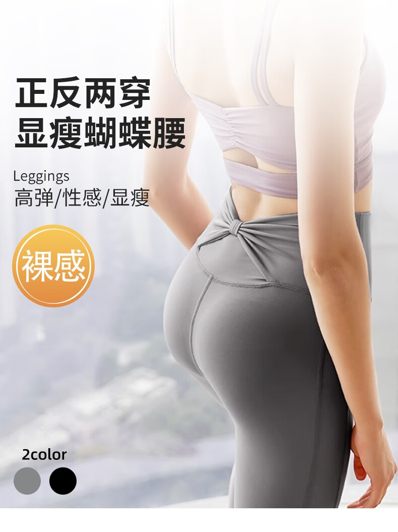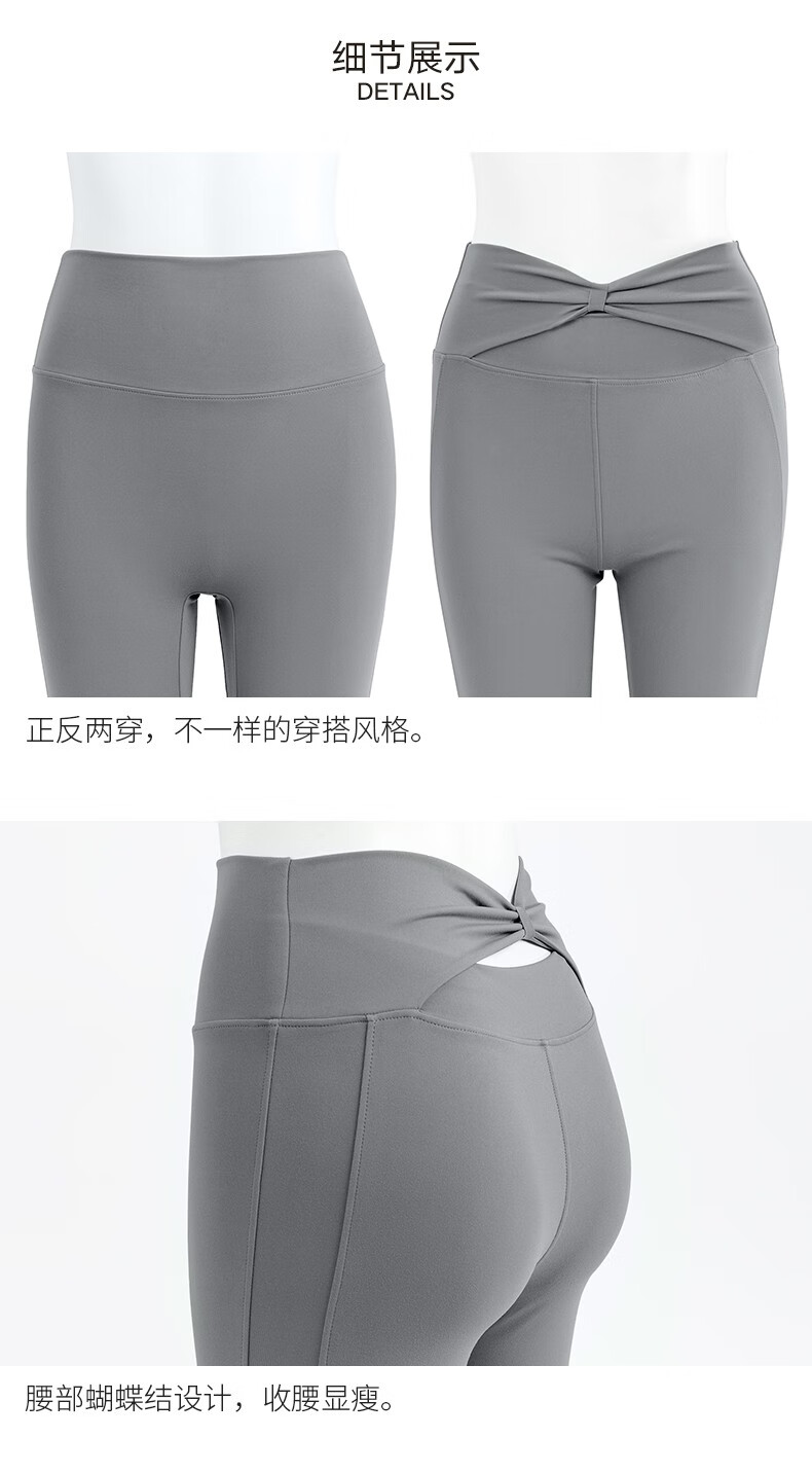厚木新品蝴蝶结装饰瑜伽裤正反穿休闲运动裤九分裸感打底裤女HBT2303 107灰色 1条 M L 身高150-165cm