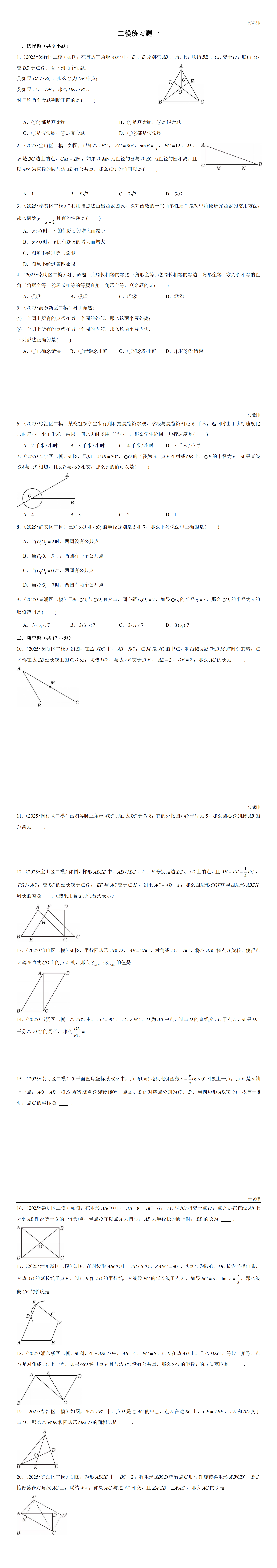 💛精选历年二模经典题,详细讲解+思路点拨+套路总结,提供批改和答疑服务,帮助学生完成最后的中考/二模冲刺!