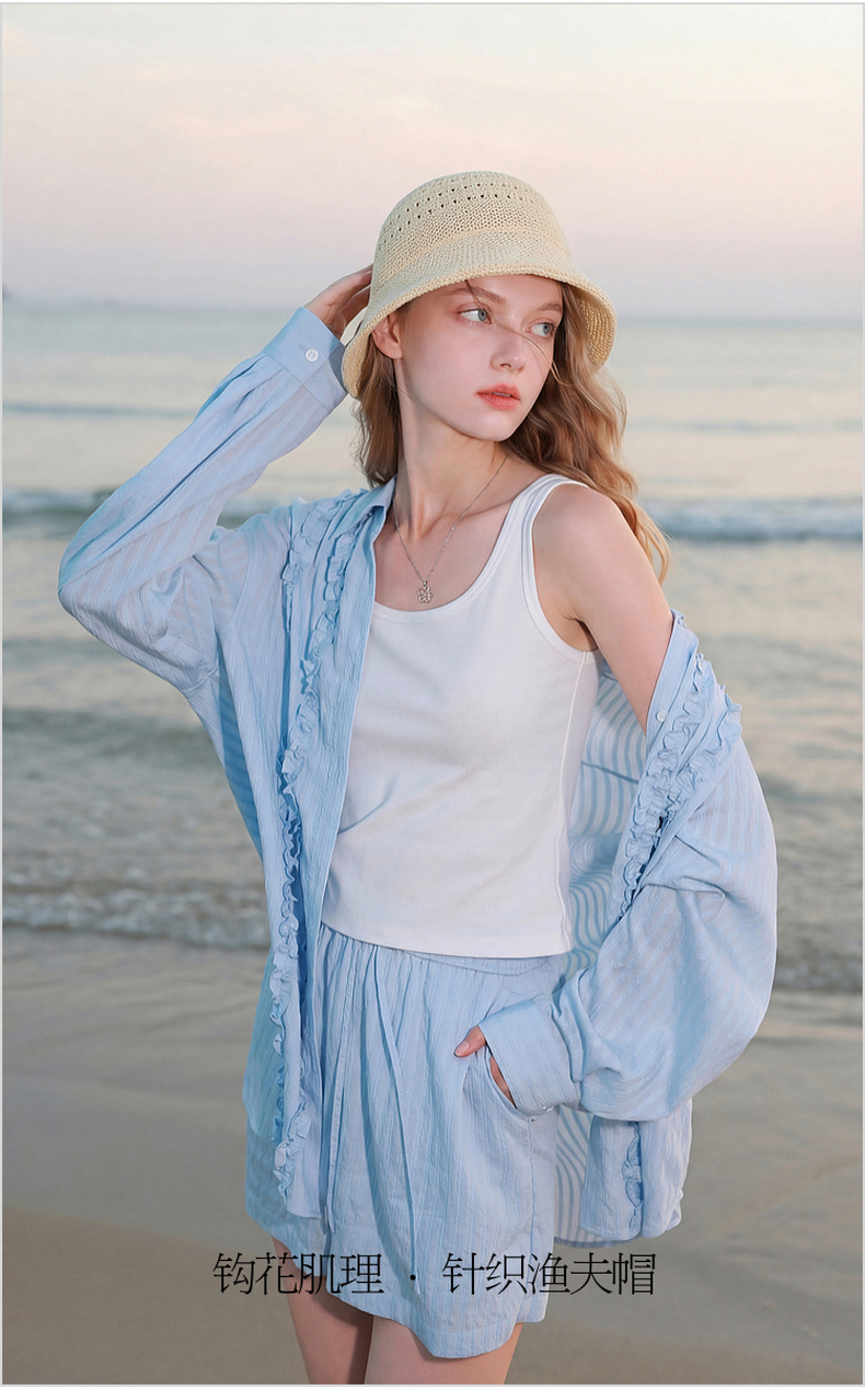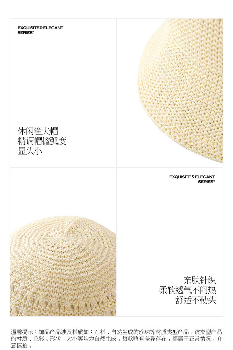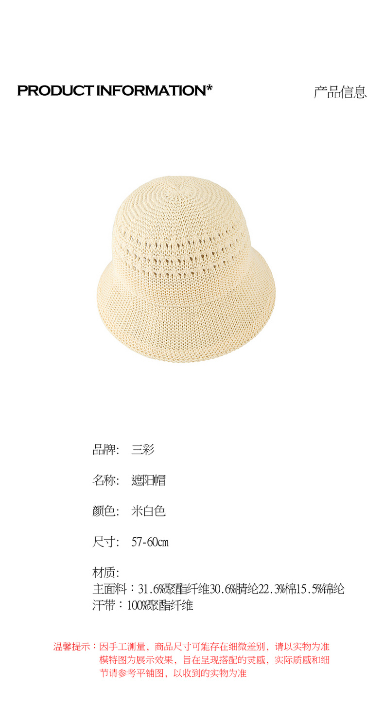 三彩2026新款镂空钩花针织渔夫帽遮阳透气桶帽盆帽沙滩海边出游女