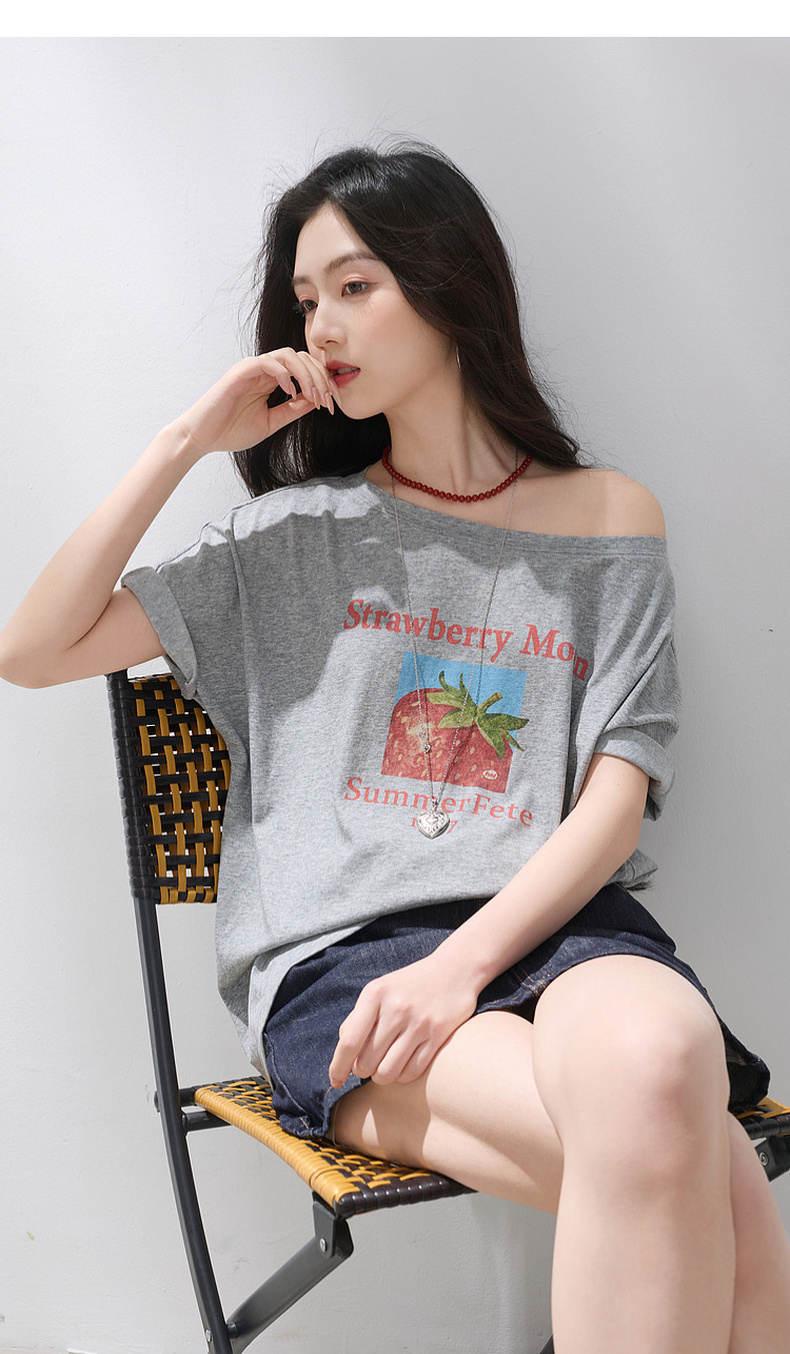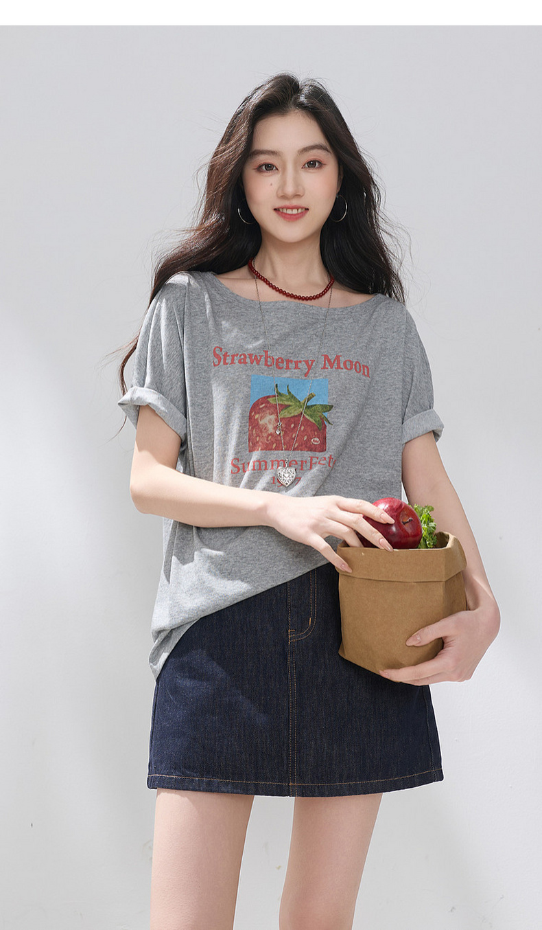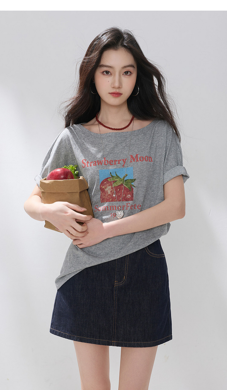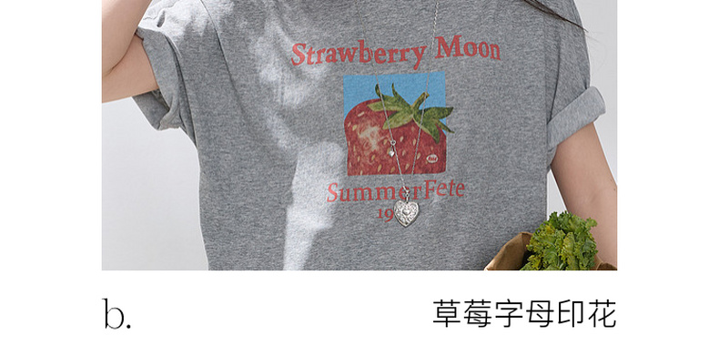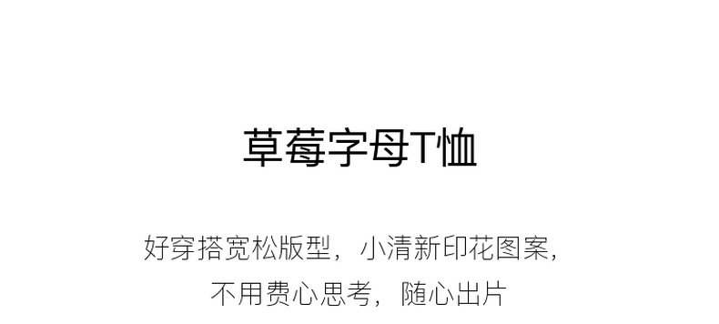 三彩2026夏季新款字母草莓印花T恤宽松短袖套头衫上衣休闲M