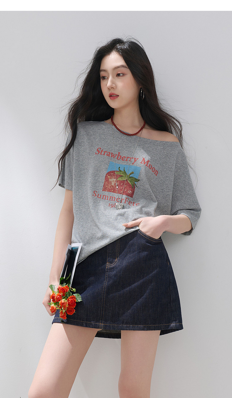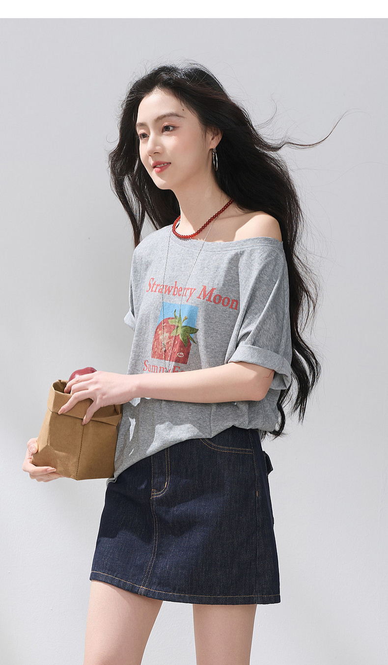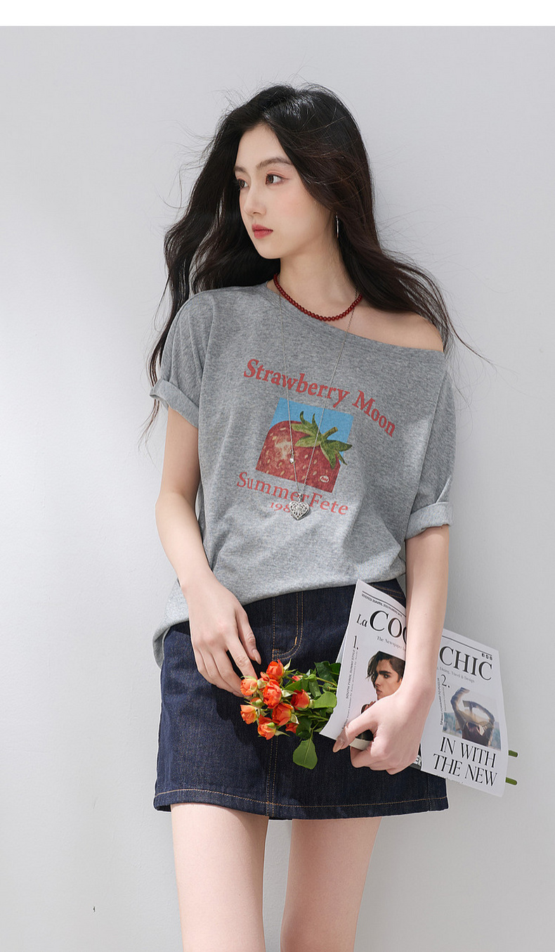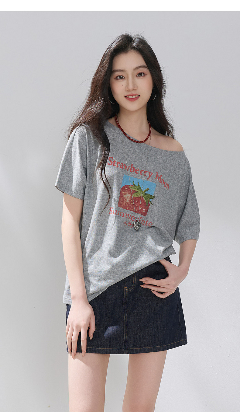 三彩2026夏季新款字母草莓印花T恤宽松短袖套头衫上衣休闲M