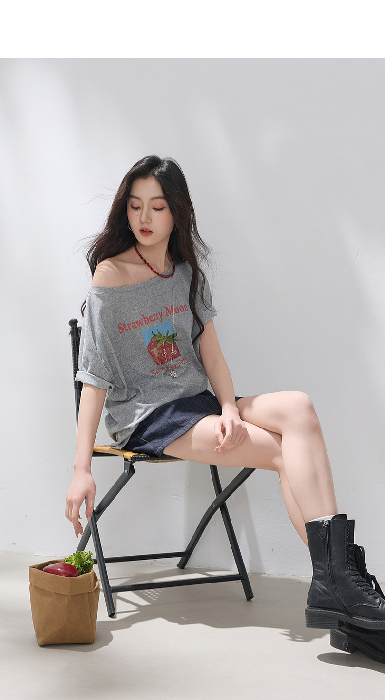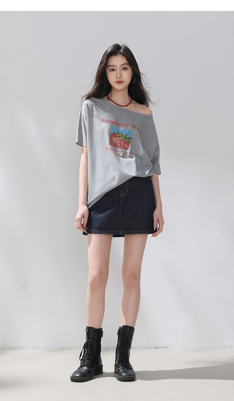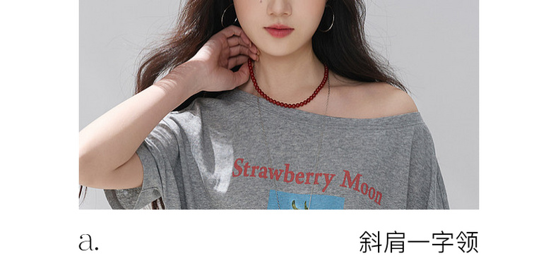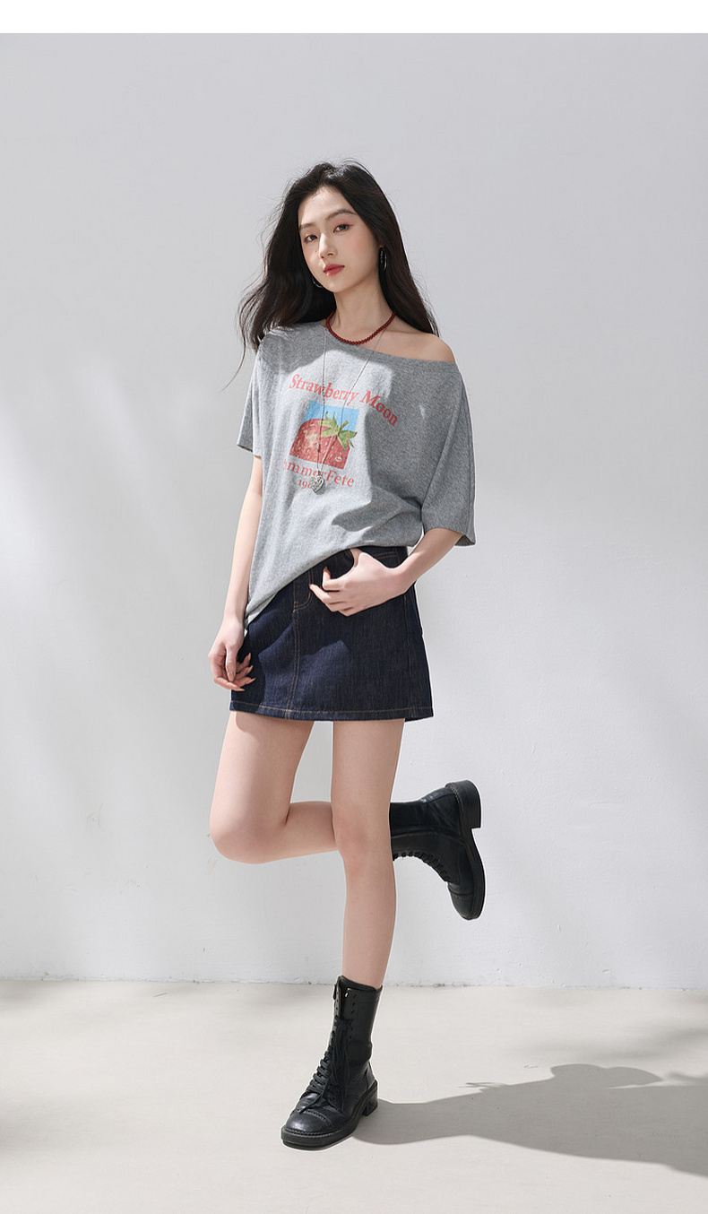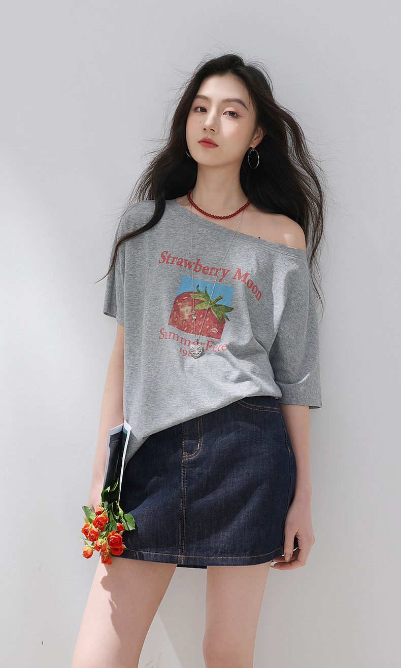 三彩2026夏季新款字母草莓印花T恤宽松短袖套头衫上衣休闲M