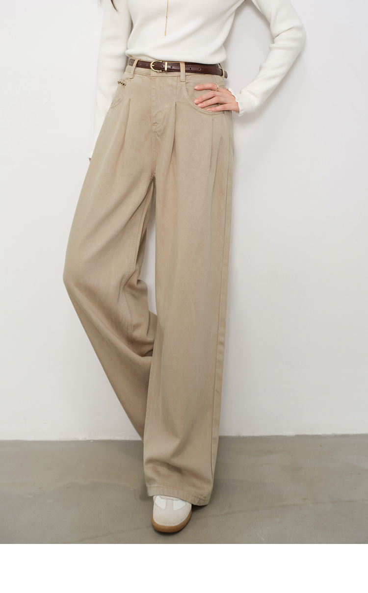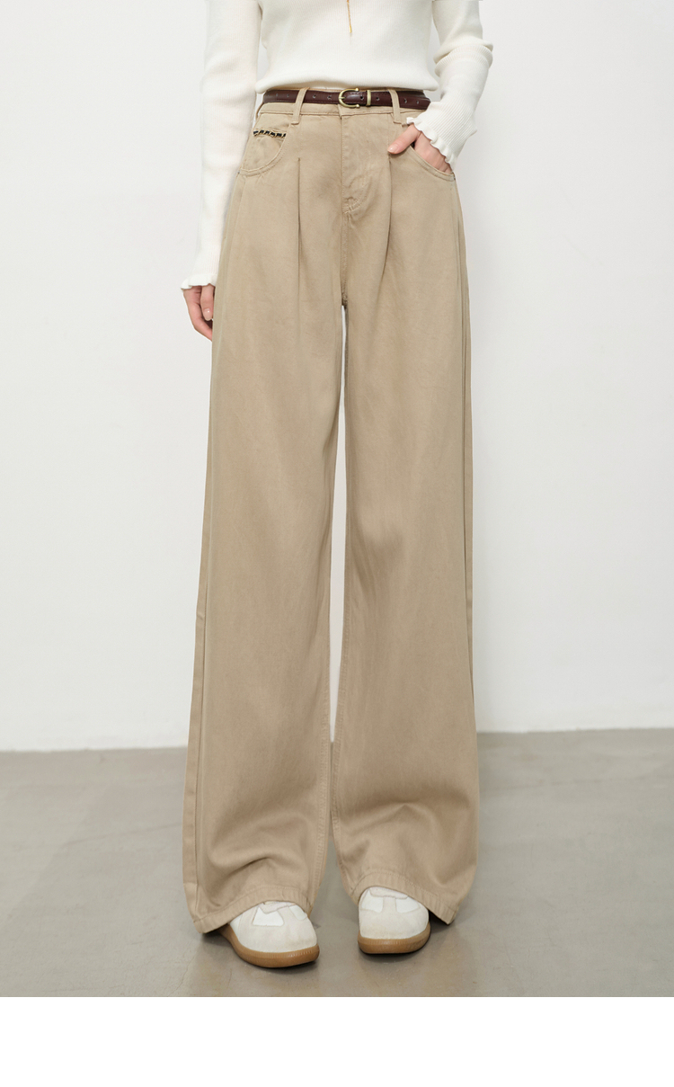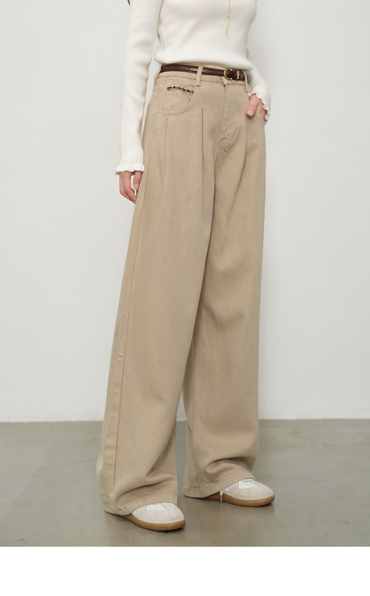 鹿向南「步履生花」高腰卡其牛仔裤女秋装宽松阔腿裤复古直筒长裤