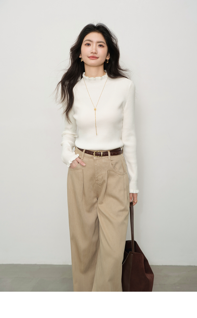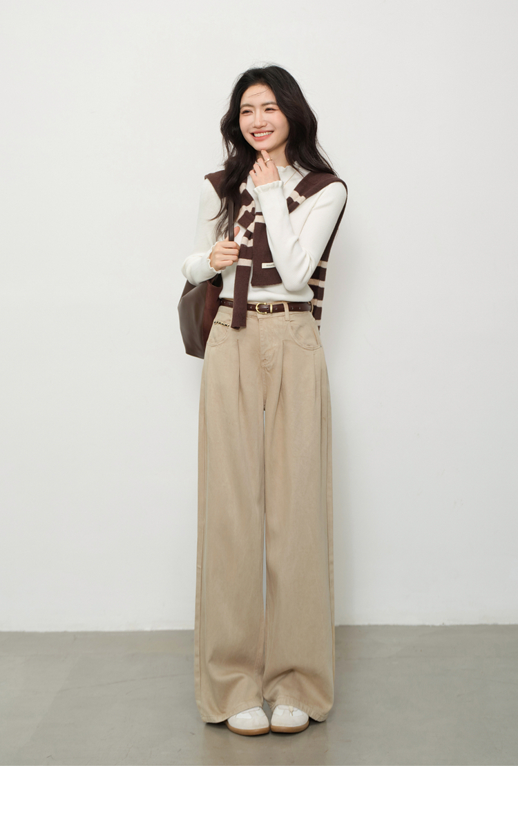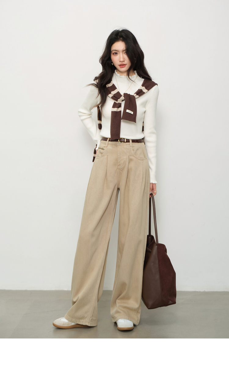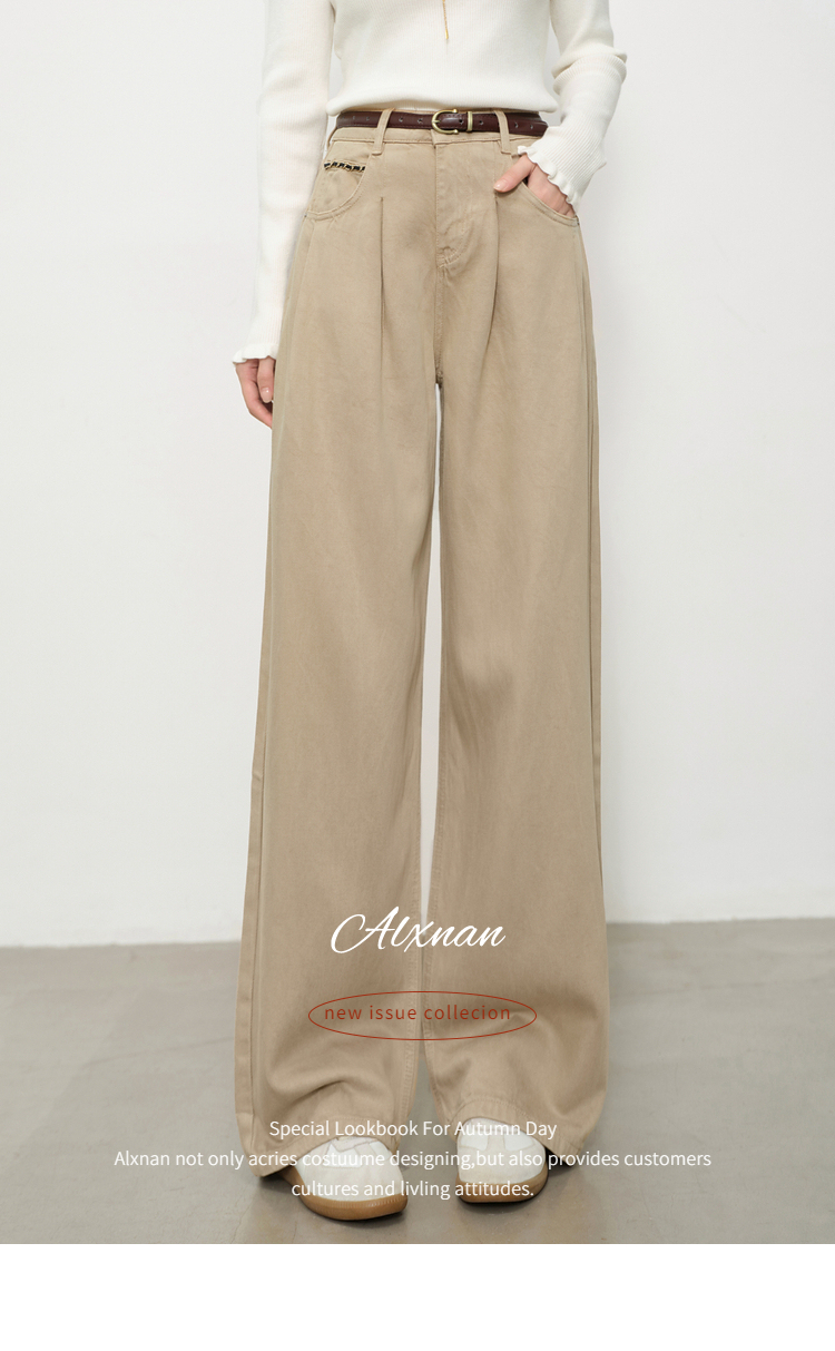 鹿向南「步履生花」高腰卡其牛仔裤女秋装宽松阔腿裤复古直筒长裤