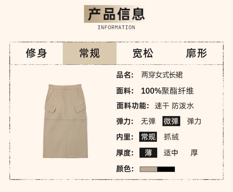 Dickies长裙短裙两穿速干裙工装裙女式长裙 休闲百搭裙子 DK0A8