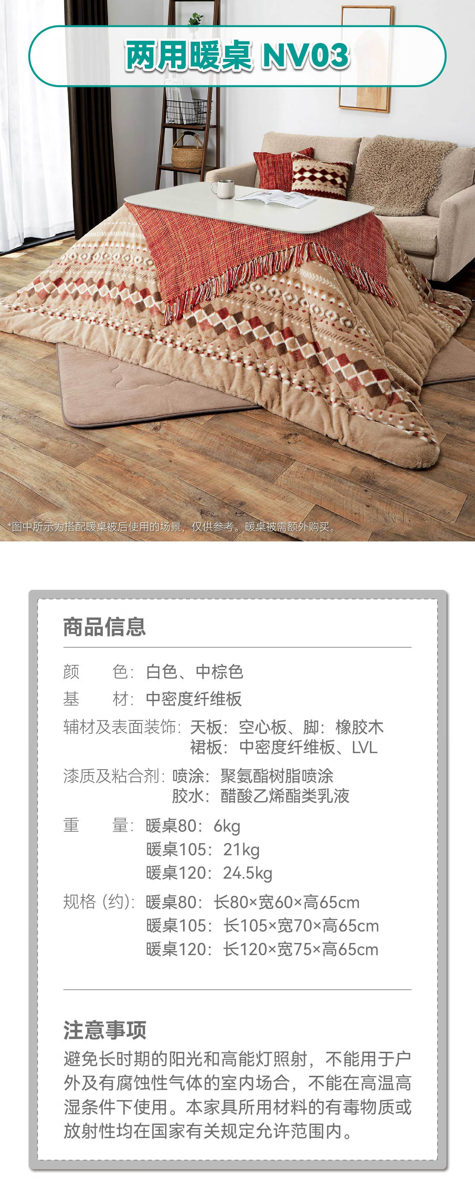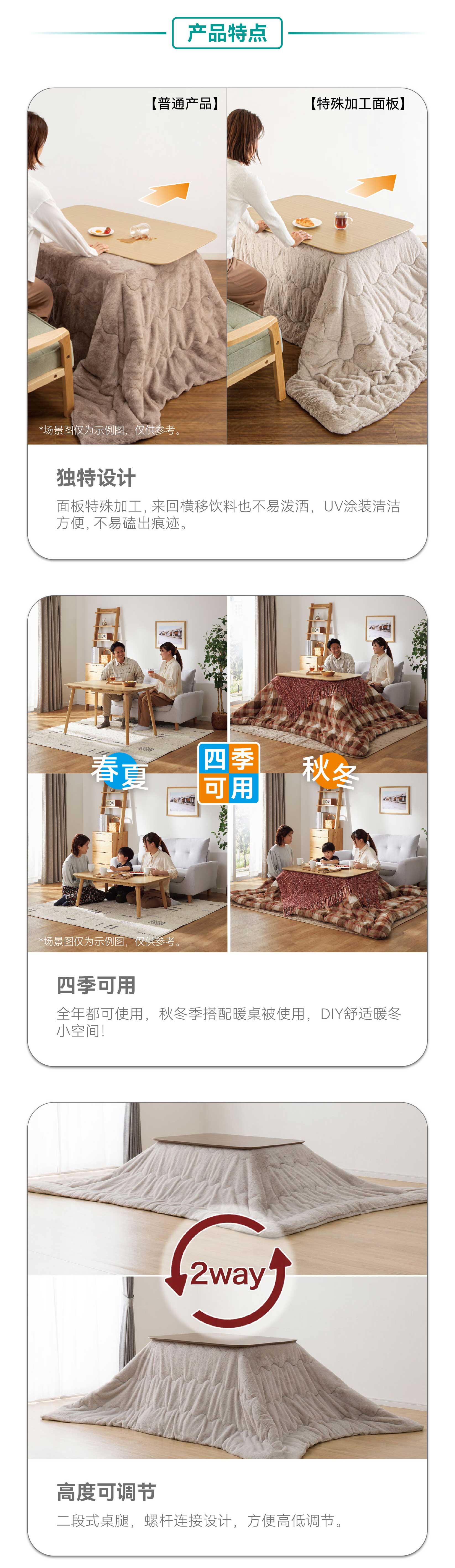【家具】暖脚神器高度可调节暖桌榻榻米茶几两用暖桌NV03