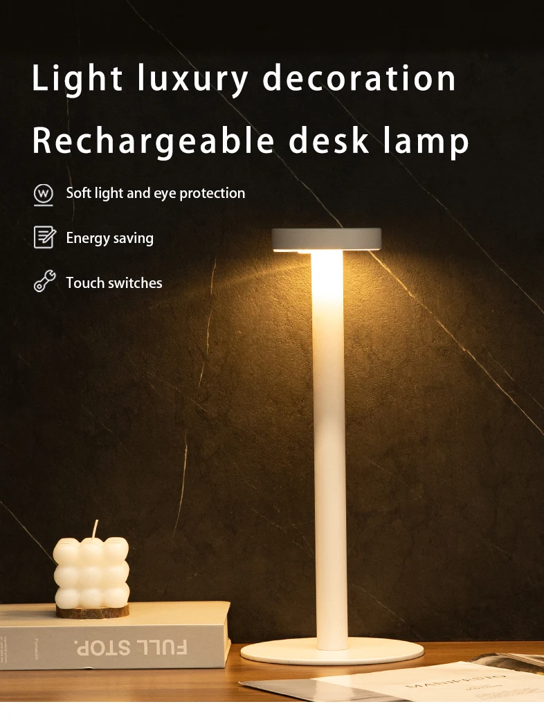 这款精美台灯配备触控按钮,提供低光、强光两档亮度调节,满足您不同场景的需求。