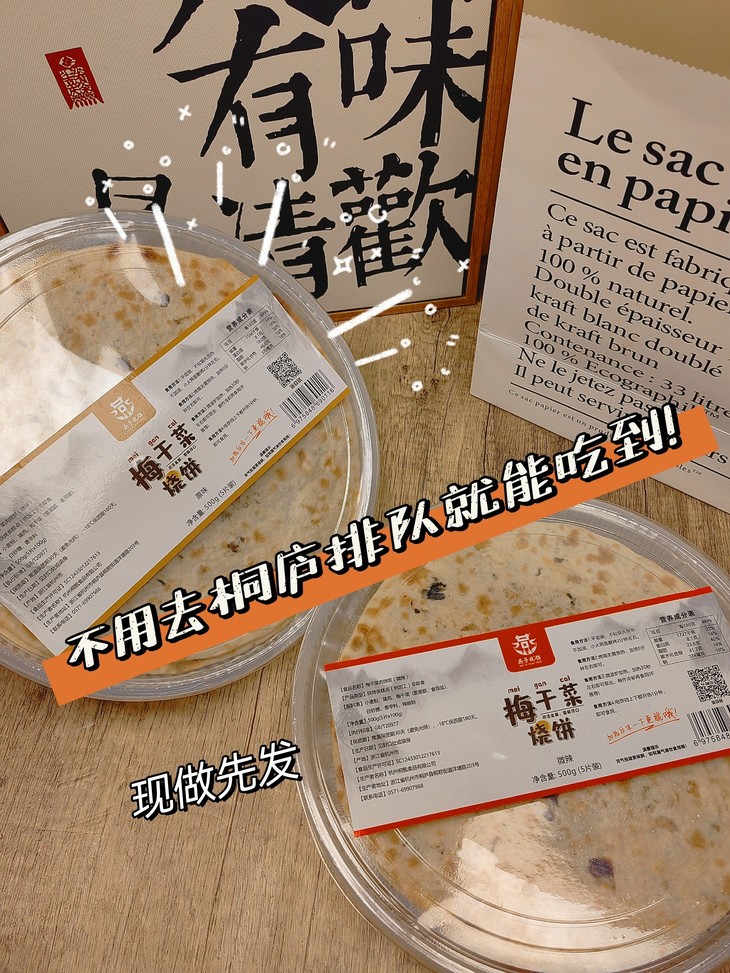 这次挑选的是正儿八经的桐庐非遗传统手艺人梅干菜烤饼,采用传统工艺制作而成,和在当地吃到的几乎一毛一样!最关键的还是十年五星老店呀