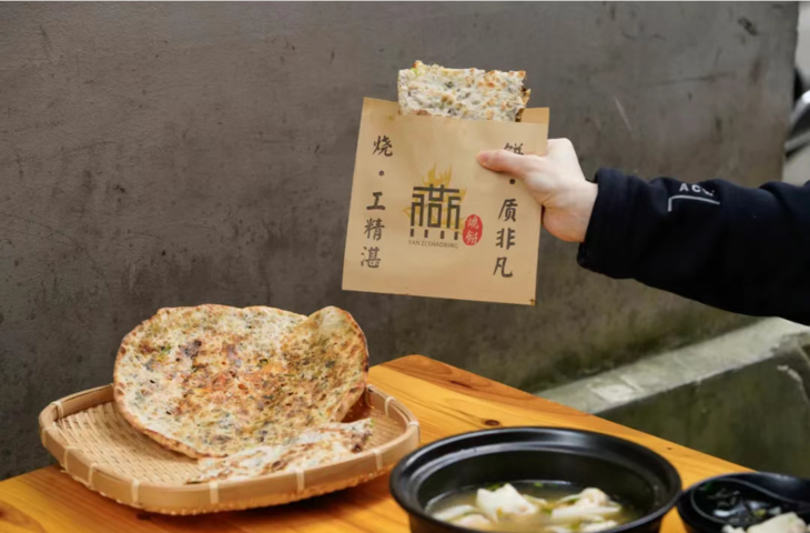 刚出炉的梅干菜烧饼还带着热腾腾的蒸汽 拿到手里略微有些烫手 这时候的口感是最佳的 燕子烧饼 梅干菜烧饼皮薄馅大 薄薄的一张饼,除开中心,边边角角都有梅菜扣肉的馅料存在 保证让食客每口都能吃到馅儿,每口都有满足感。