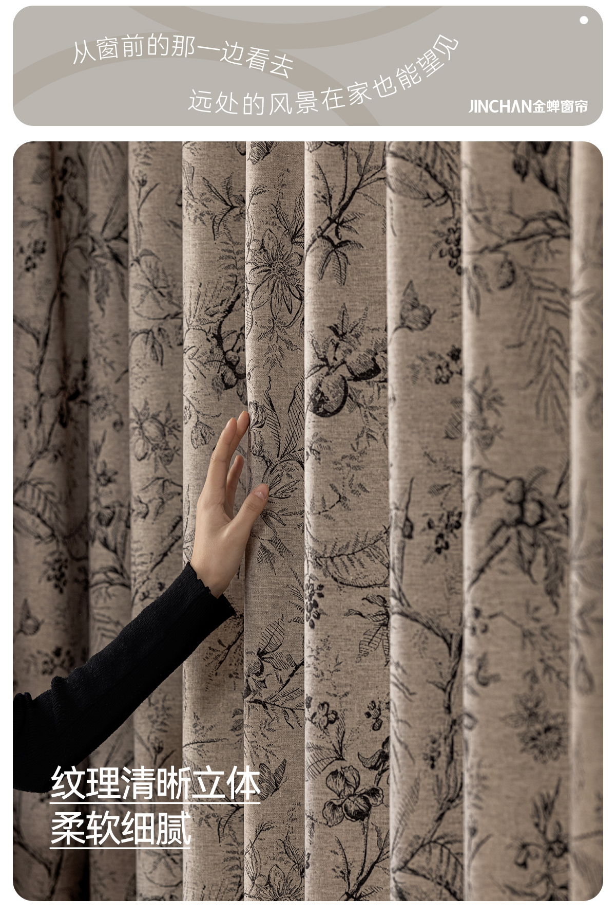 【春日花吟】金蝉雪尼尔提花窗帘(可加花边)