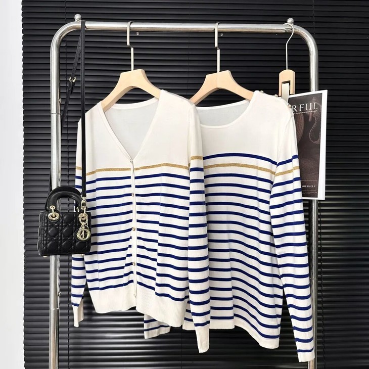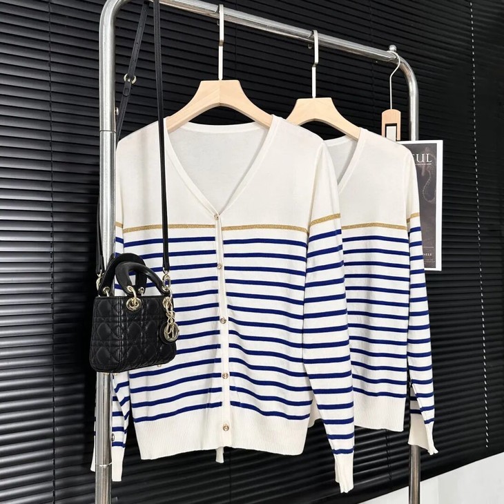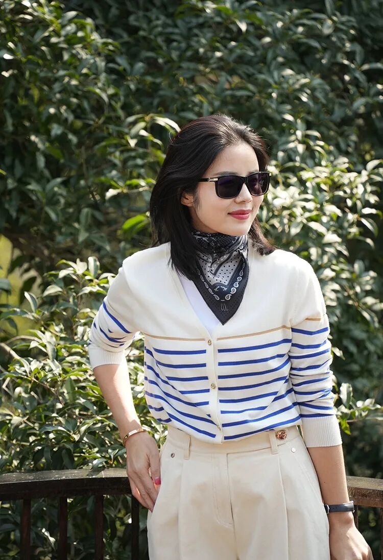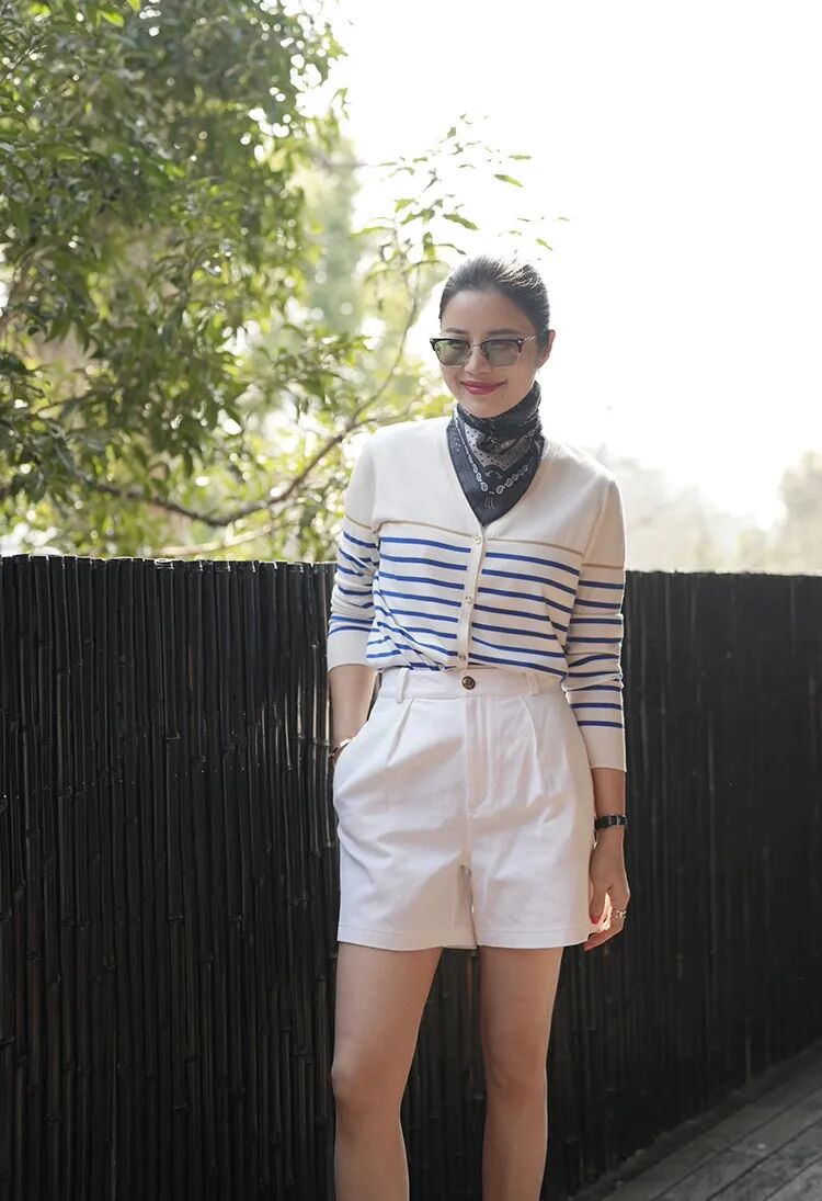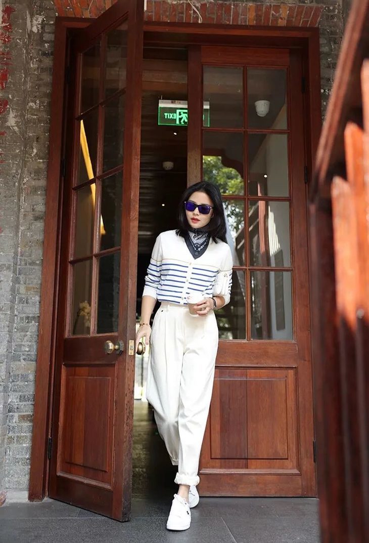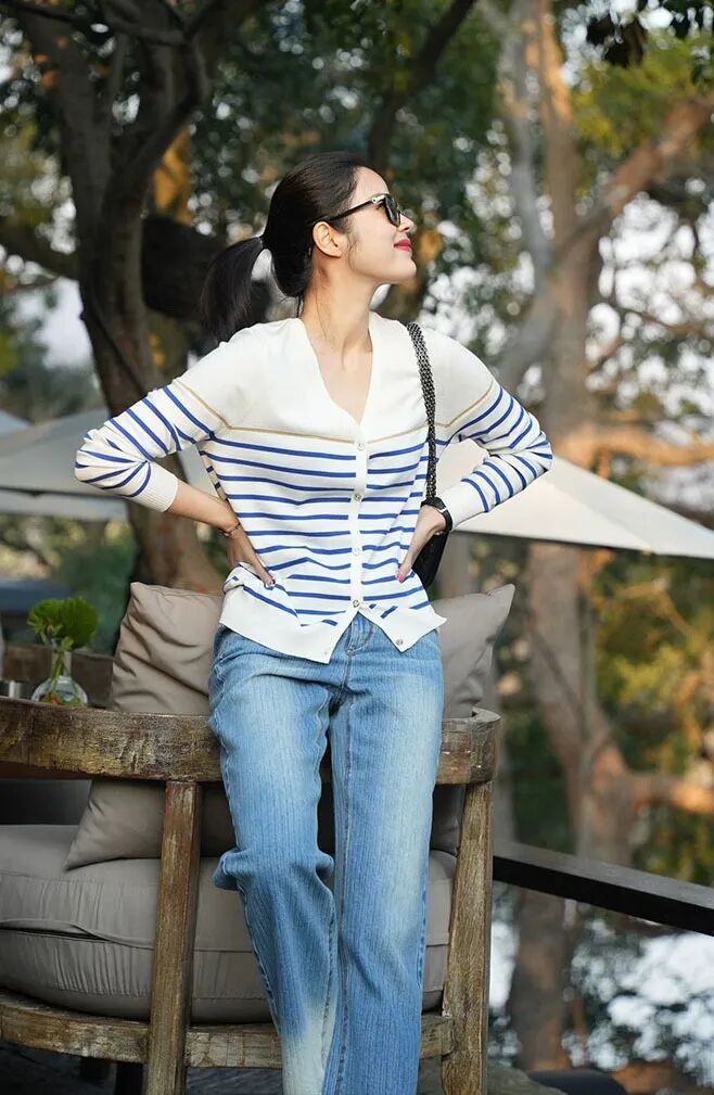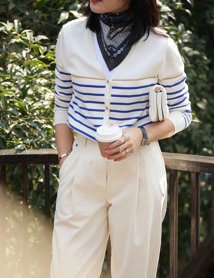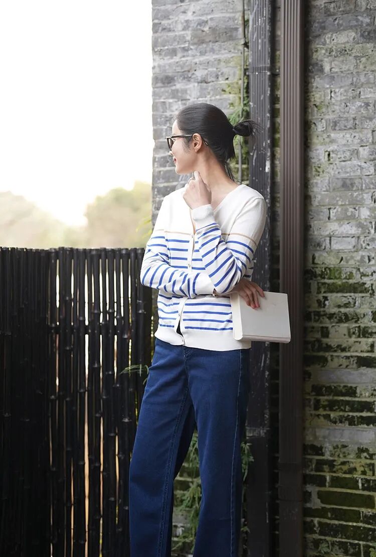 蓝白条纹像把海浪穿在身上🌊