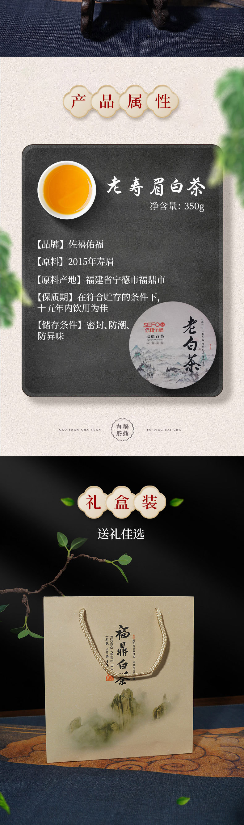 佐禧佑福 白茶2015寿眉350g茶叶茶饼