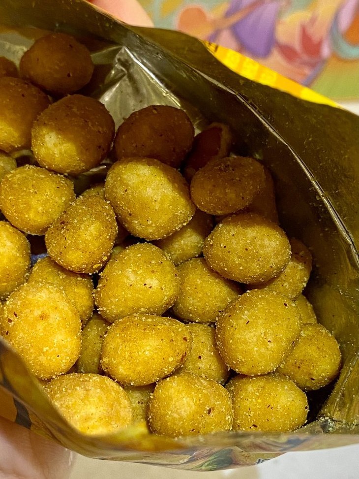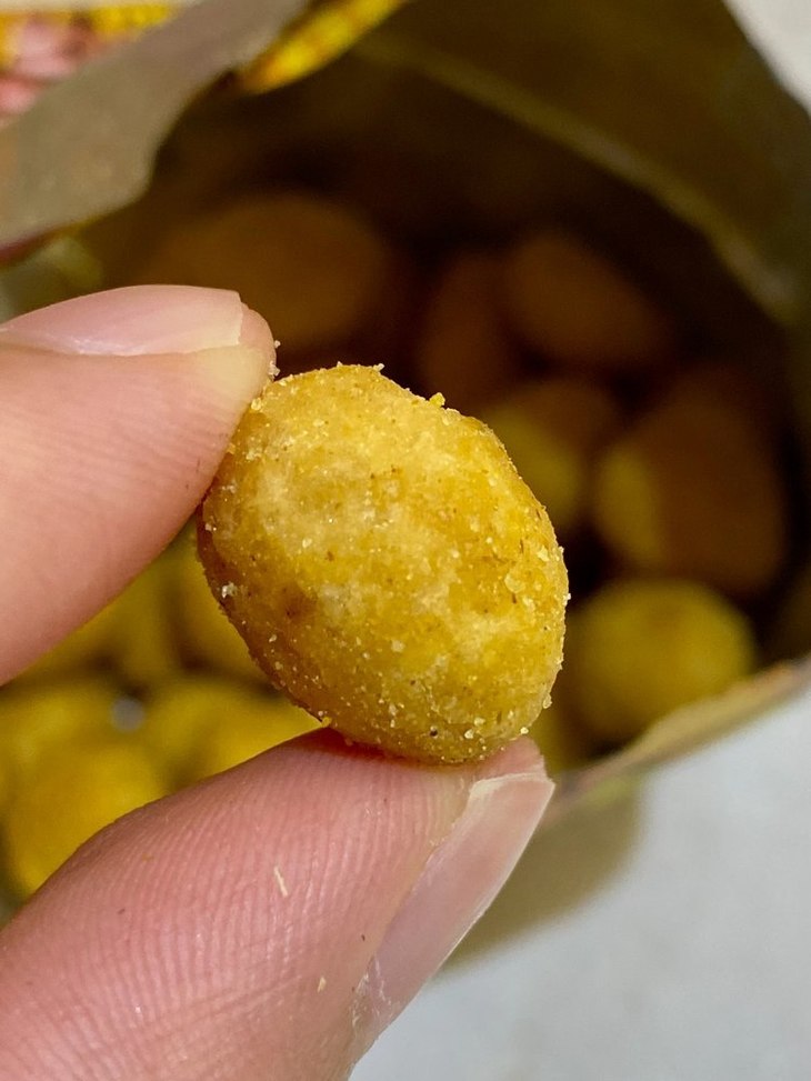 色泽金黄,吃第一口时童年的回忆就被打开了 入口是带咸口的,后期就变得微微有点甜 层次丰富又酥脆,形容不出来的味道 怪不得叫怪味豆🤨 但是‼️好吃是王道 我能吃一下午停不下来 不仅费牙,还费手 吃完疯狂舔手指