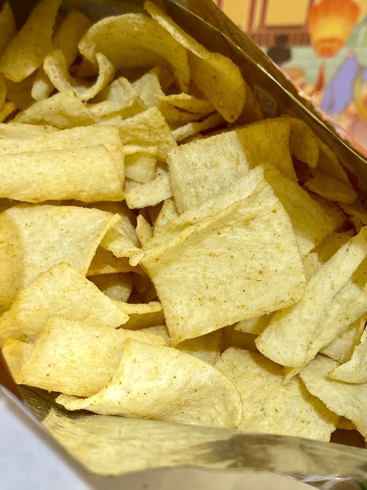 🔺非油炸薯片经典原味40g 追剧的时候吃真的秒没 一片接着一片 好吃到嗦手指~ 薯香🥔浓郁 酥酥脆脆 每一片上面都裹满了粉粉,味道贼拉香 ! 而且是非油炸明火烘焙 好吃不上火🔥 健康好吃