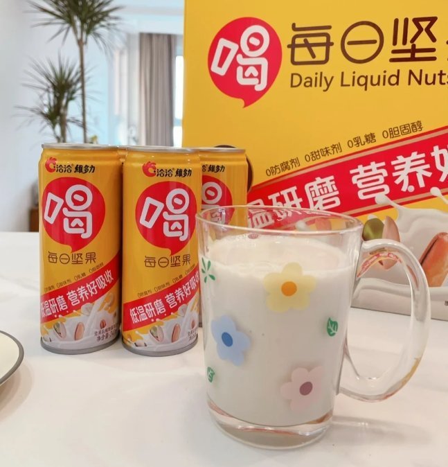 从黄色瓶身中飘出满满的坚果清香,口感清爽甜度适中✌️ 口感细腻丝滑香醇浓郁 喝起来就是香香的坚果饮料味, 配料表也比较干净,喝多了不会觉得黏喉咙, 忙碌的早上或是慵懒的下午,手握一杯香浓坚果乳, 为自己补充满满的蛋白质,满血复活!!