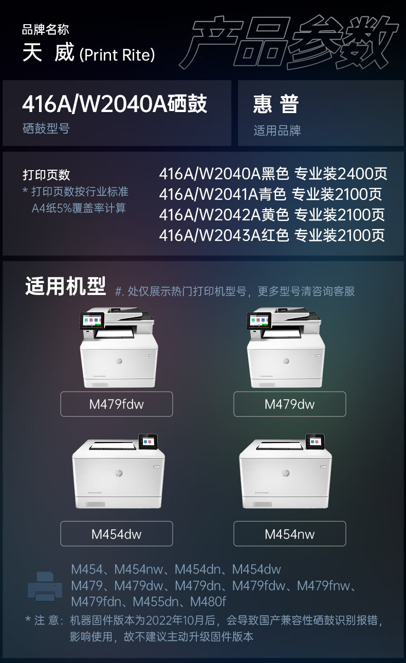 天威 416A/W2040A硒鼓 立信装 适用惠普HP M479fdw M479dw M479dw M454dw M454nw M454dn M480f 硒鼓 天威立信装