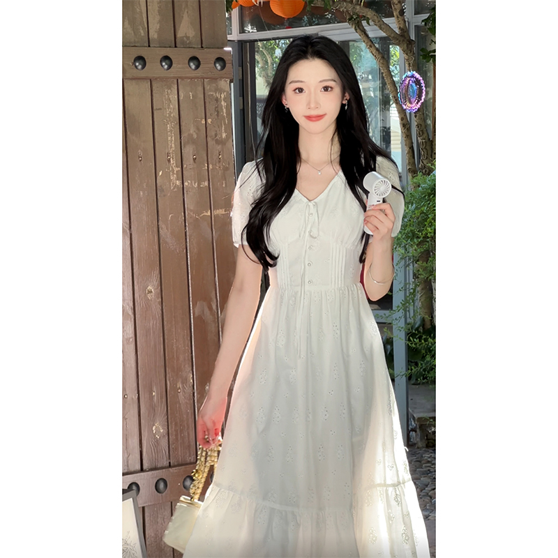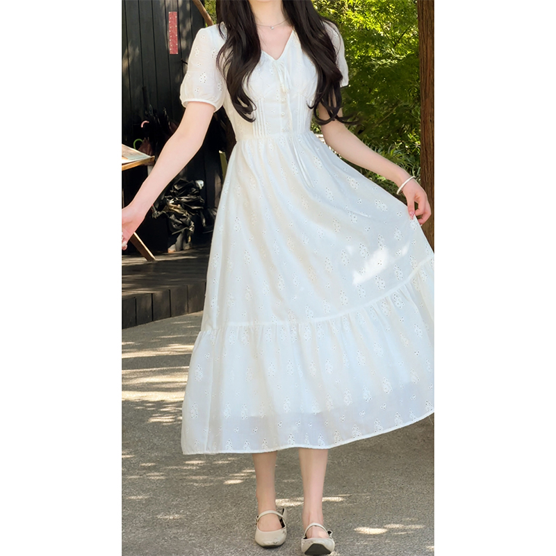 【65折秒杀】鹿向南「月光絮镜」法式白色薄纱连衣裙女夏气质刺绣好看收腰长裙