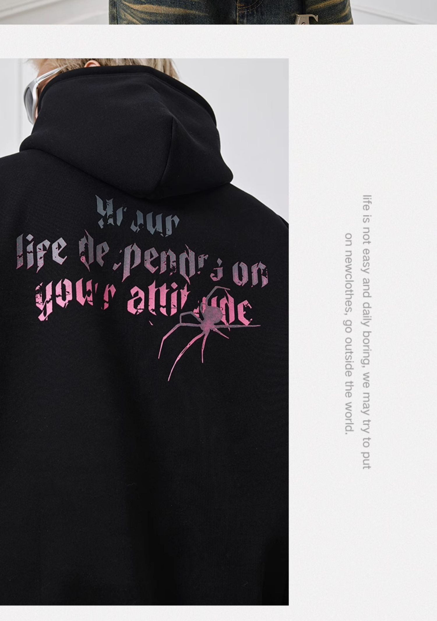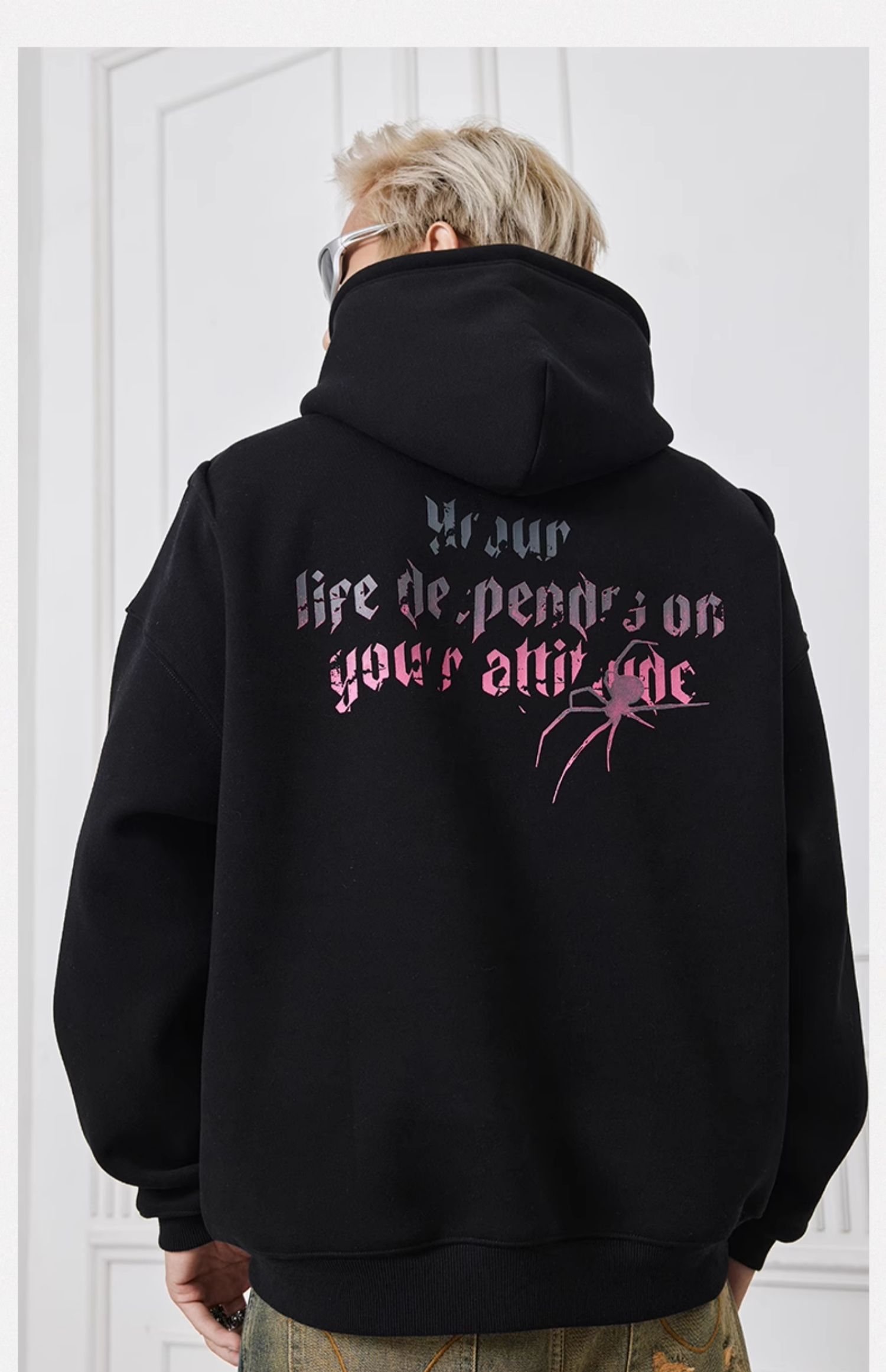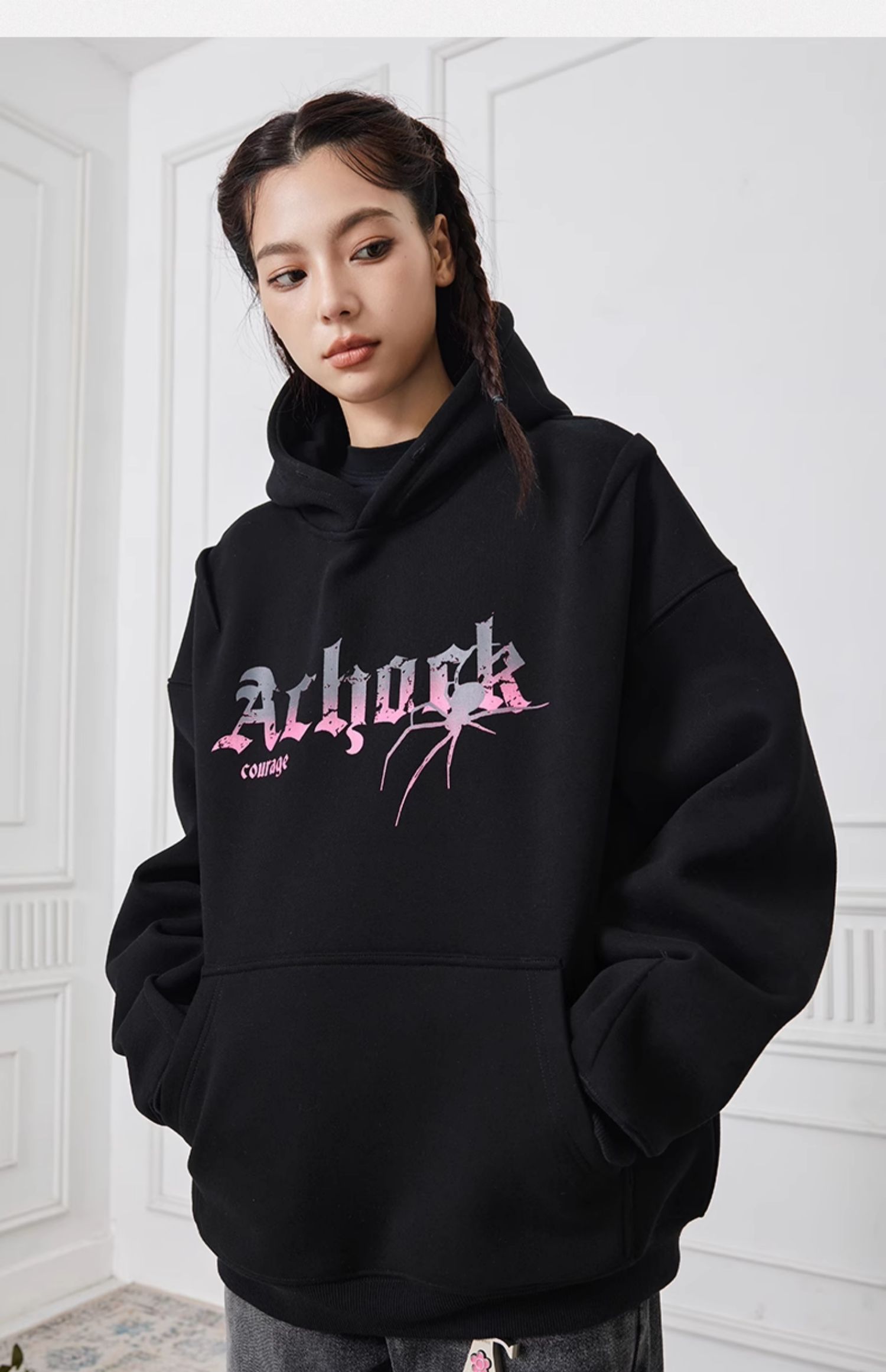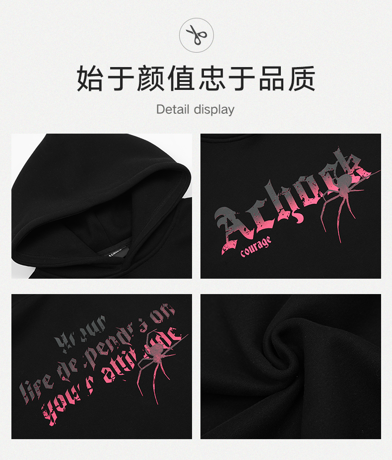 【Achock官方店】美式潮牌蜘蛛印花连帽拉链卫衣男高级潮帽衫原创
