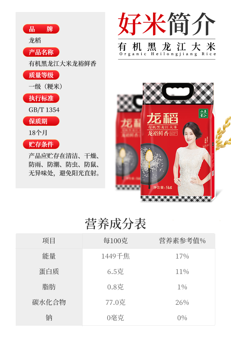 【龙稻】有机寒地大米龙裕鲜香 5KG