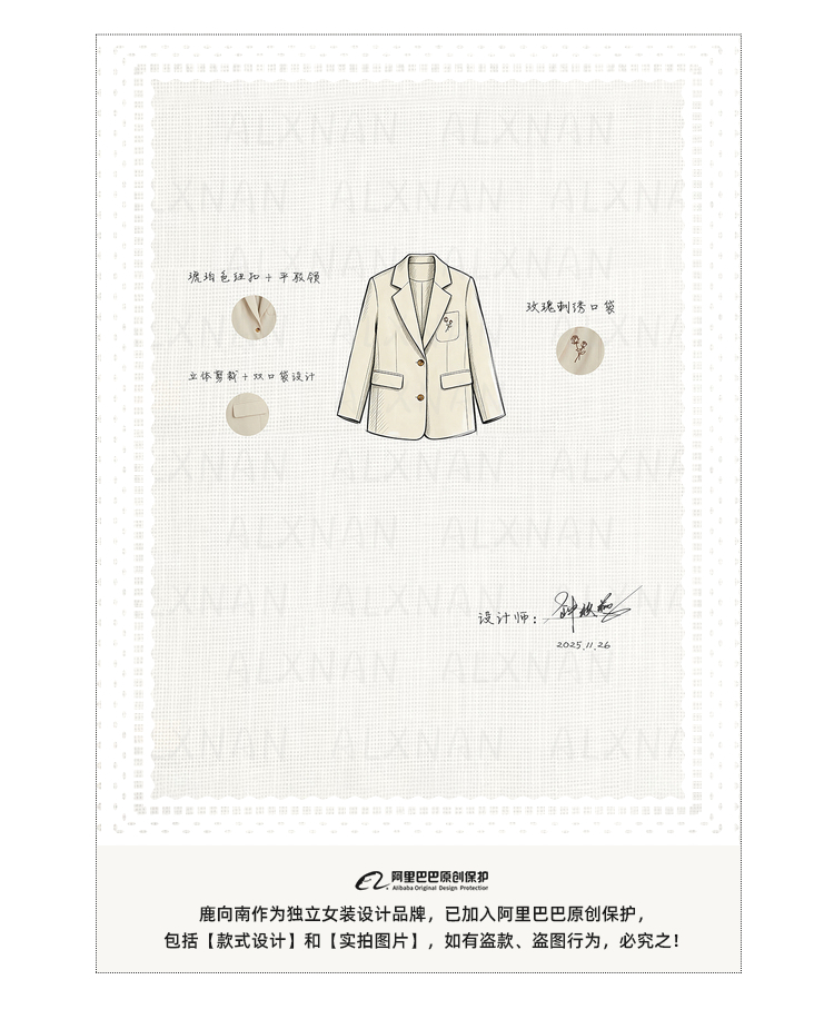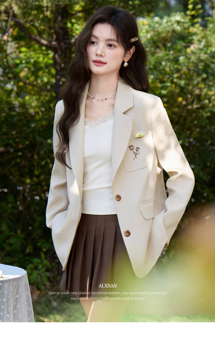 鹿向南「油画情书」高级感气质西装外套女士春季新款杏色西服上衣