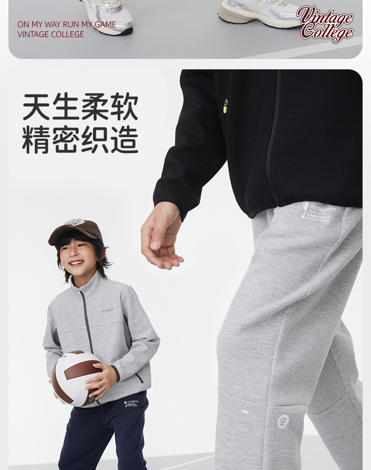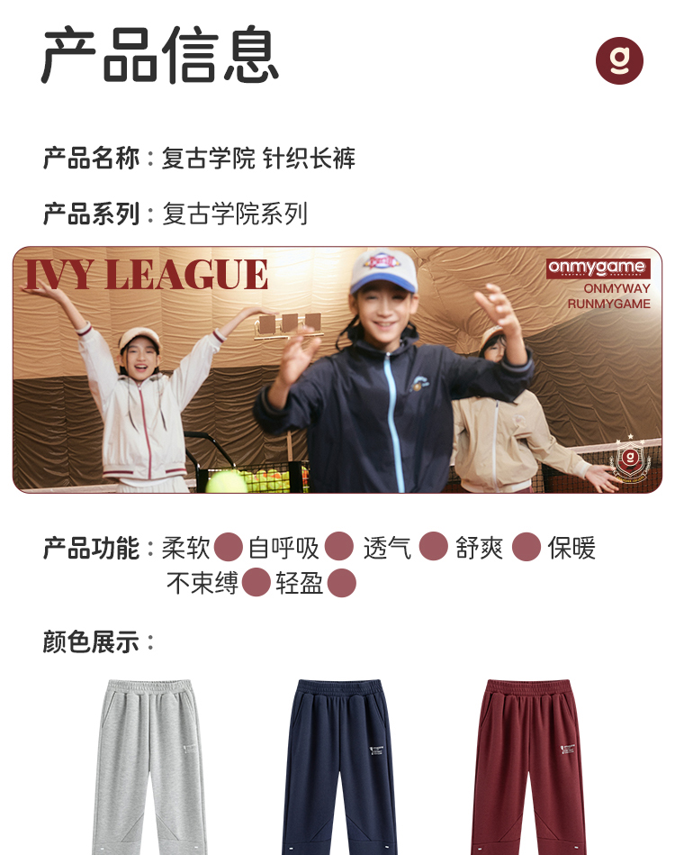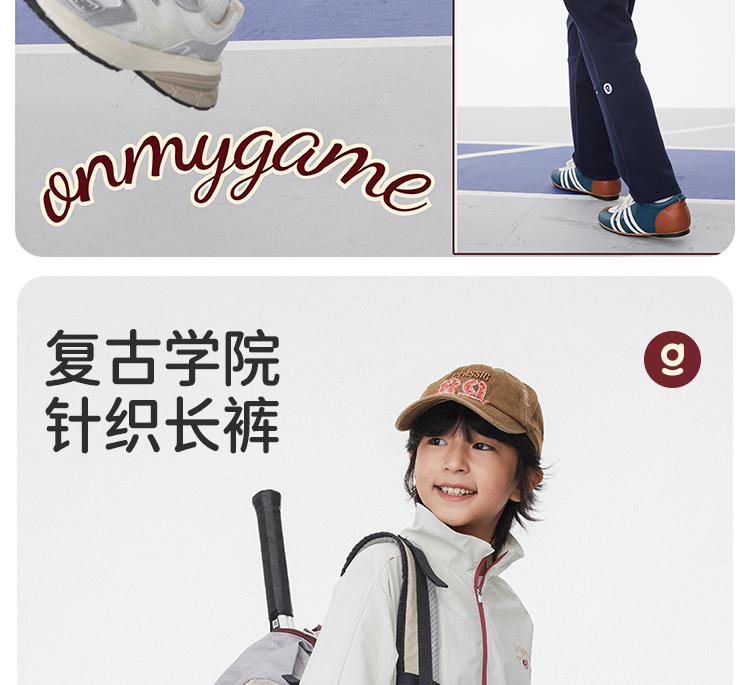 11onmygame【复古学院】男女童裤子春季2025新款针织长裤运动儿童