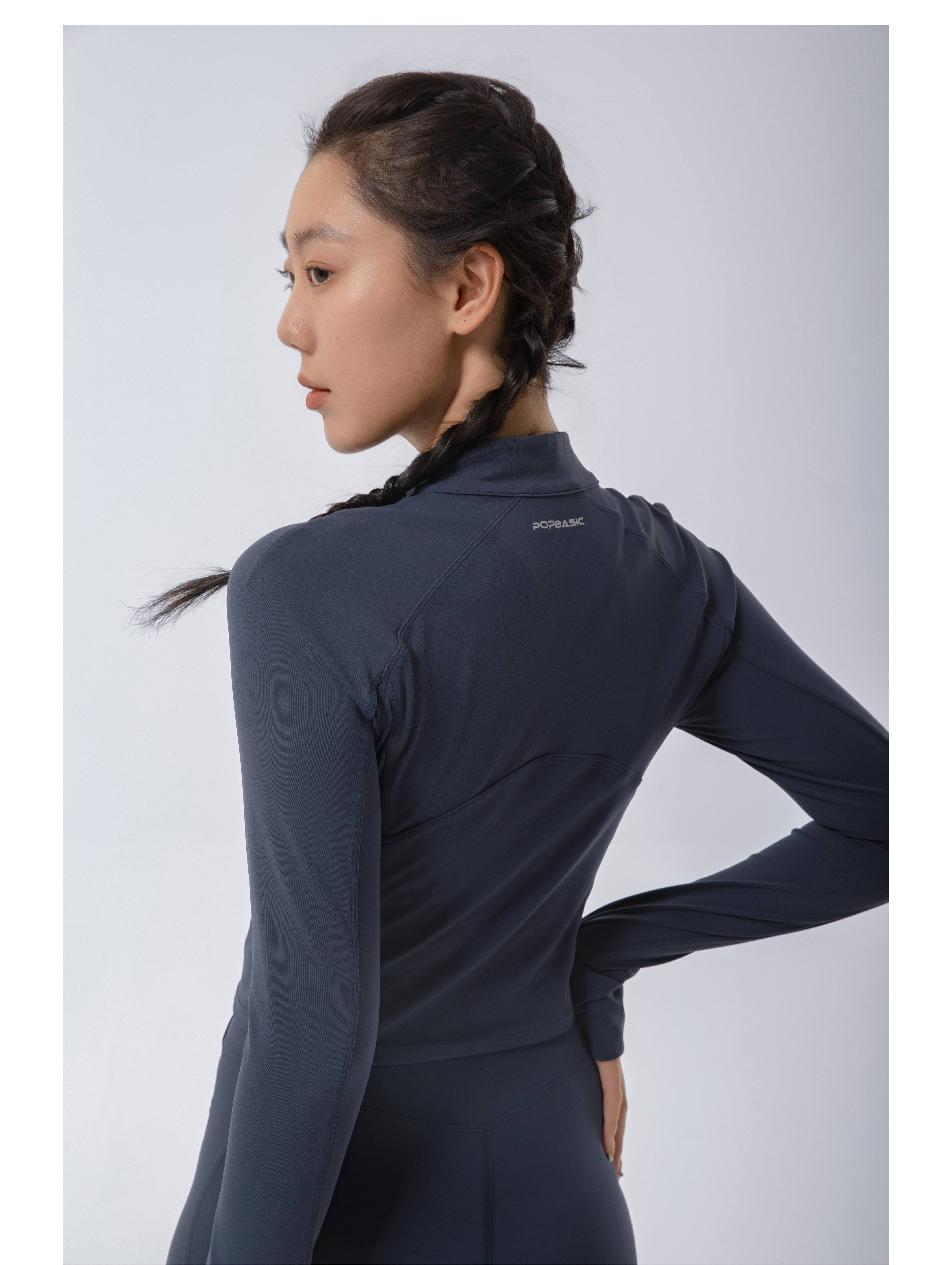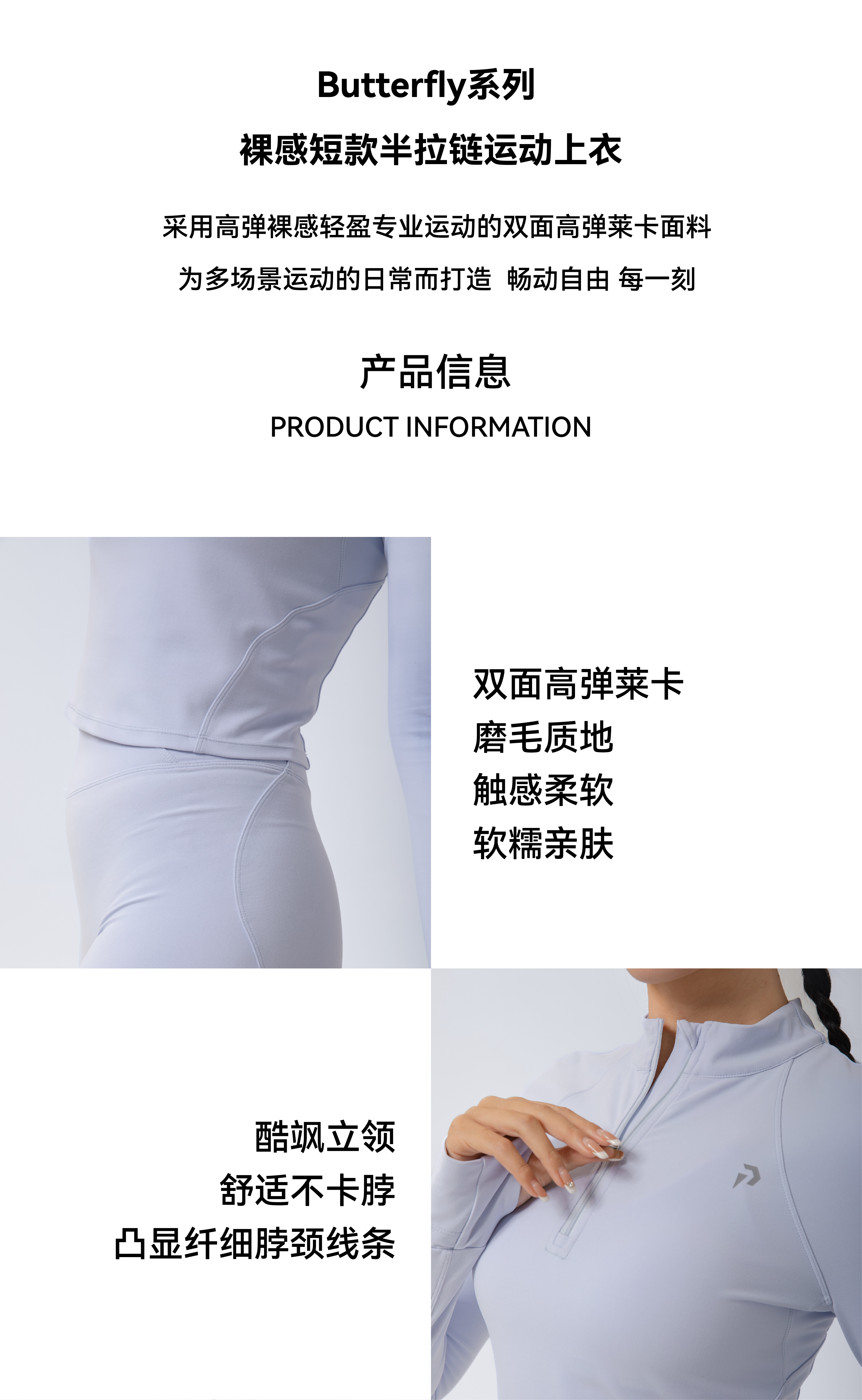 POPBASIC Butterfly系列裸感短款半拉链运动上衣