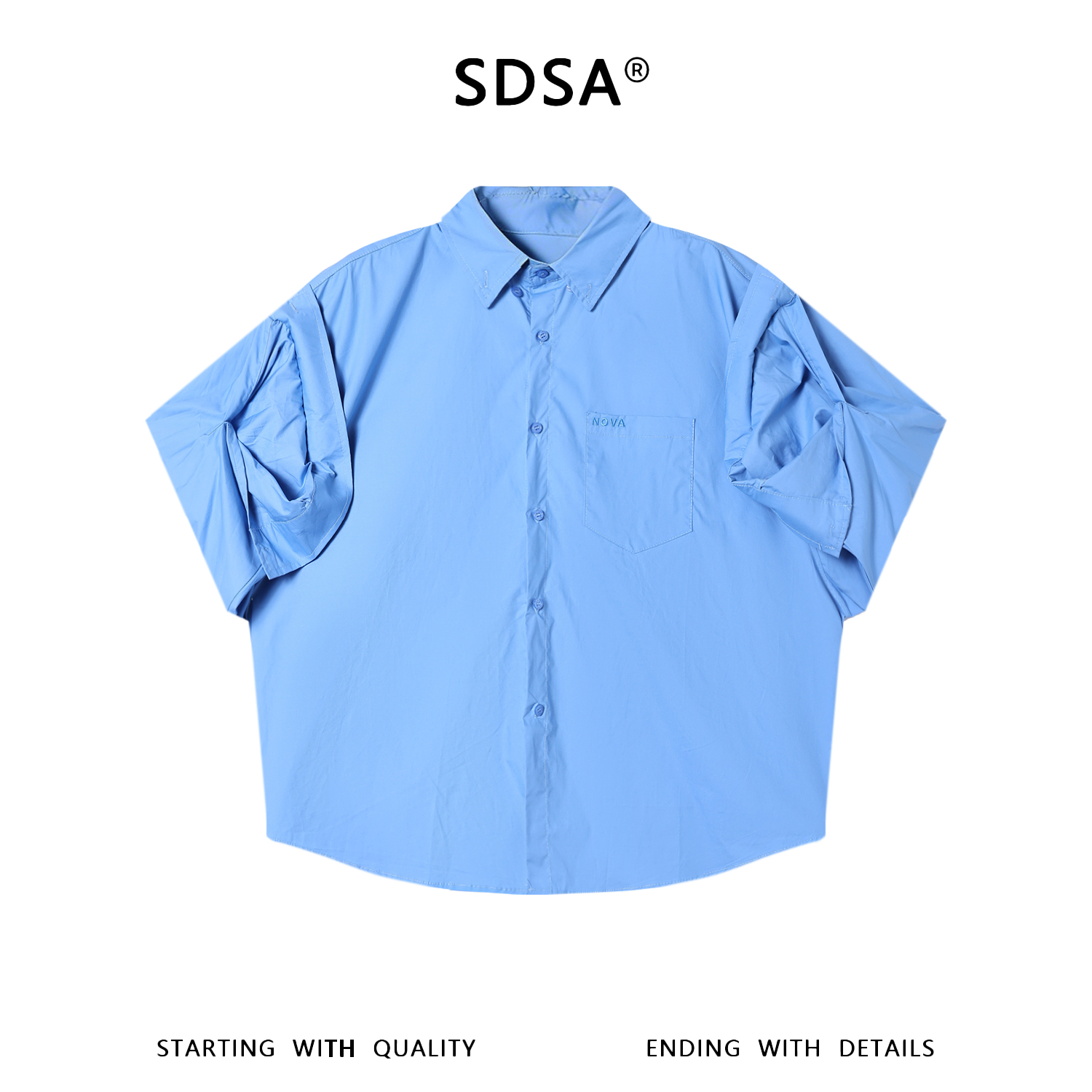 SDSA男装2026新款高贵轻奢潮牌刺绣字母纯色短袖衬衫百搭宽松上衣