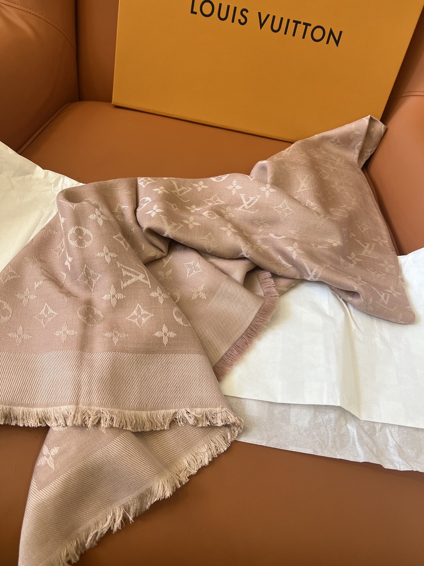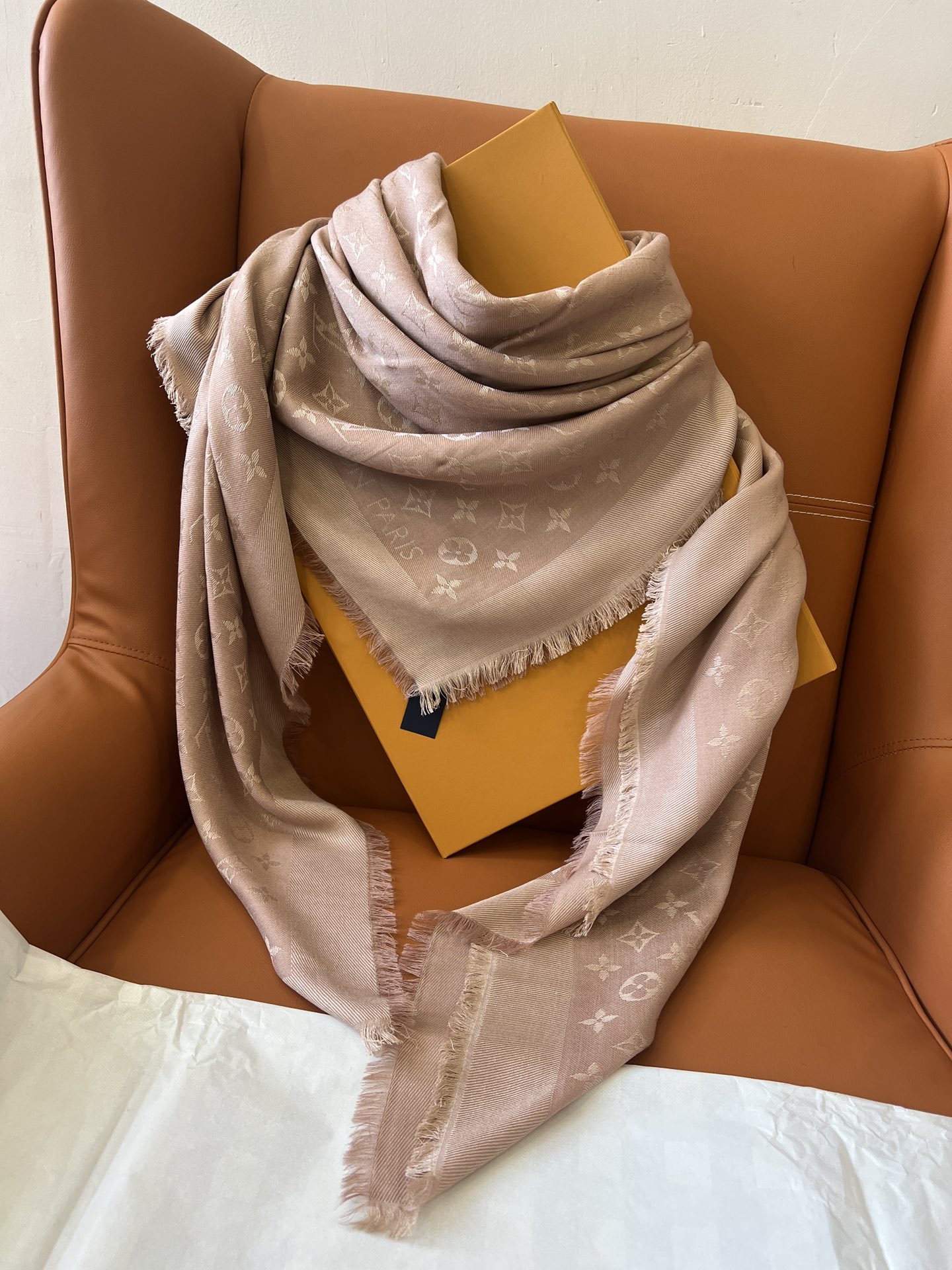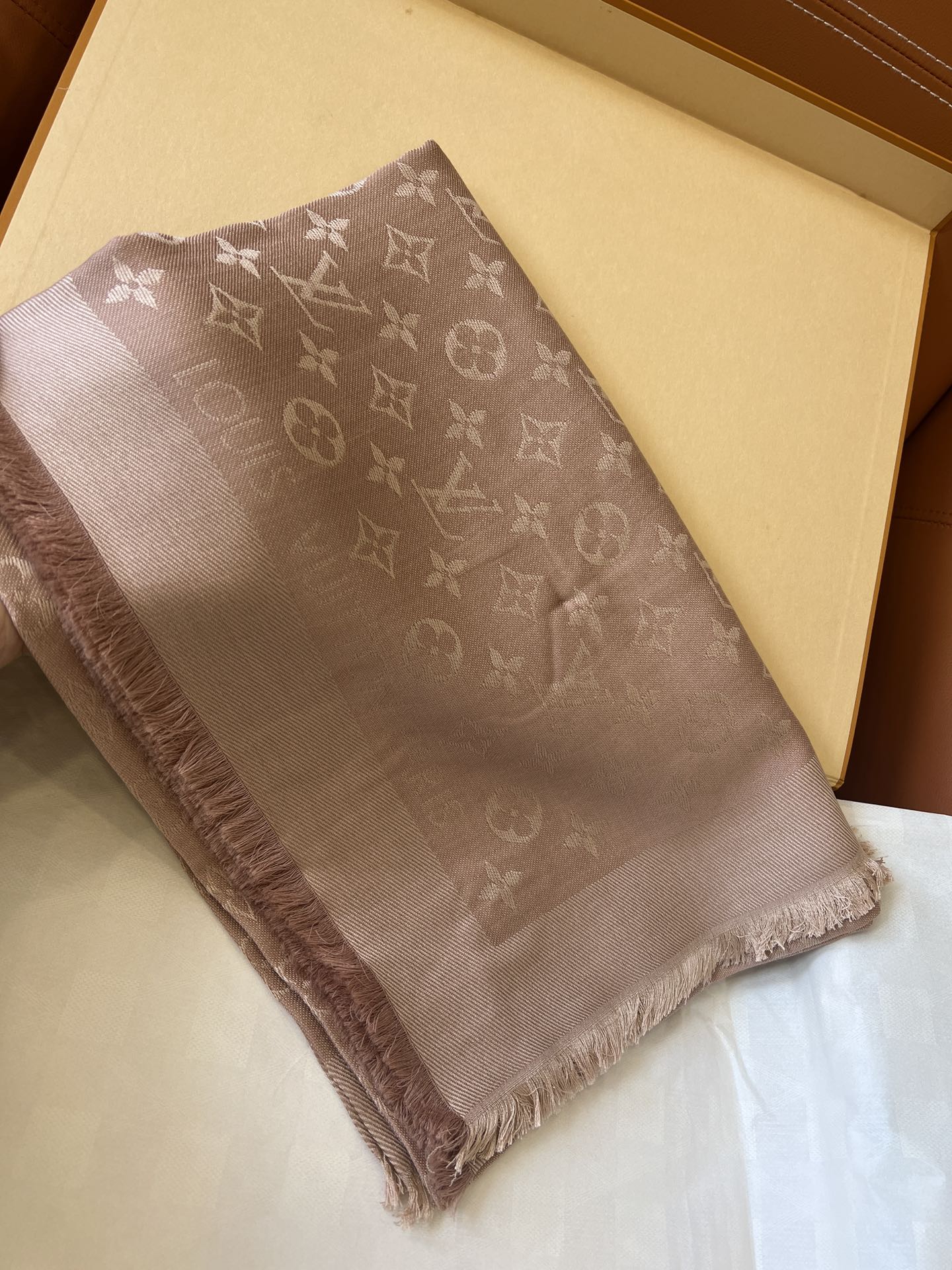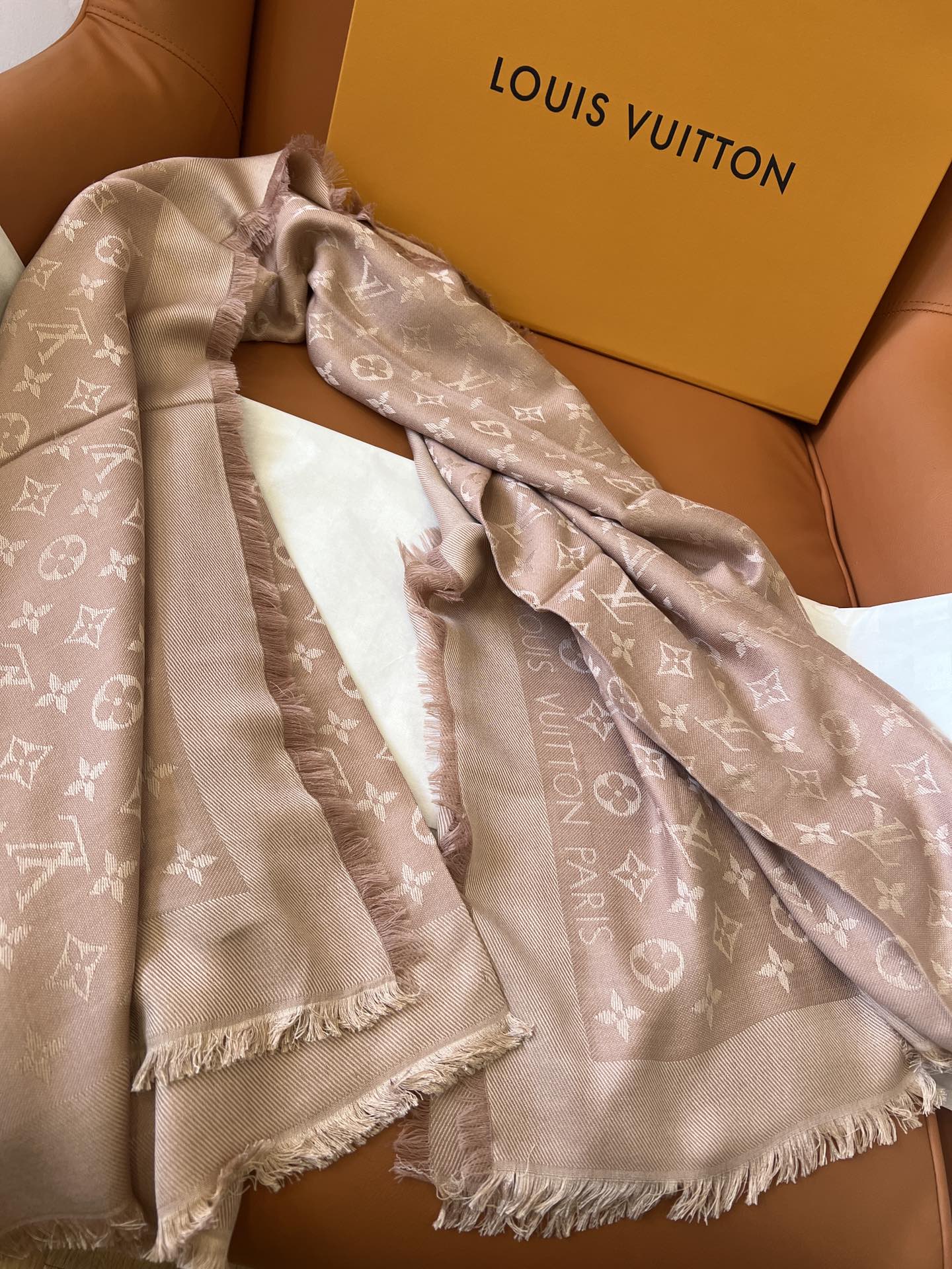 【裸粉色M76875]驴牌#只用三秒就可以决定买的经典不朽款~百搭 好看 秋季最最合适的单品_60%桑蚕丝40%羊毛很柔软一点也不会扎肉~142.5x142.5cm大尺寸无论披肩还是围脖都非常合适
