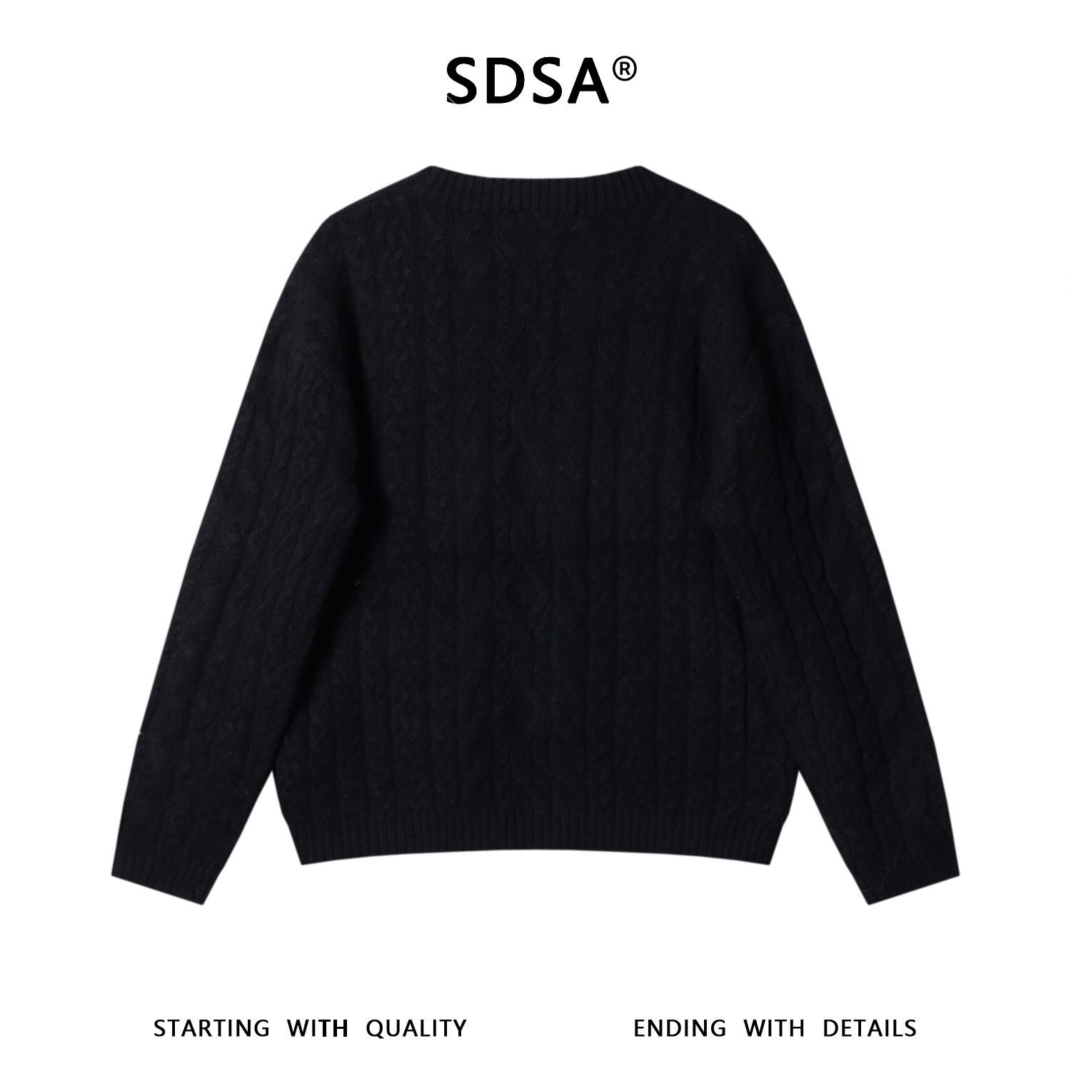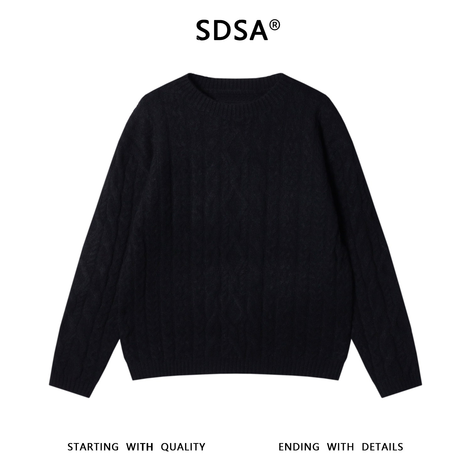 2375SDSA男士秋冬新款痞帅男装时尚纯色纽花圆领针织衫百搭休闲毛衣
