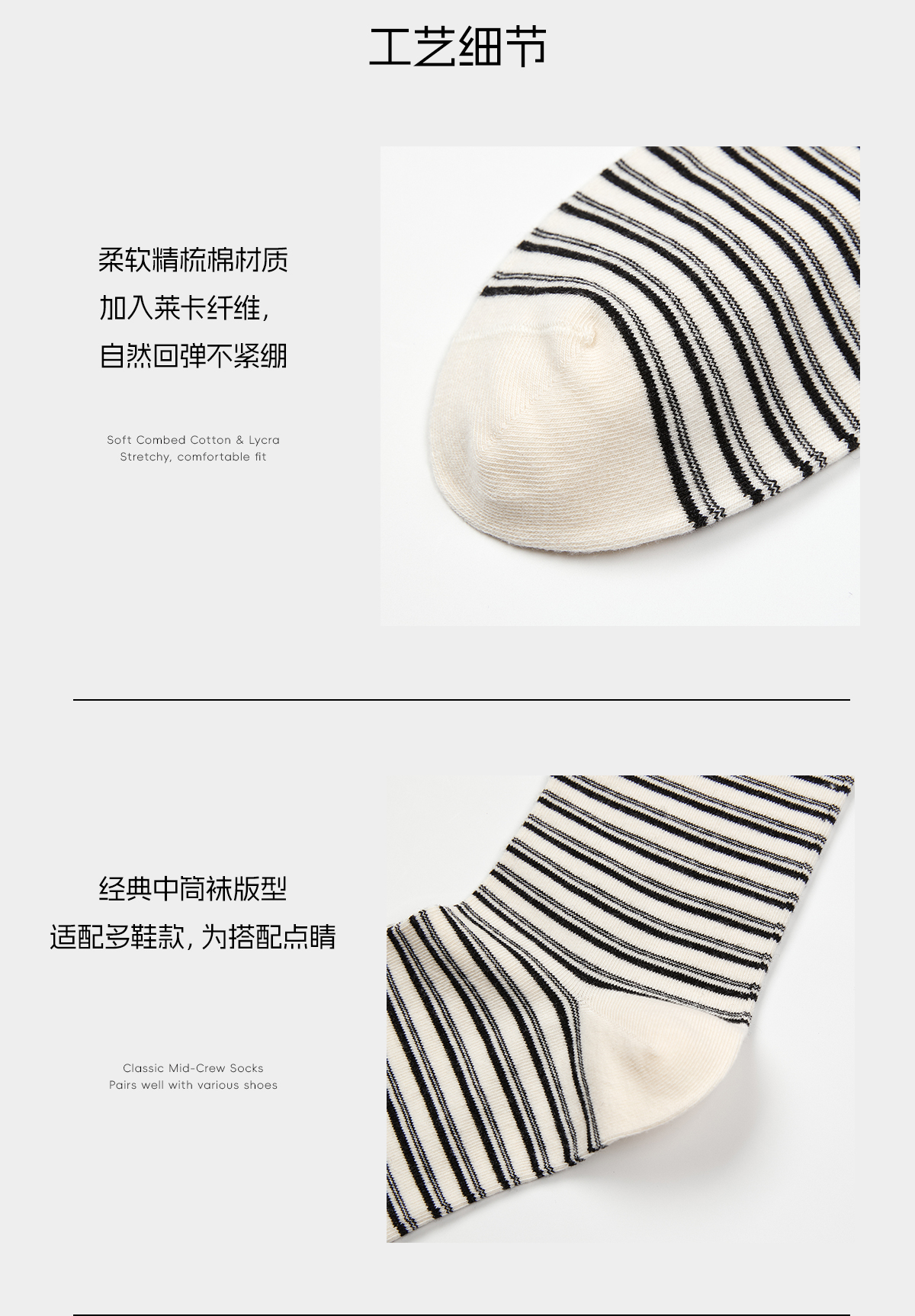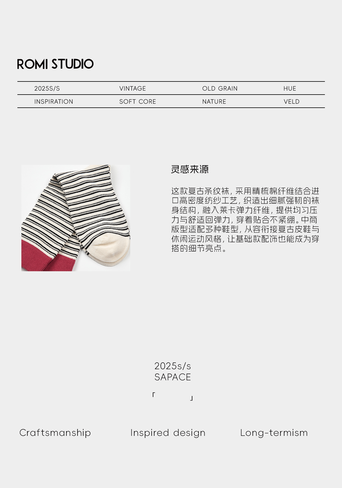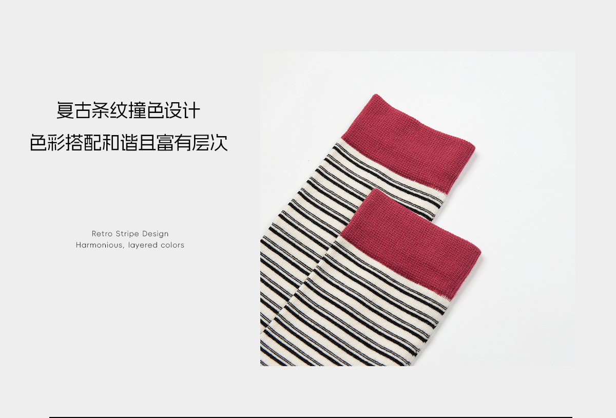 ROMI STUDIO“复古百搭”精梳棉柔韧撞色高弹袜口中筒袜 RWCWP36663