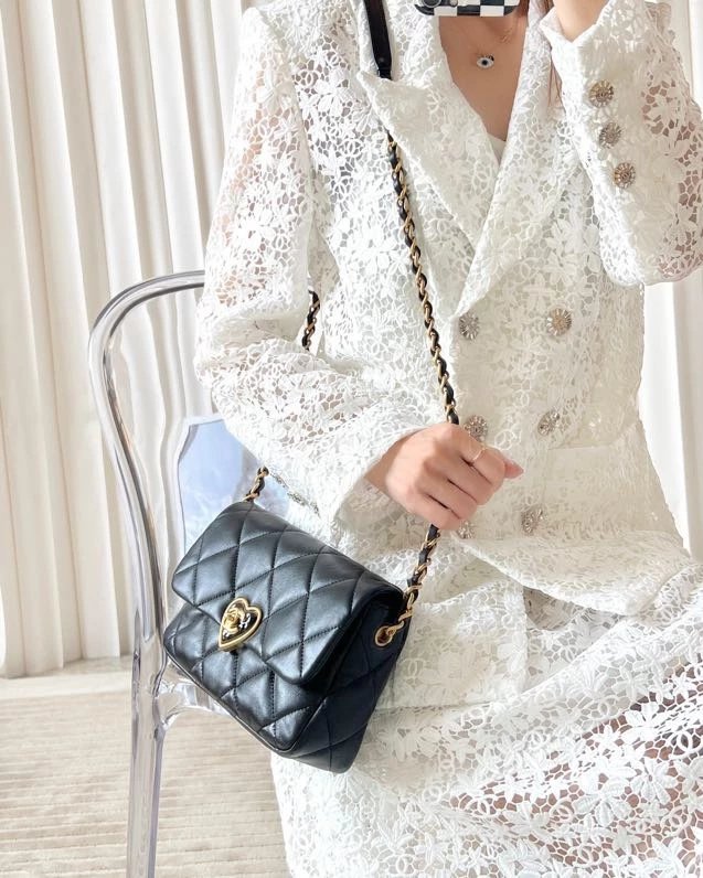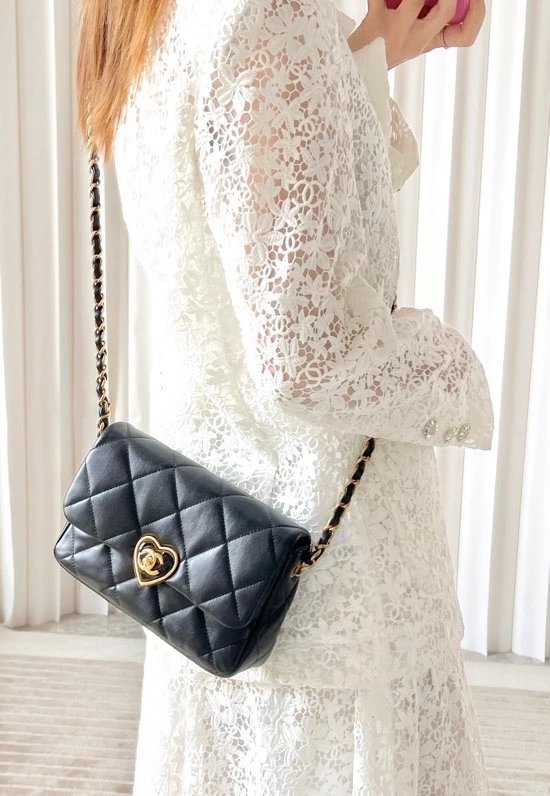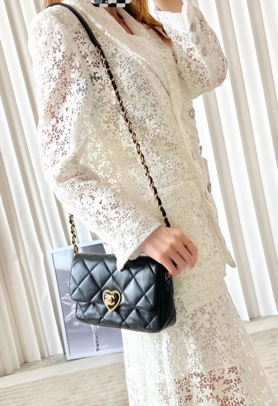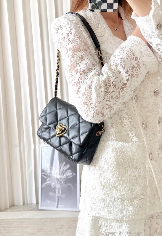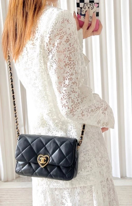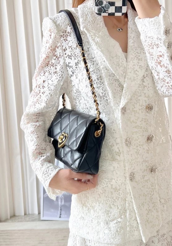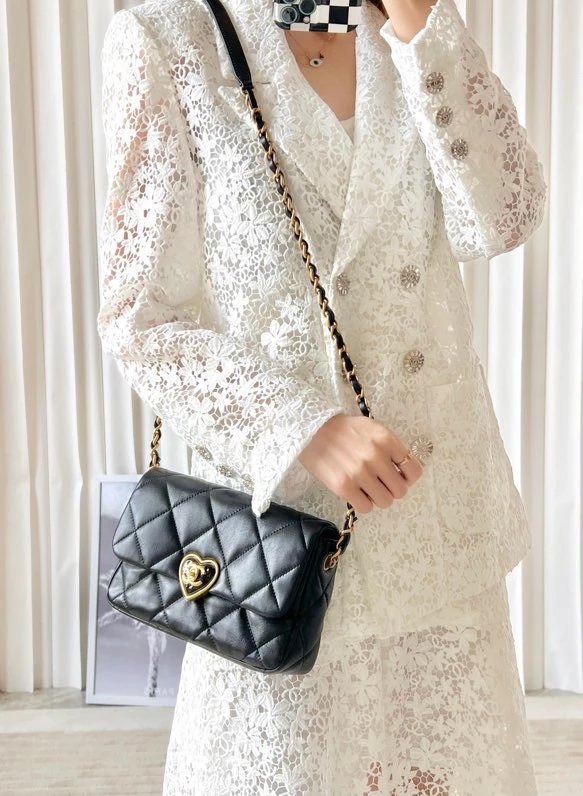 全新到货 春夏系列爱心珐琅扣大 黑色专柜售价购入开发〰 23爱心珐琅扣大口盖包# 实物手感实在太赞,软软糯糯好舒适~细腻小绵羊搭配复古金/珐琅锁扣很有的感觉,没有一丝犹豫带走