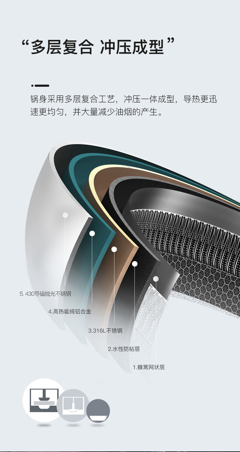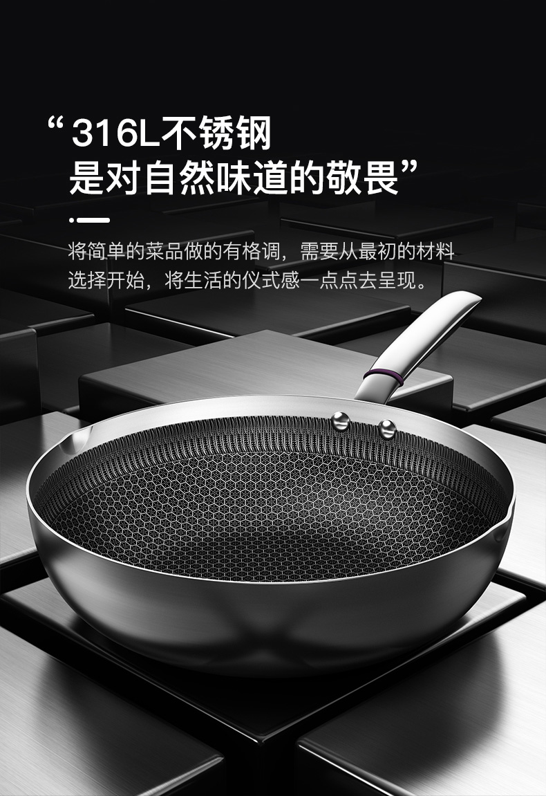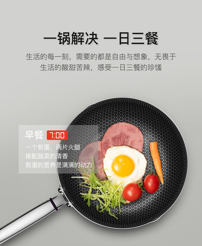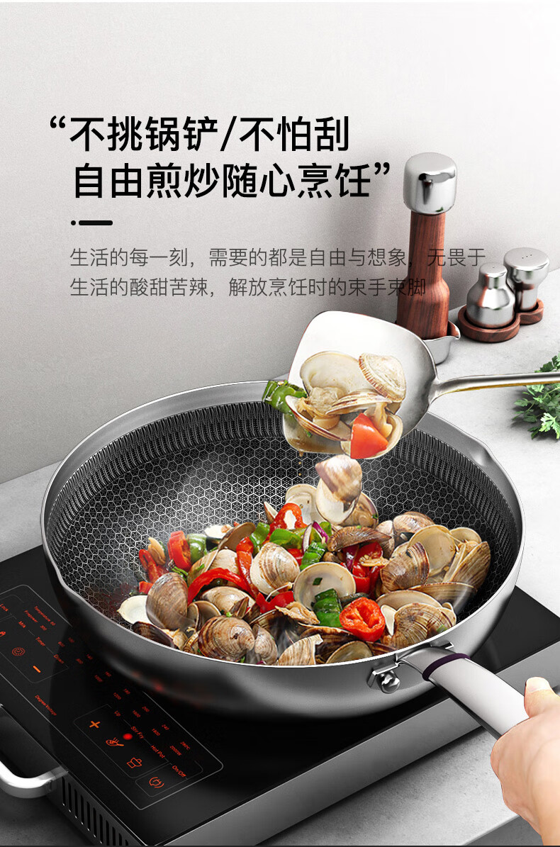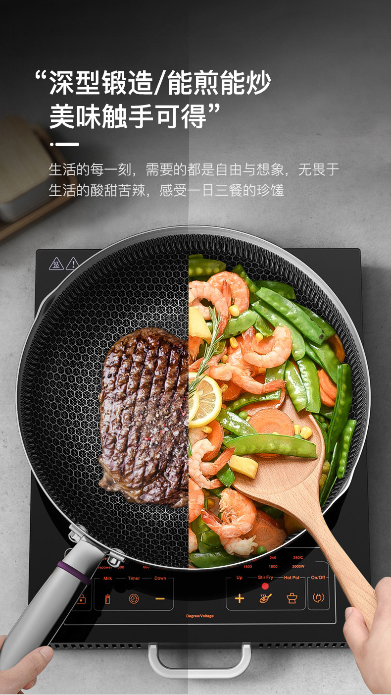 康巴赫316L不锈钢煎炒锅不粘锅30cm家用煤气灶电磁炉通用 JCG30D1