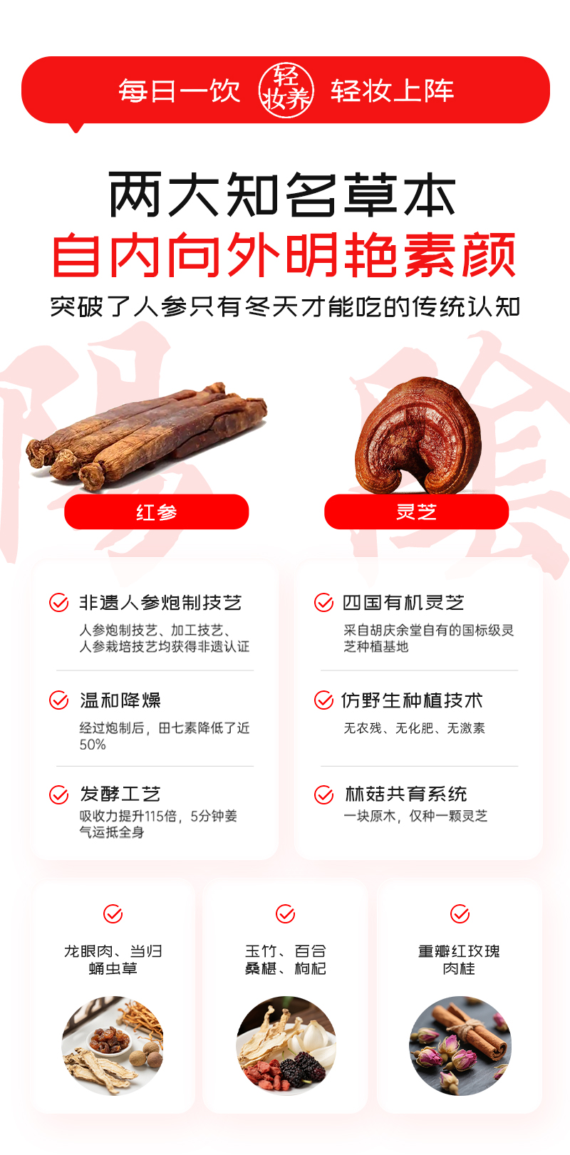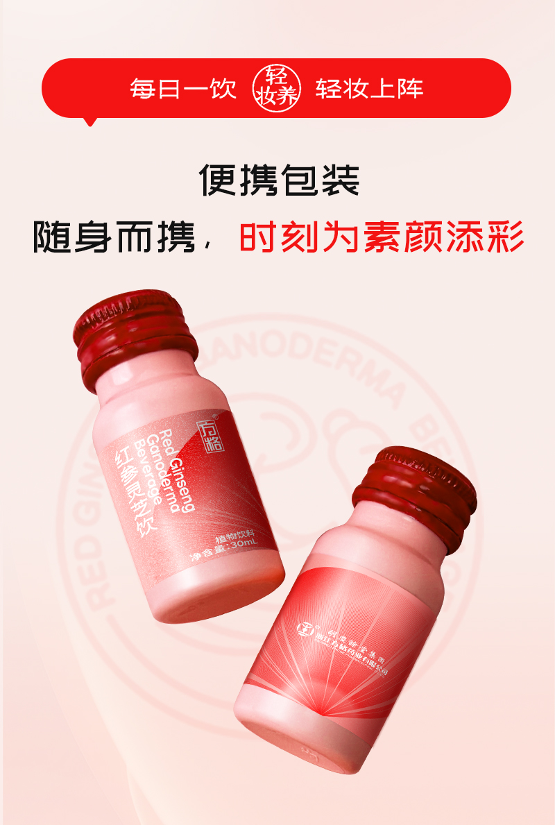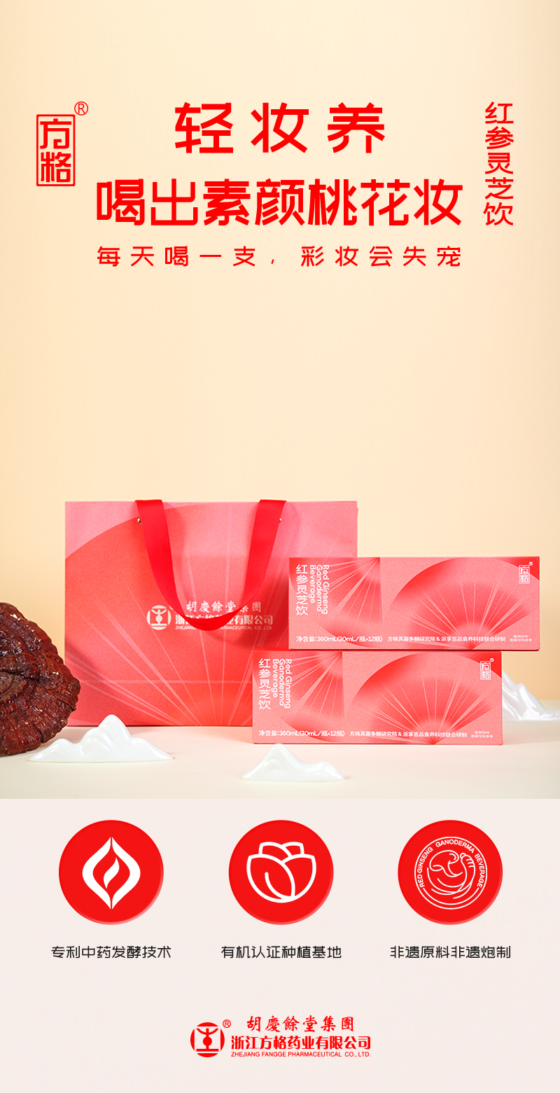 胡庆余堂红参灵芝饮红参饮女士口服液30ml/瓶*12瓶
