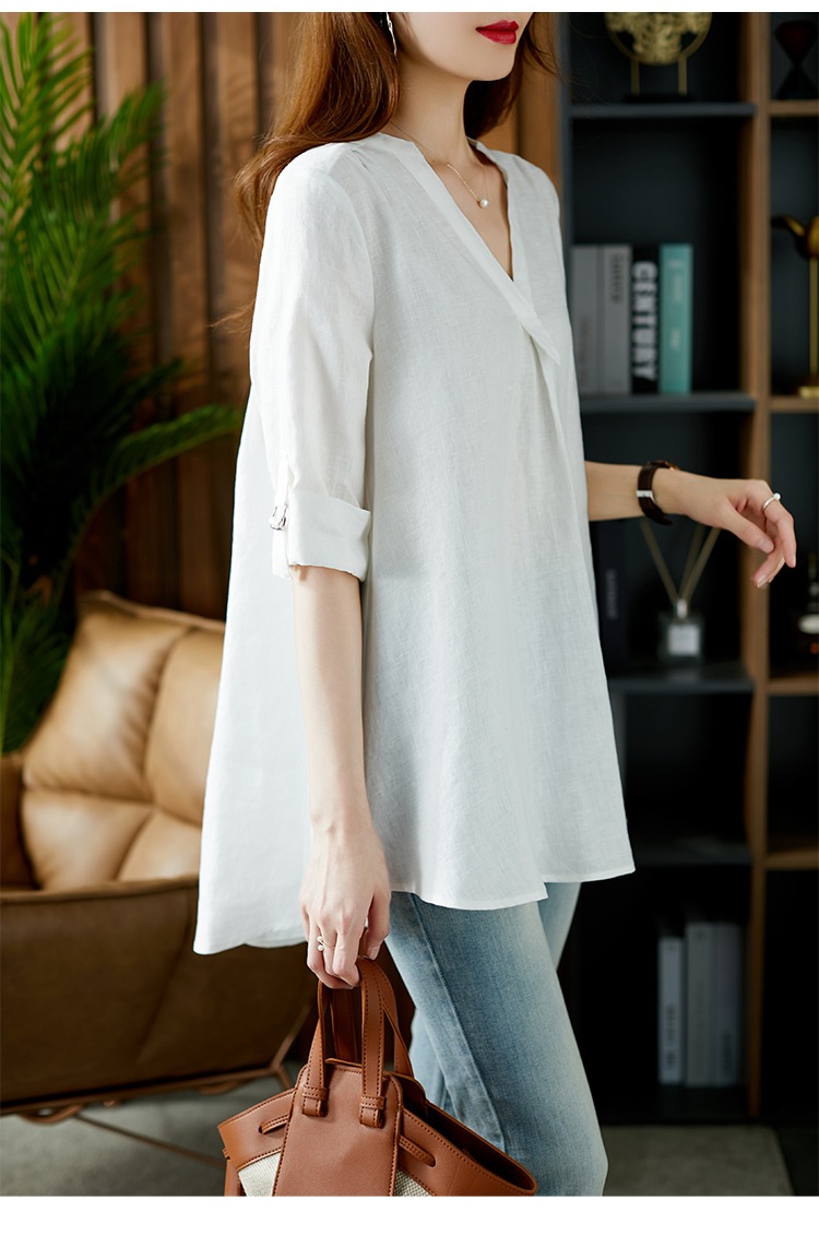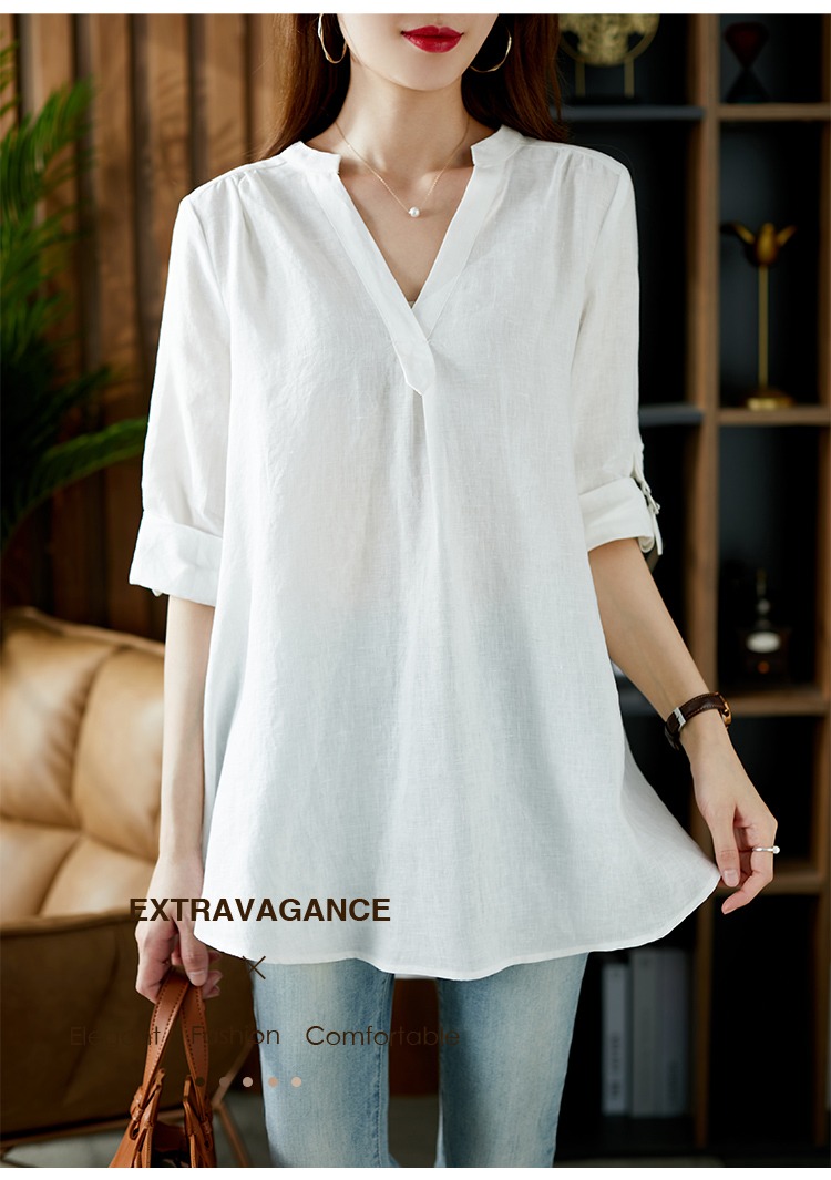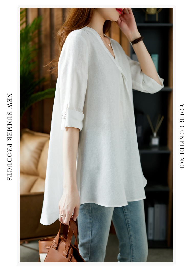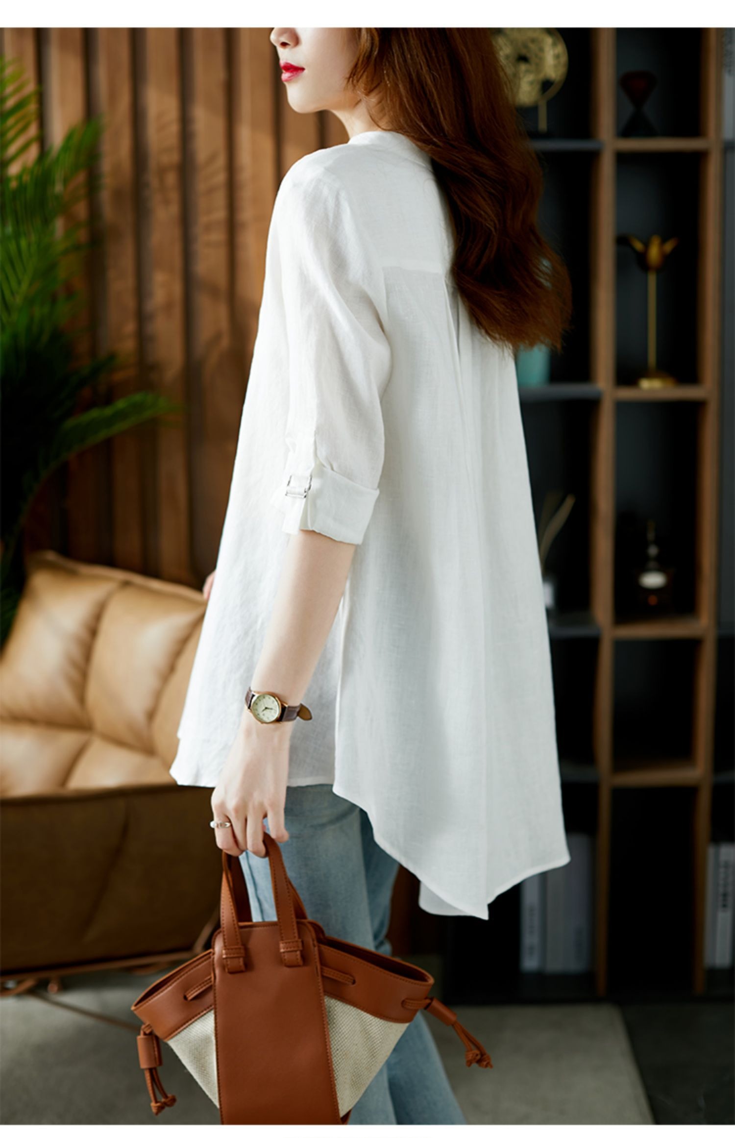 【现货7天】气质亚麻衬衫女2023夏季新款韩版设计感小众宽松休闲小衫上衣