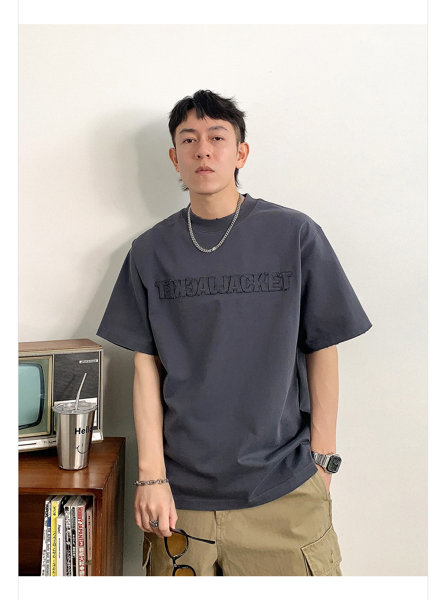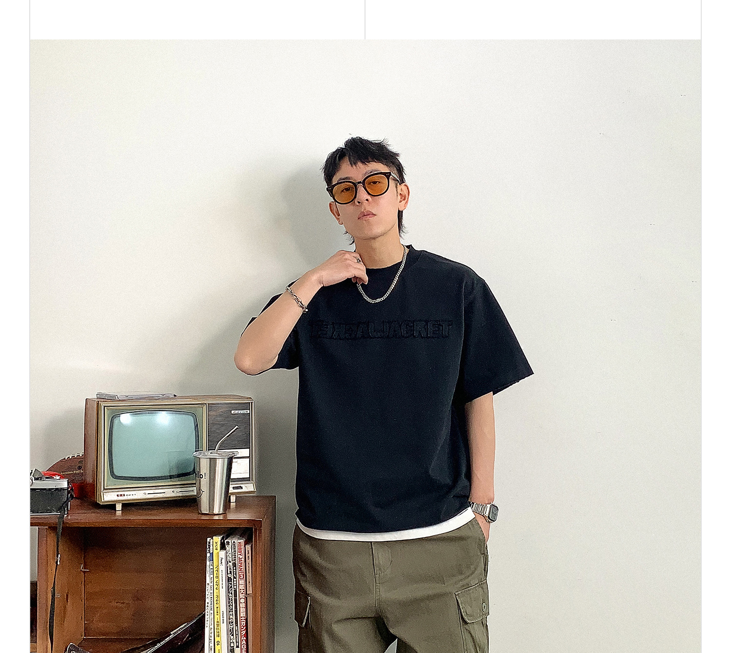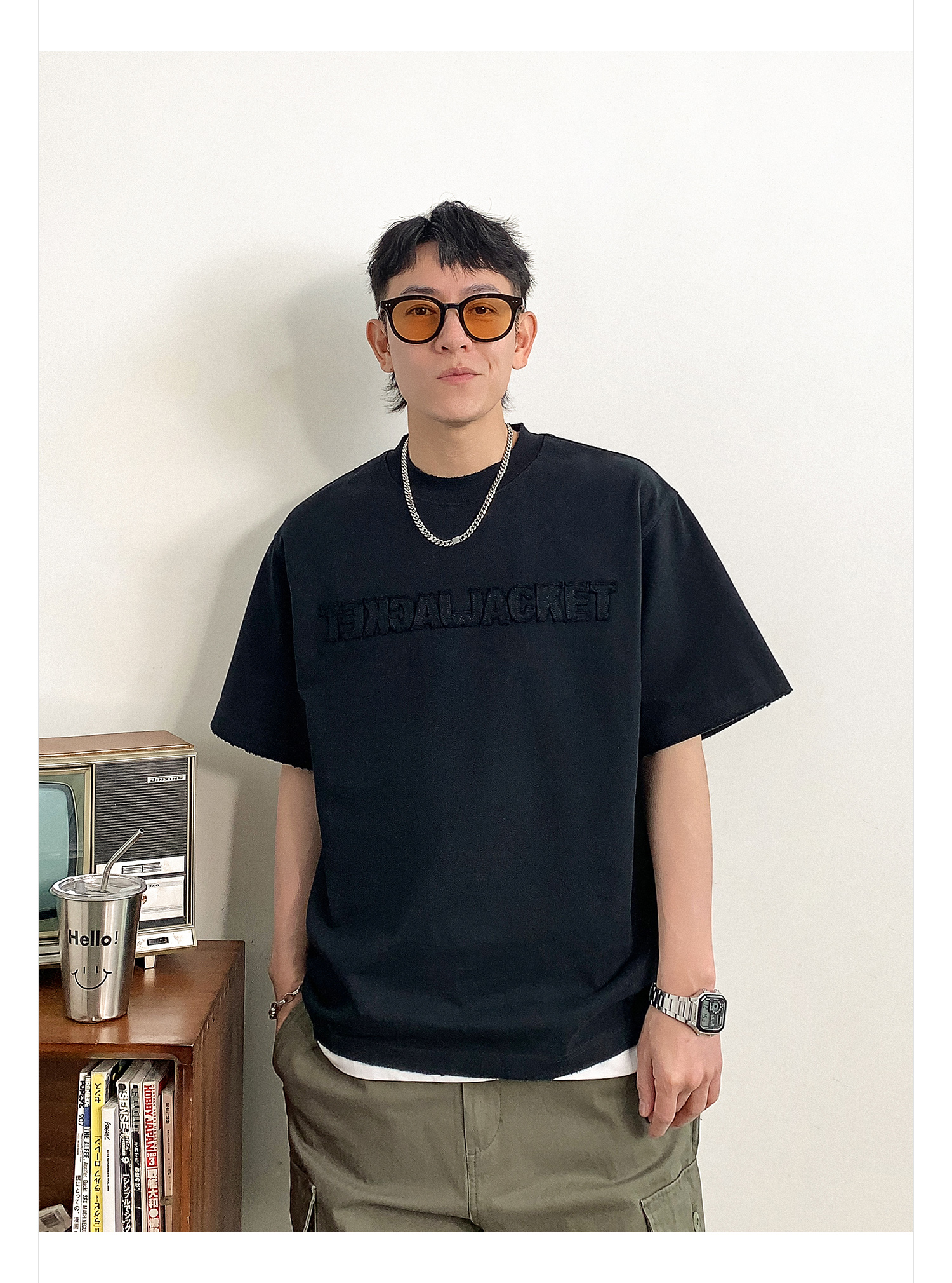 徐太浪时尚贴布字母短袖T恤男春季新款潮牌男装内搭打底半袖上衣