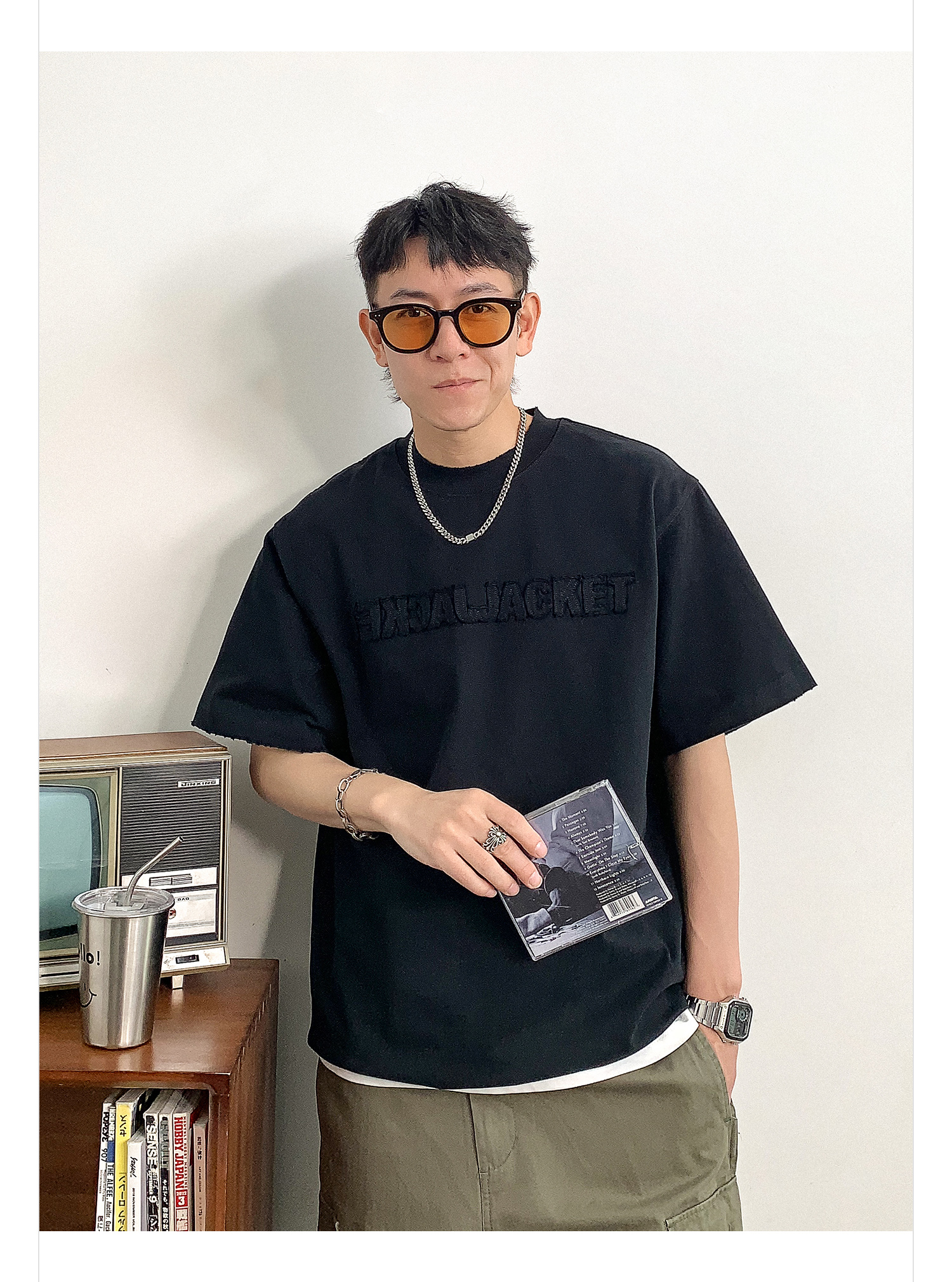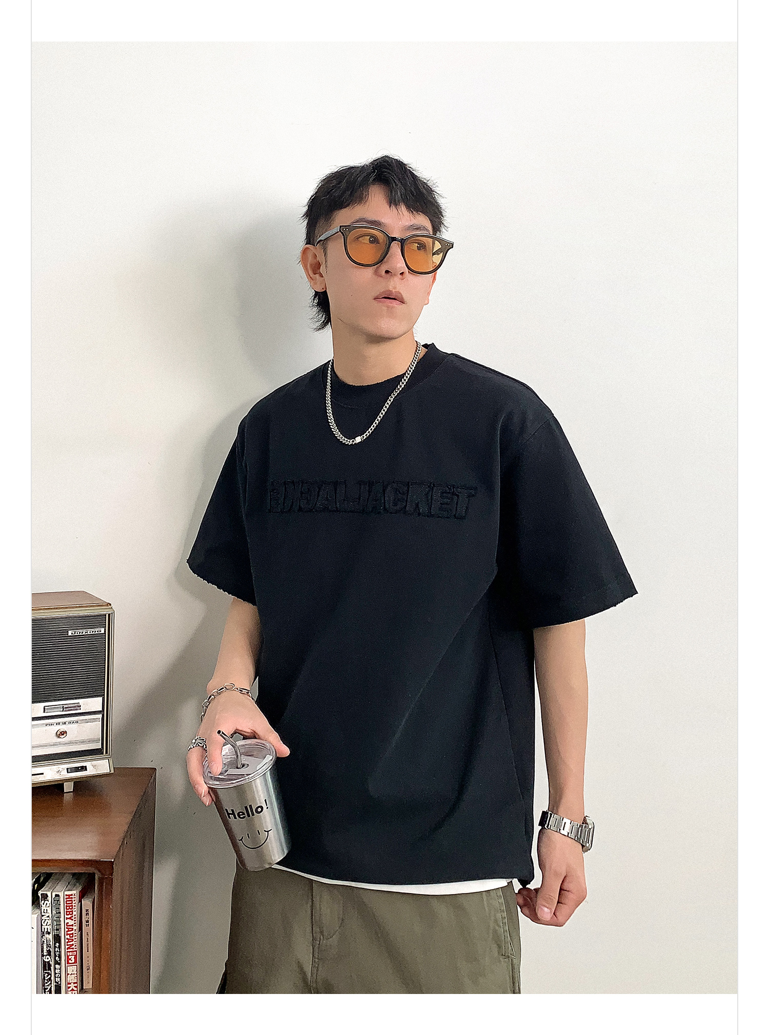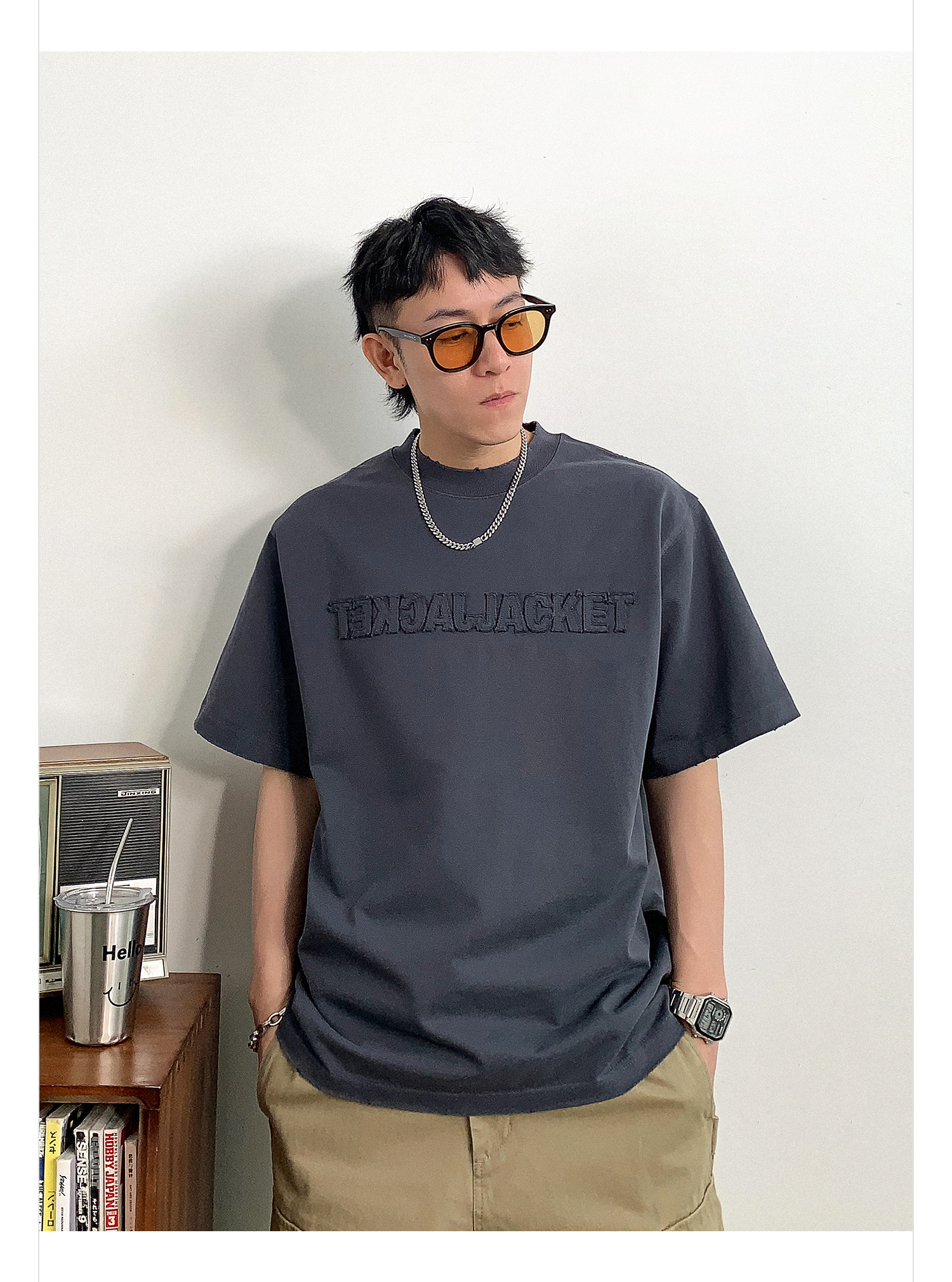 徐太浪时尚贴布字母短袖T恤男春季新款潮牌男装内搭打底半袖上衣