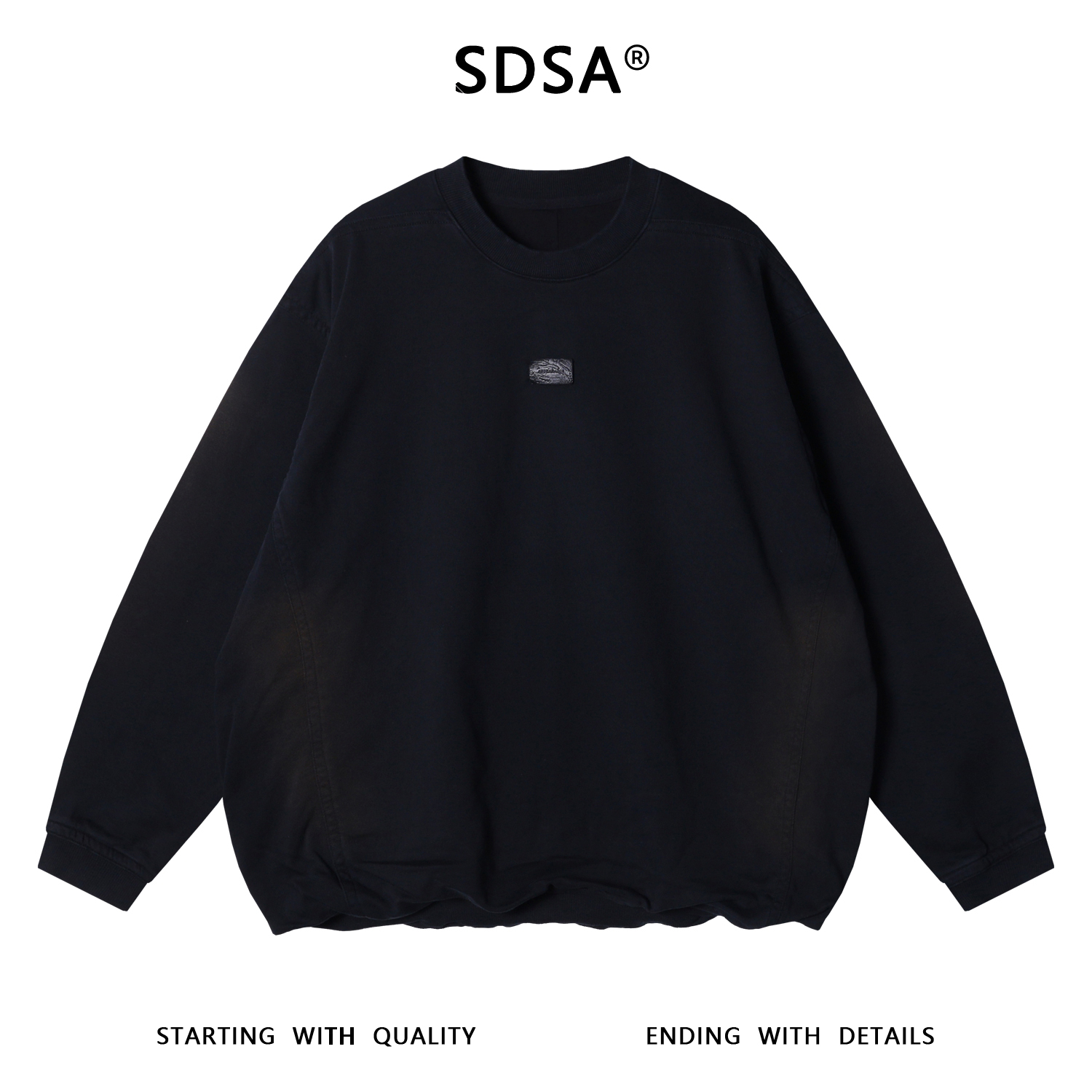 SDSA男士秋冬新款痞帅男装压线扎染做旧圆领卫衣胸前标设计百搭潮