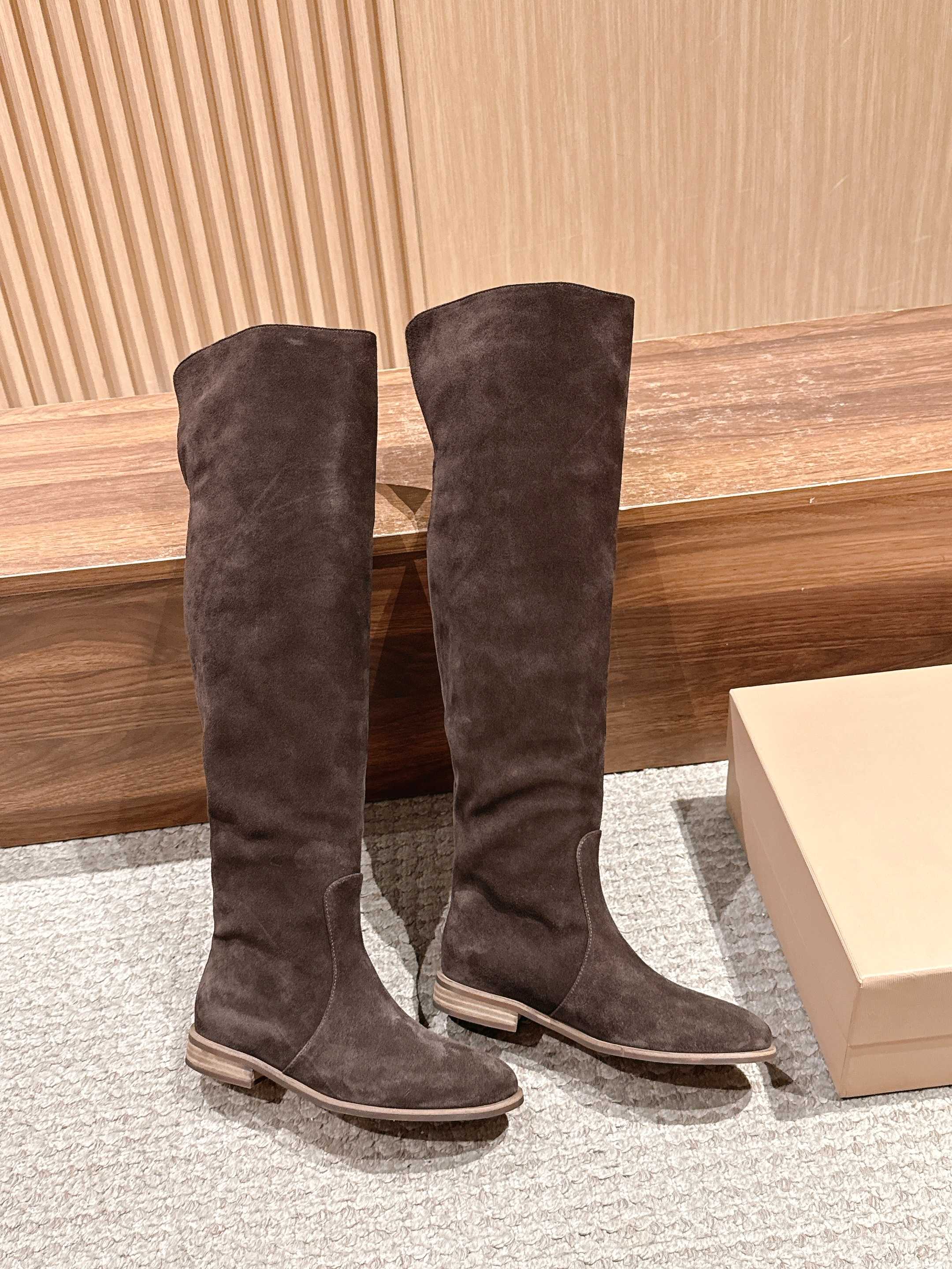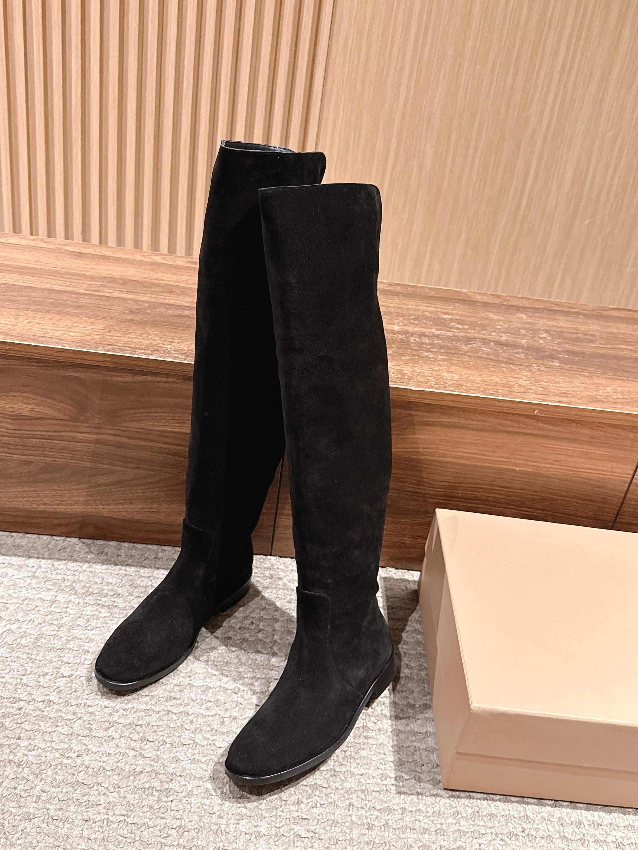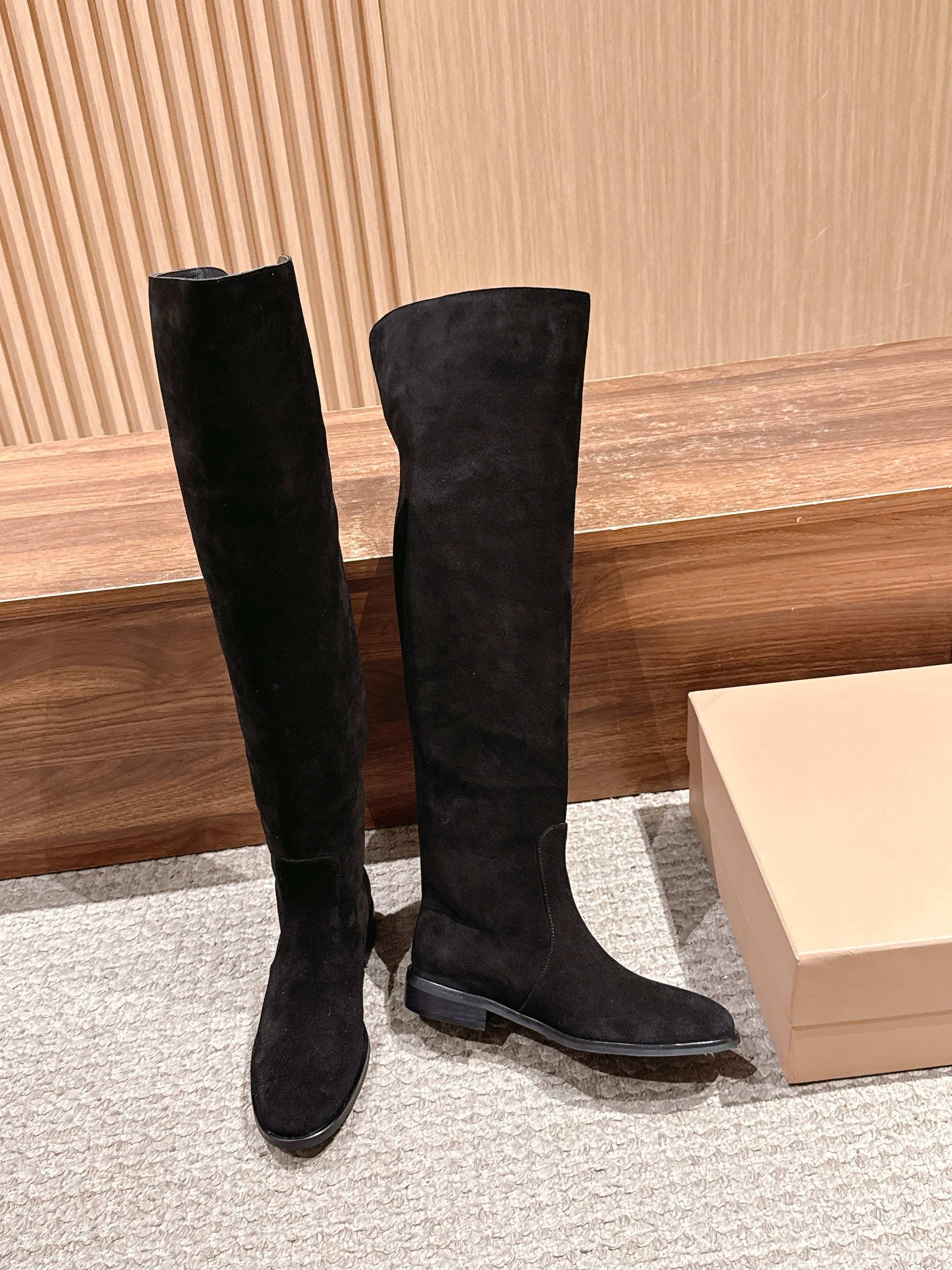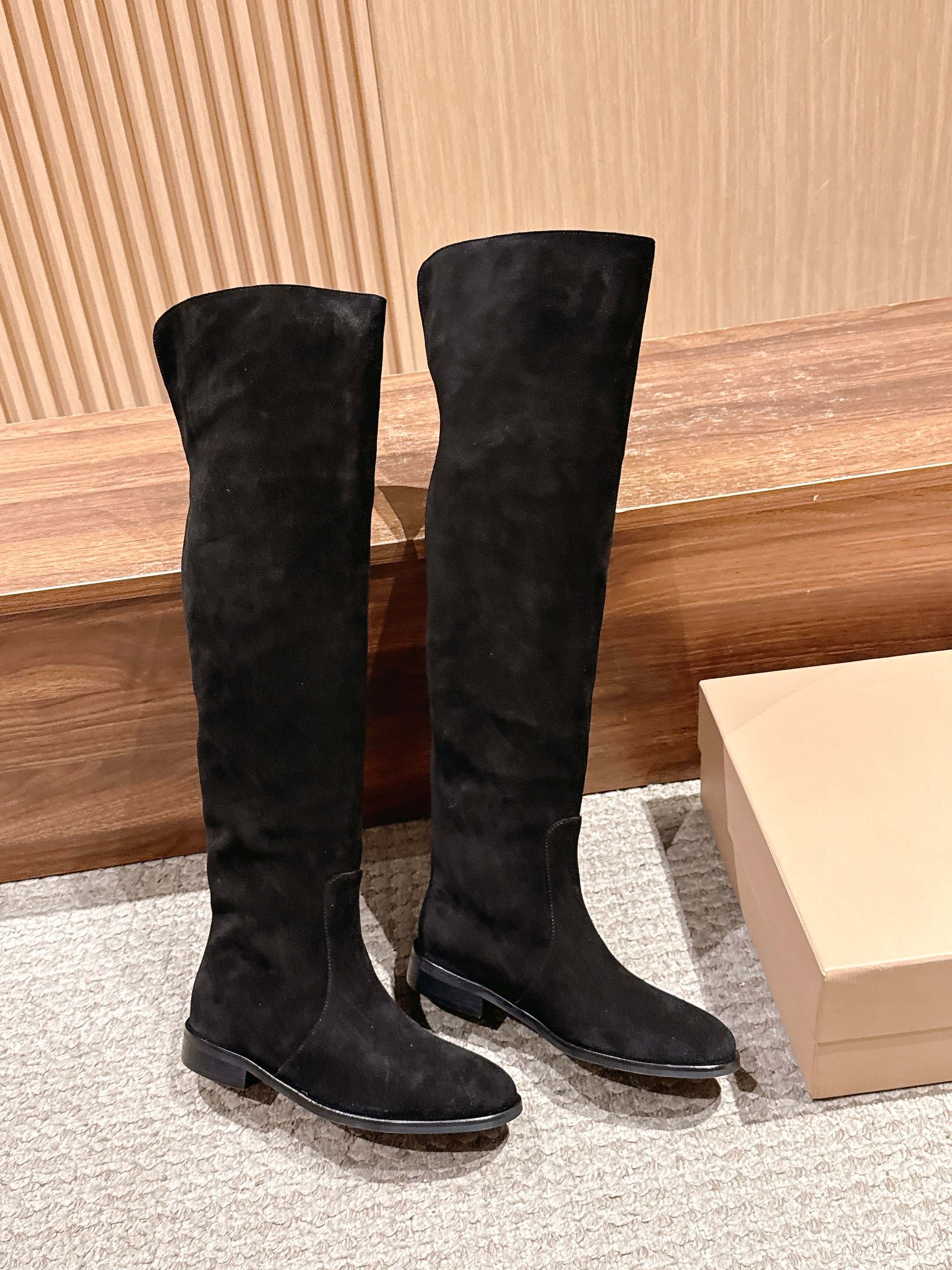 Gianvito Rossi 复古麂皮过膝长筒靴 采用绒面革材质,质感细腻,呈现出高级的哑光效果,且不同颜色的绒面革在视觉和触觉上都极具质感。高跟长靴,靴筒较高,能够很好地修饰腿部线条;鞋跟为粗跟设计,兼具稳定性与时尚感,提升气场的同时也保证了行走的舒适度。 鞋头为方头设计,简约大气,符合当下的时尚潮流,同时也能容纳不同脚型;整体设计简约利落,没有过多繁杂的装饰,凸显出经典与优雅的风格,易于搭配各种服饰,无论是裙装还是裤装都能展现出不俗的时尚品味。 鞋面:牛反绒 内里:羊皮 大底:真皮大底 增高:3cm Size:35-40码(40订做不退换)