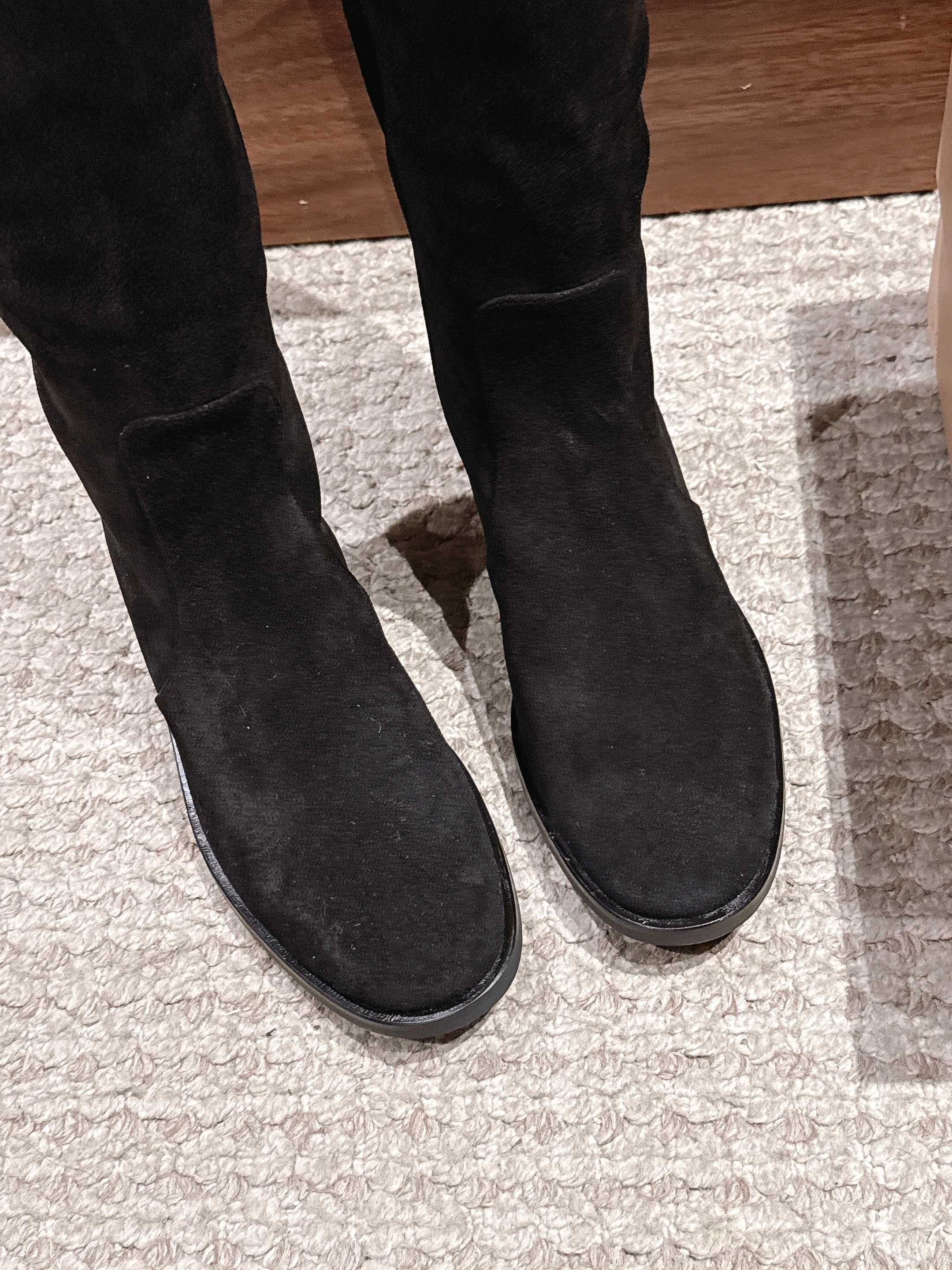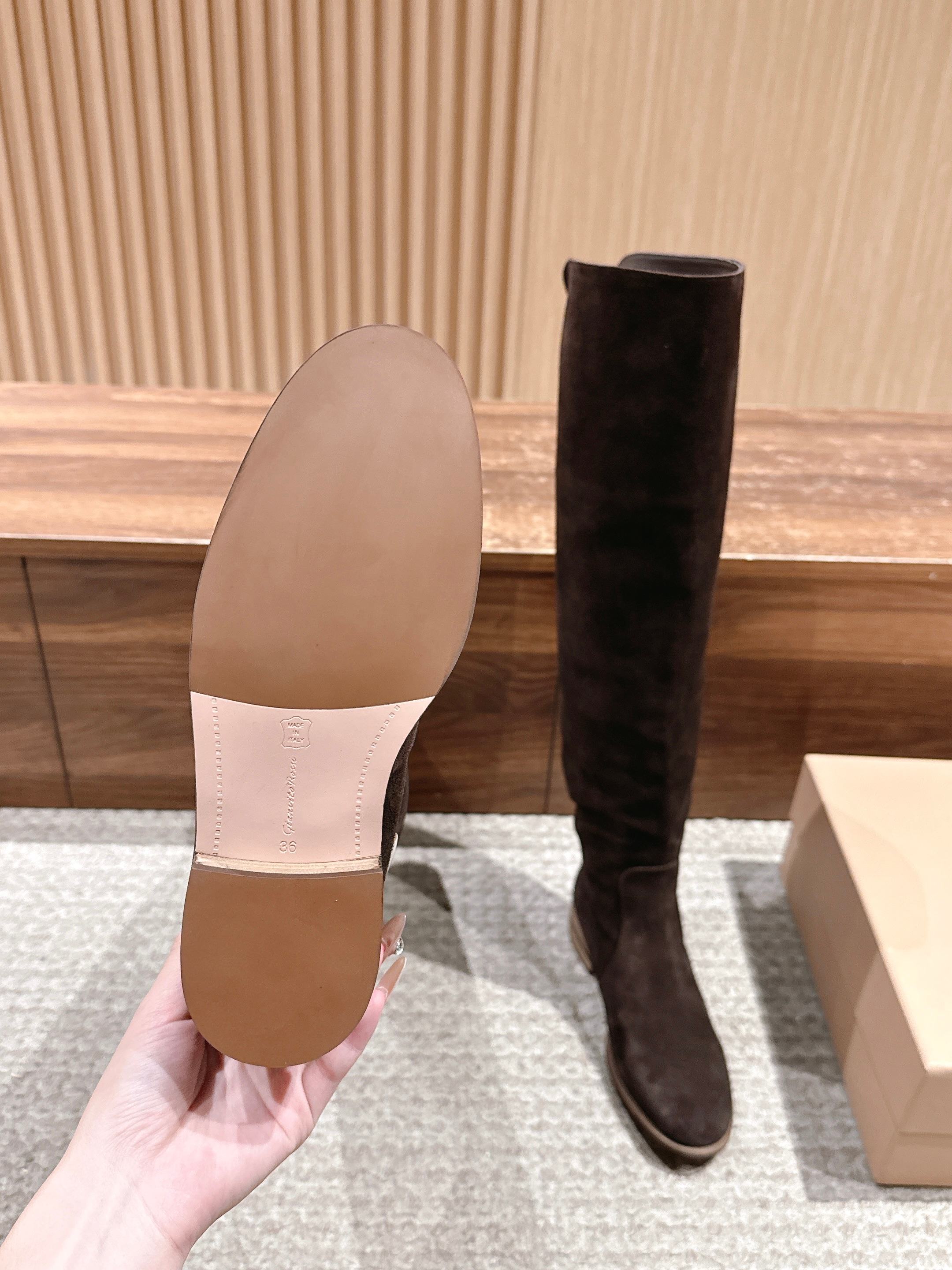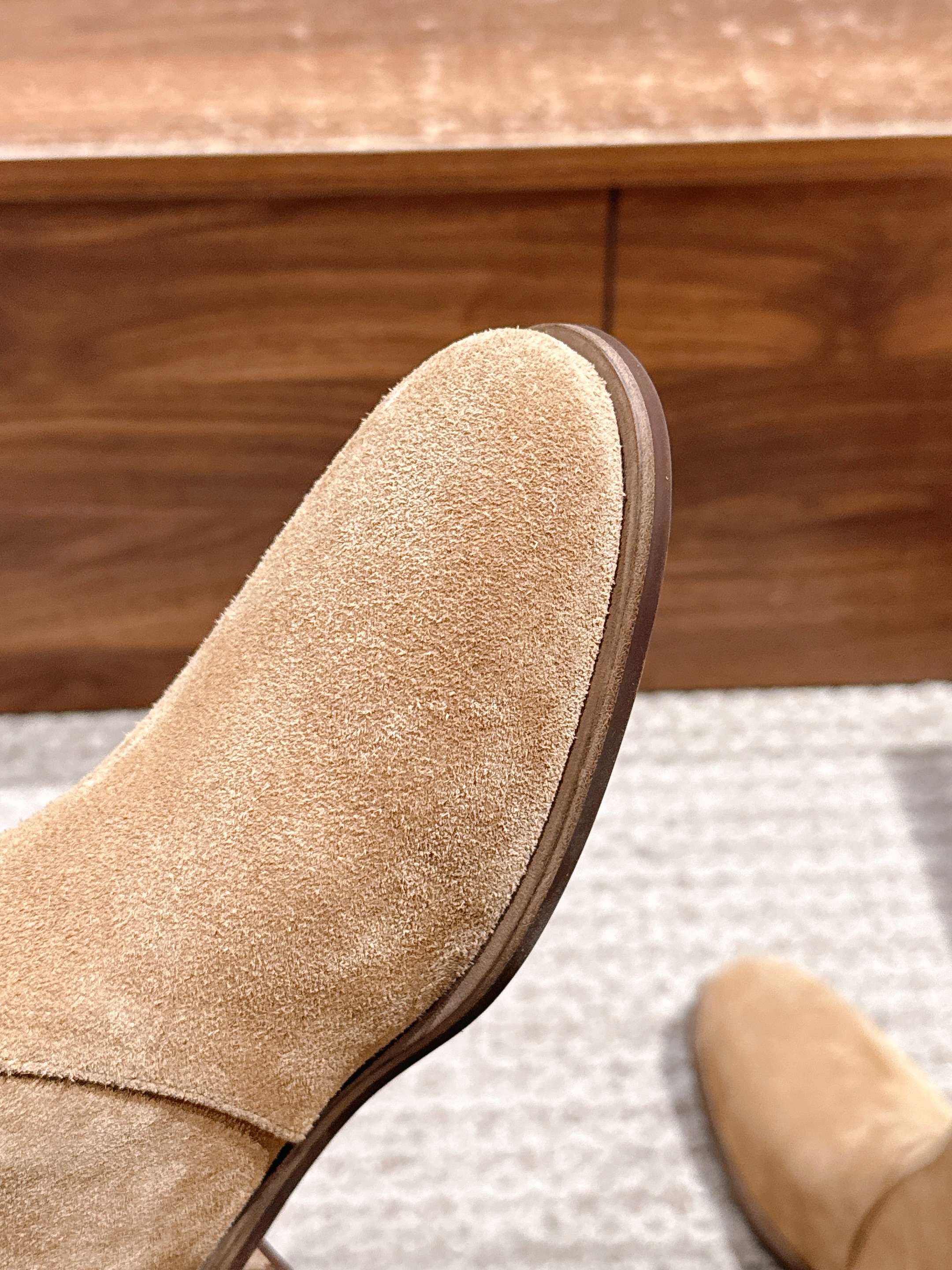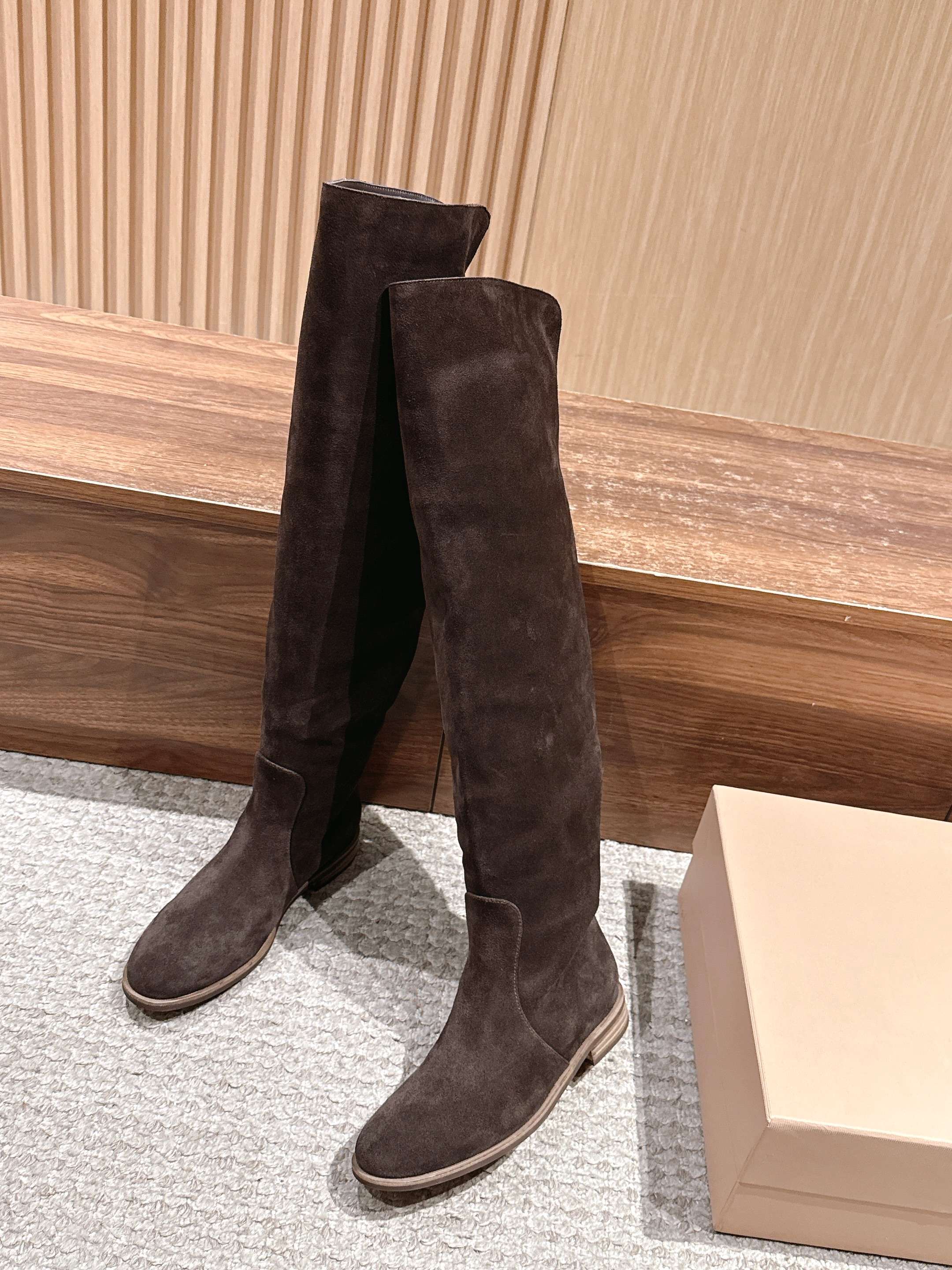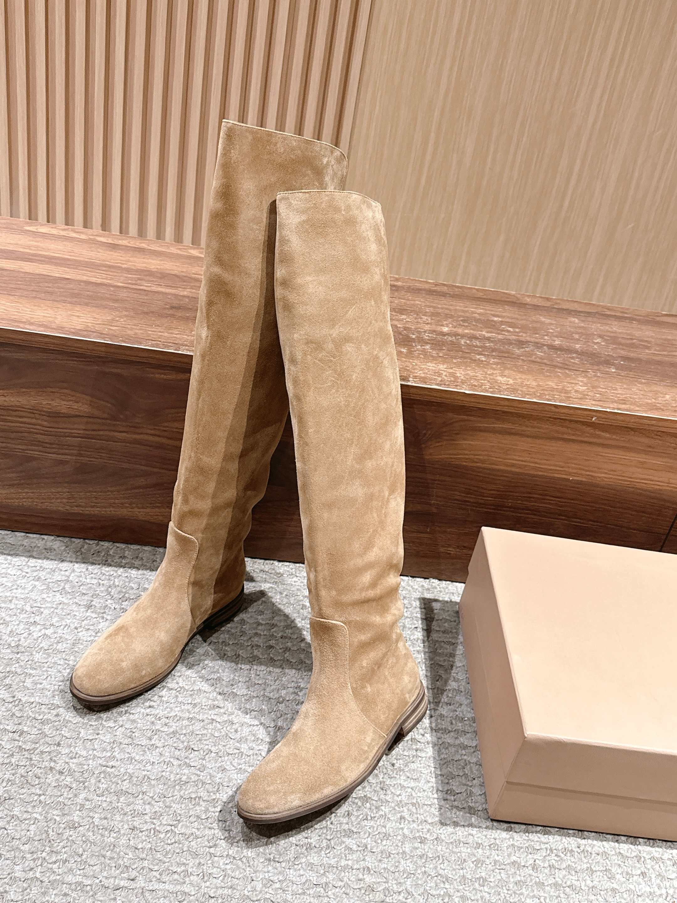 Gianvito Rossi 复古麂皮过膝长筒靴 采用绒面革材质,质感细腻,呈现出高级的哑光效果,且不同颜色的绒面革在视觉和触觉上都极具质感。高跟长靴,靴筒较高,能够很好地修饰腿部线条;鞋跟为粗跟设计,兼具稳定性与时尚感,提升气场的同时也保证了行走的舒适度。 鞋头为方头设计,简约大气,符合当下的时尚潮流,同时也能容纳不同脚型;整体设计简约利落,没有过多繁杂的装饰,凸显出经典与优雅的风格,易于搭配各种服饰,无论是裙装还是裤装都能展现出不俗的时尚品味。 鞋面:牛反绒 内里:羊皮 大底:真皮大底 增高:3cm Size:35-40码(40订做不退换)