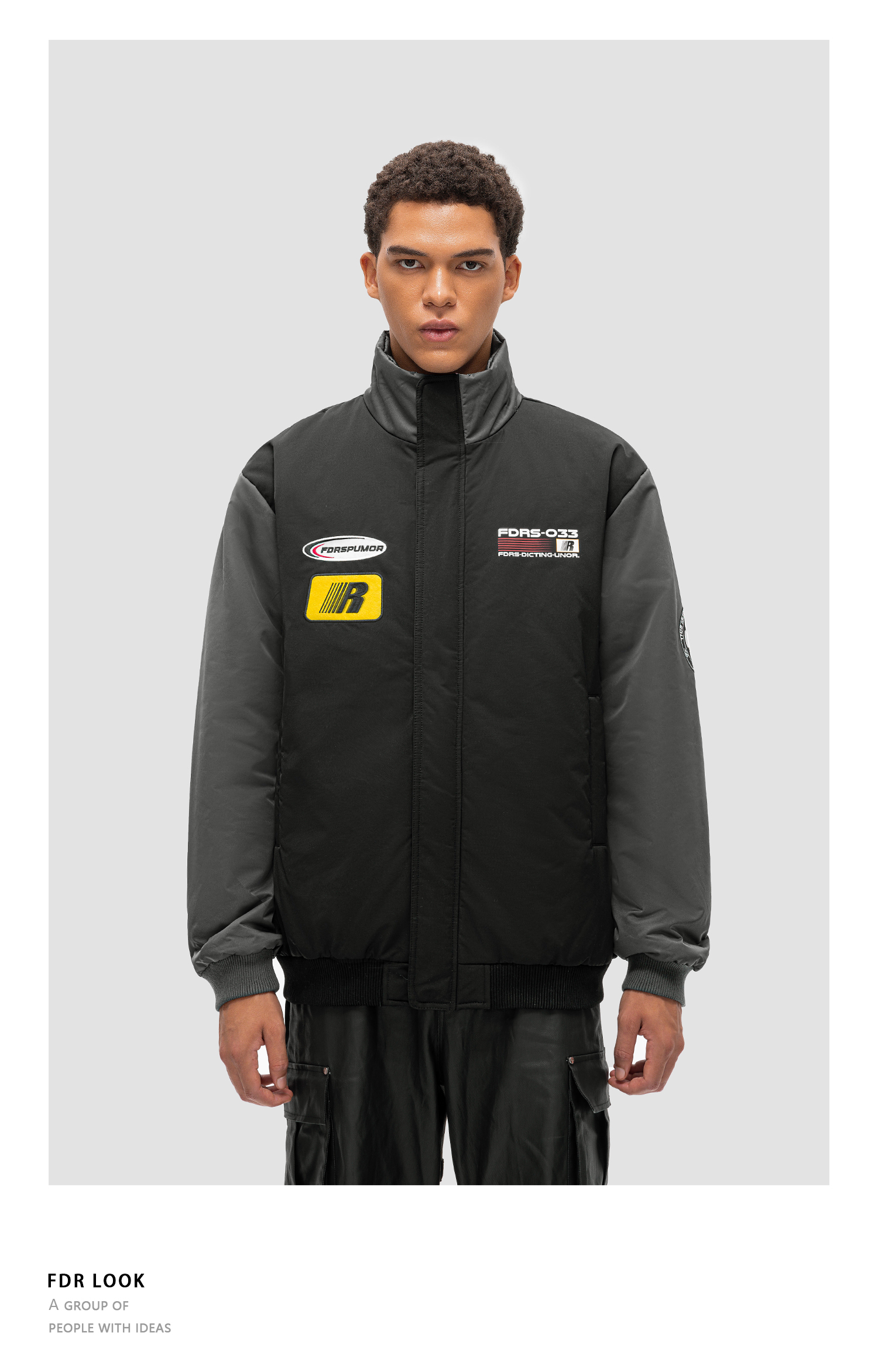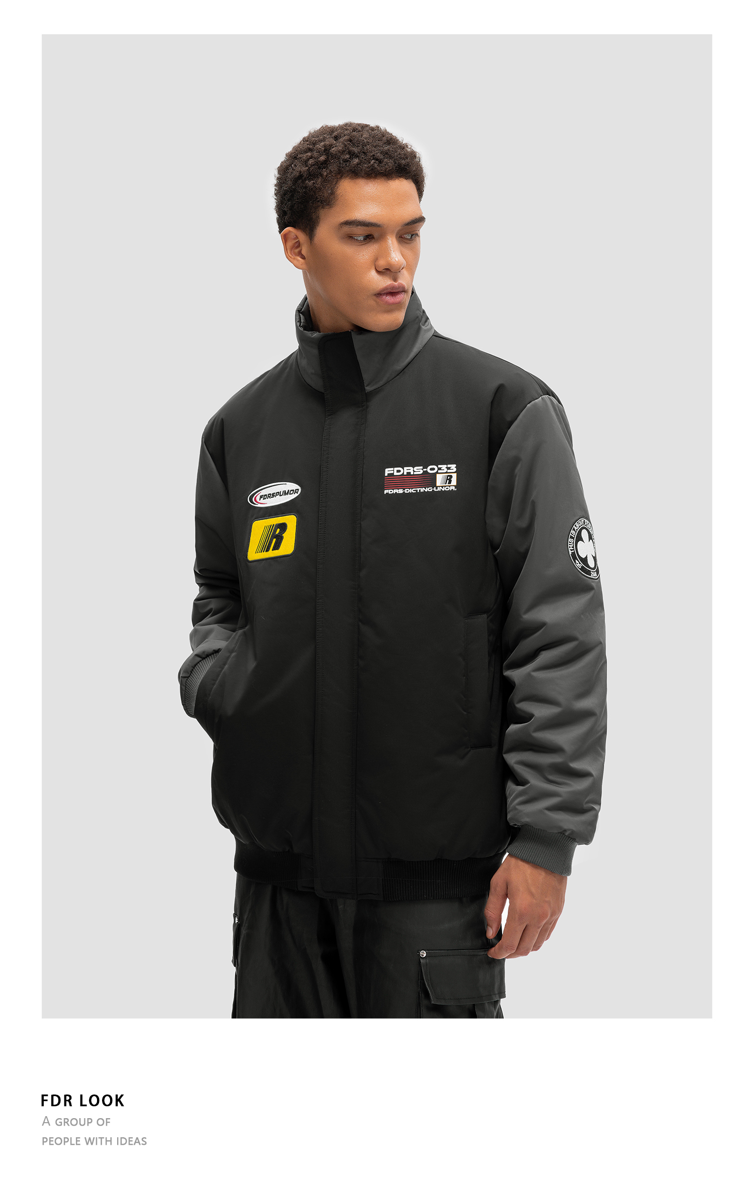 FDR 国潮美式章仔拼色立领棉衣棉服男女秋冬季加厚情侣面包服外套