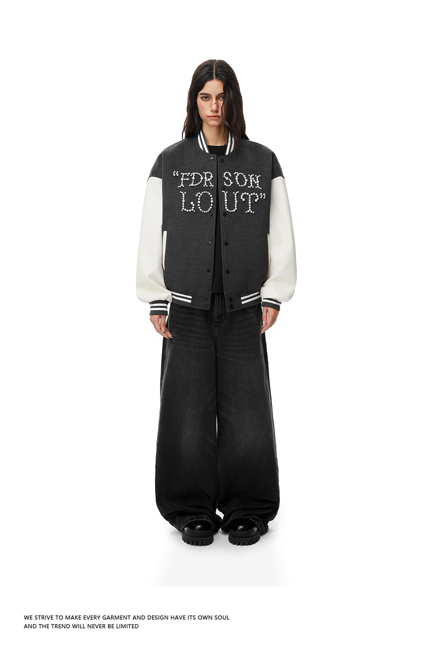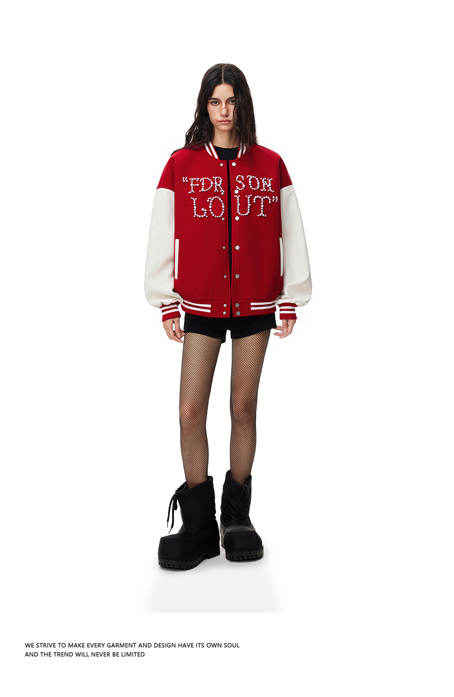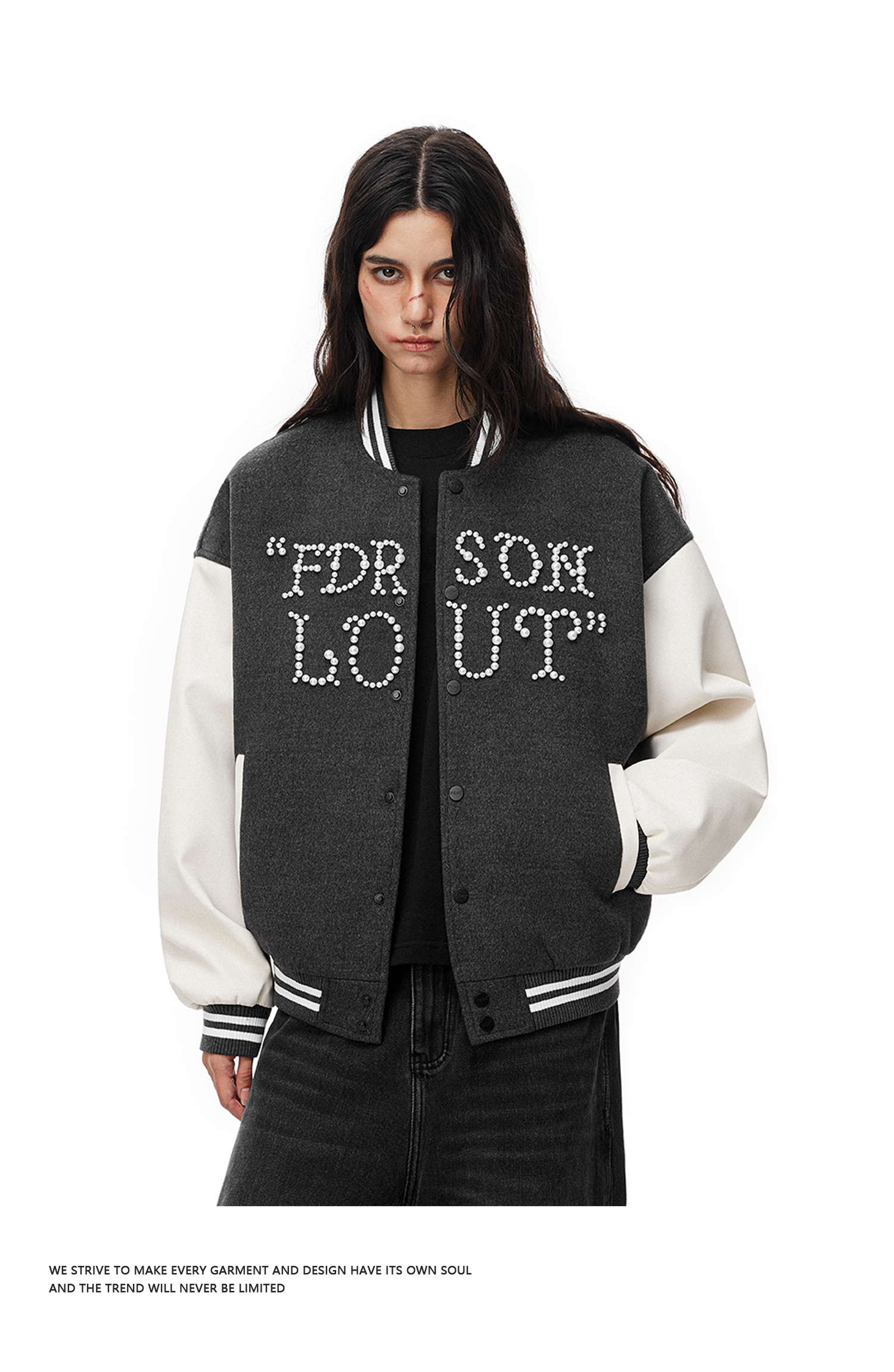 【限时7折】FDR官方店 美式珍珠夹棉棒球服外套男女秋冬季加厚情侣装宽松夹克