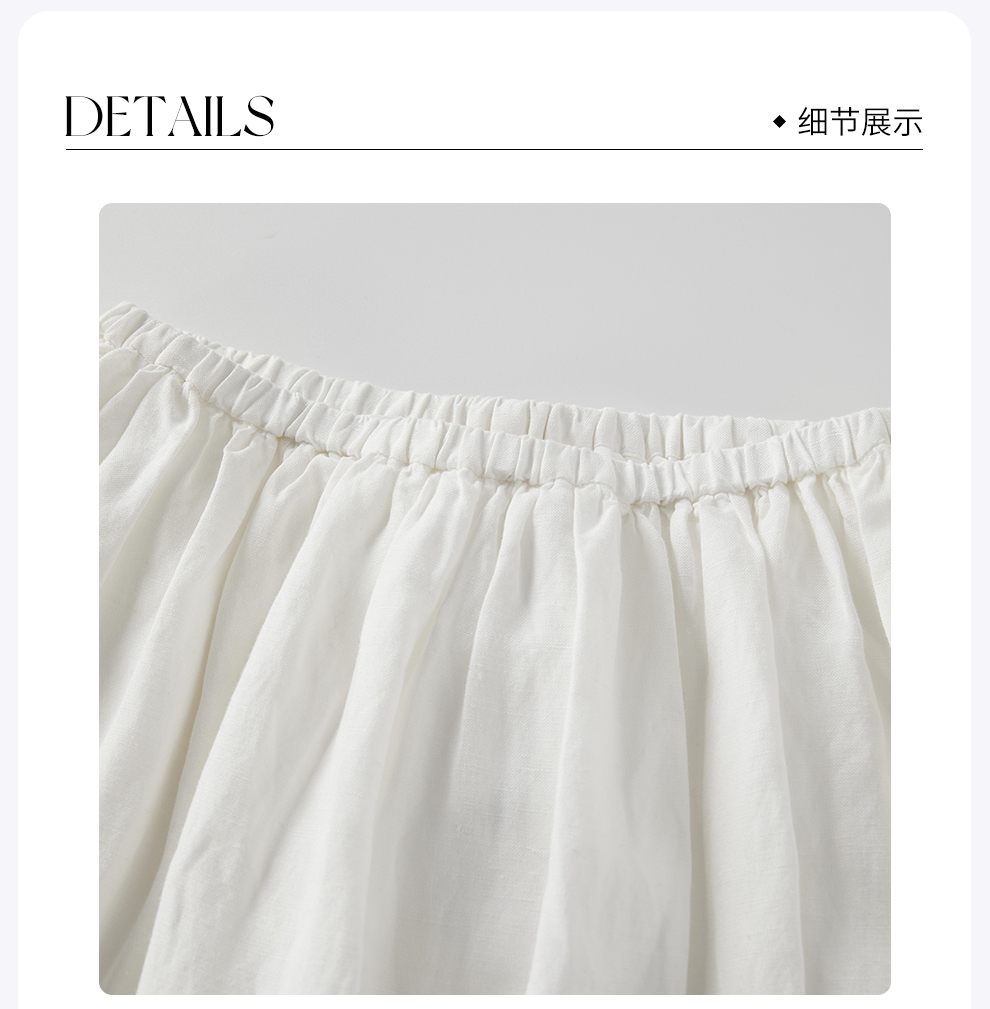 ROMI STUDIO -B “精致呼吸” 棉麻好打理短款A字复古白半裙 Q3474