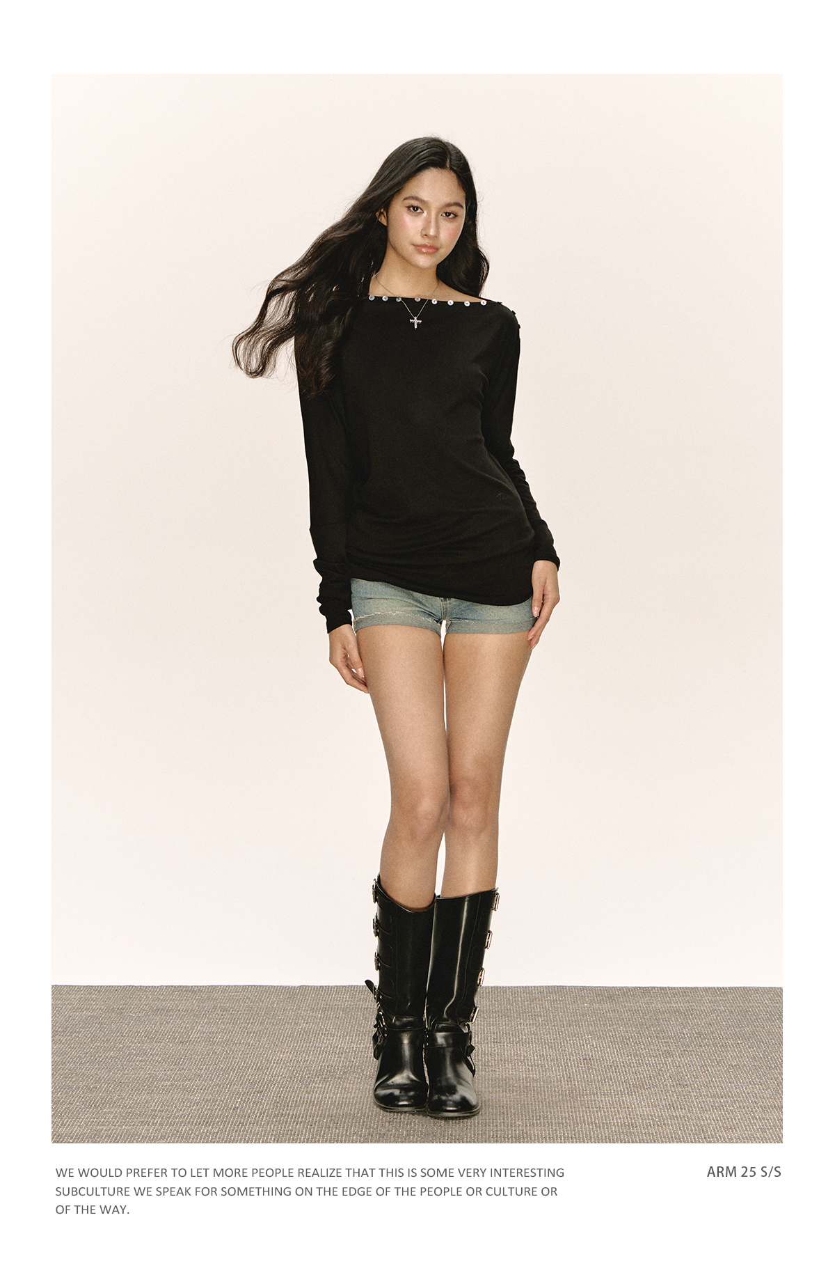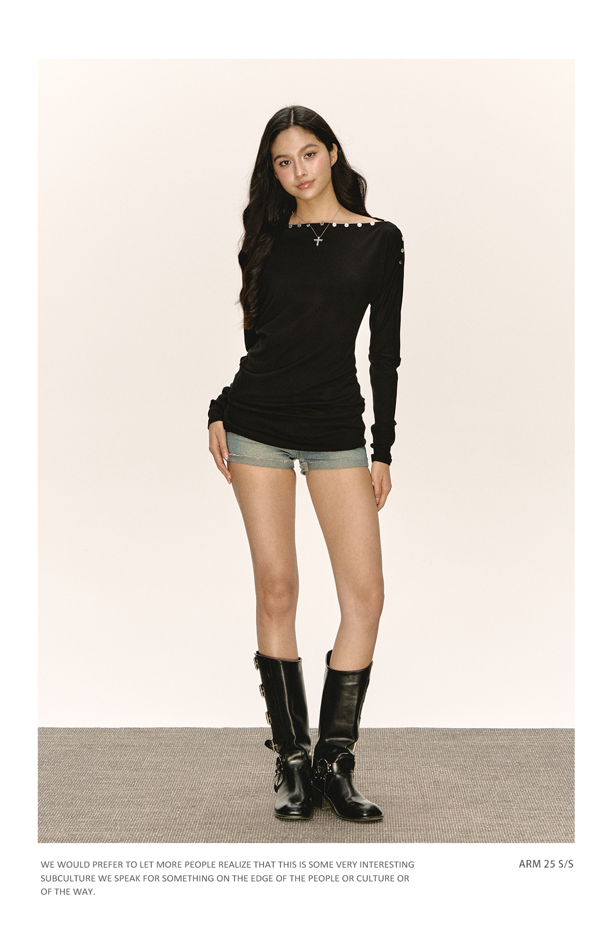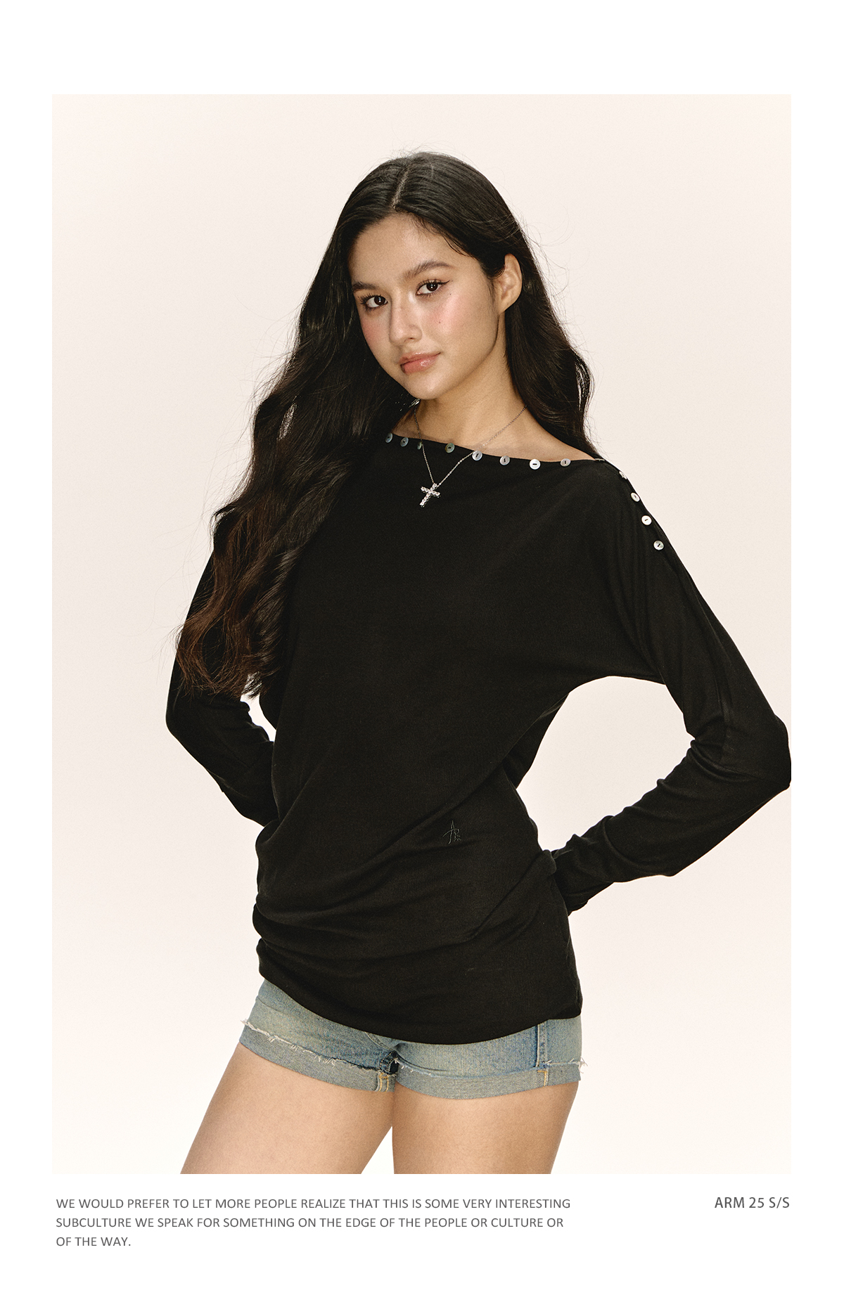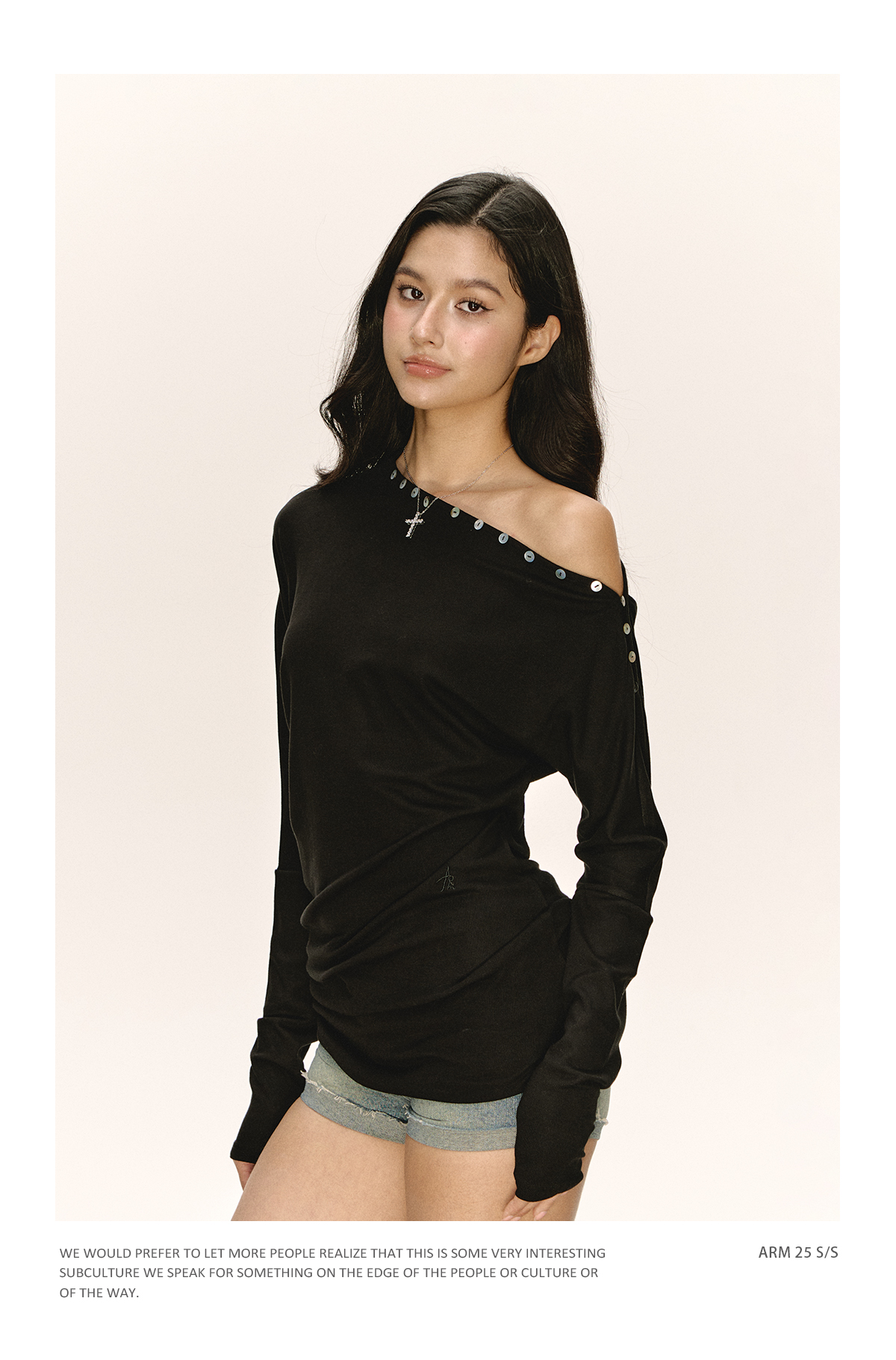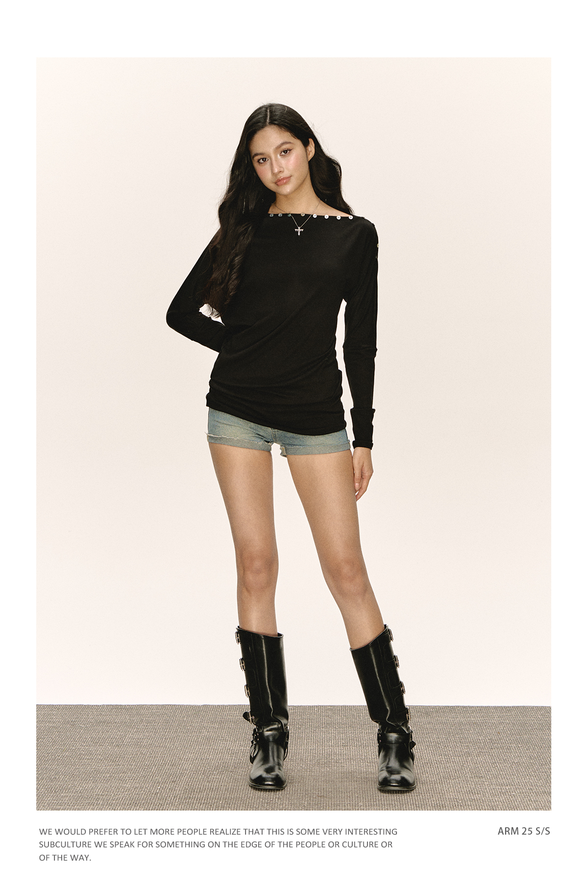 Ariseism 美式复古设计感黑色一字肩长袖t恤女秋季新款修身上衣