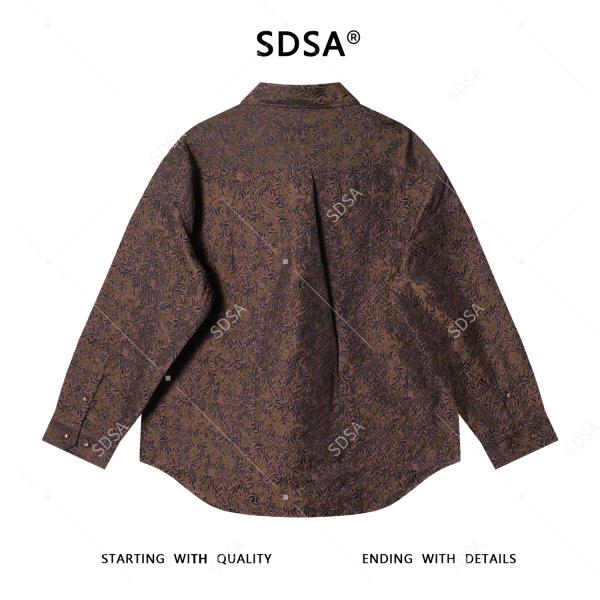 SDSA男士秋冬新款痞帅男装潮牌植物花卉印花纽扣翻领长袖衬衫百搭