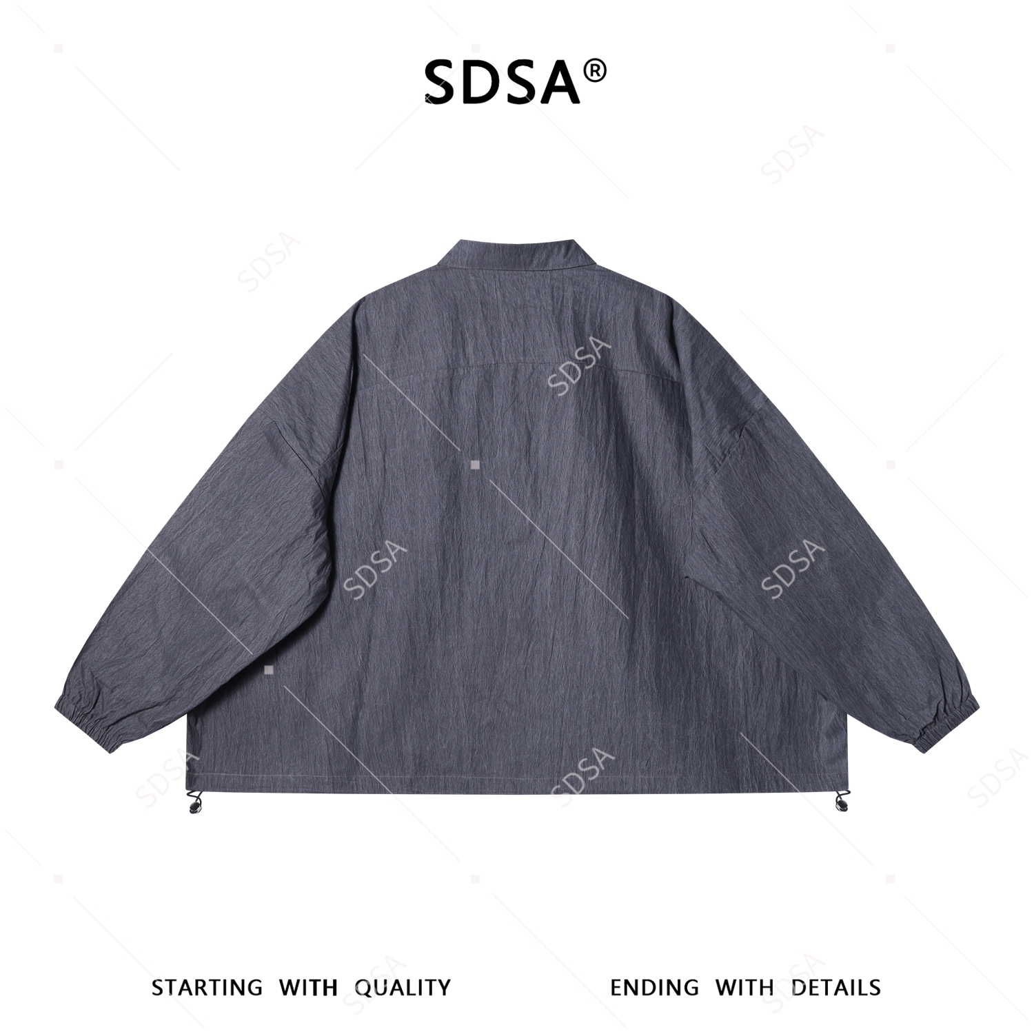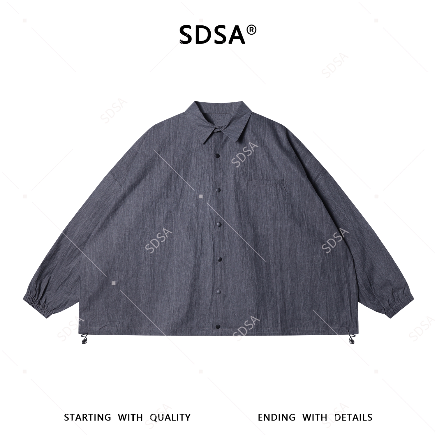 SDSA男装2026新款高贵轻奢韩版纯色按扣长袖衬衫下摆松紧设计百搭