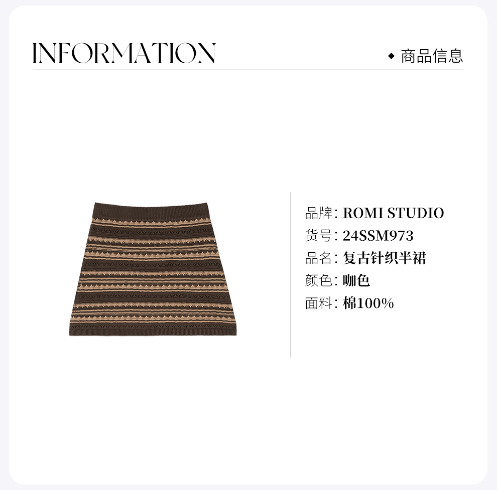 ROMI STUDIO“复古美学”5s100%棉带子纱令士拨花针织半裙 24SSM973